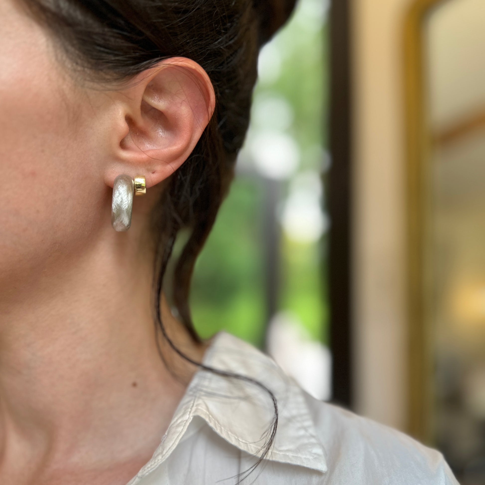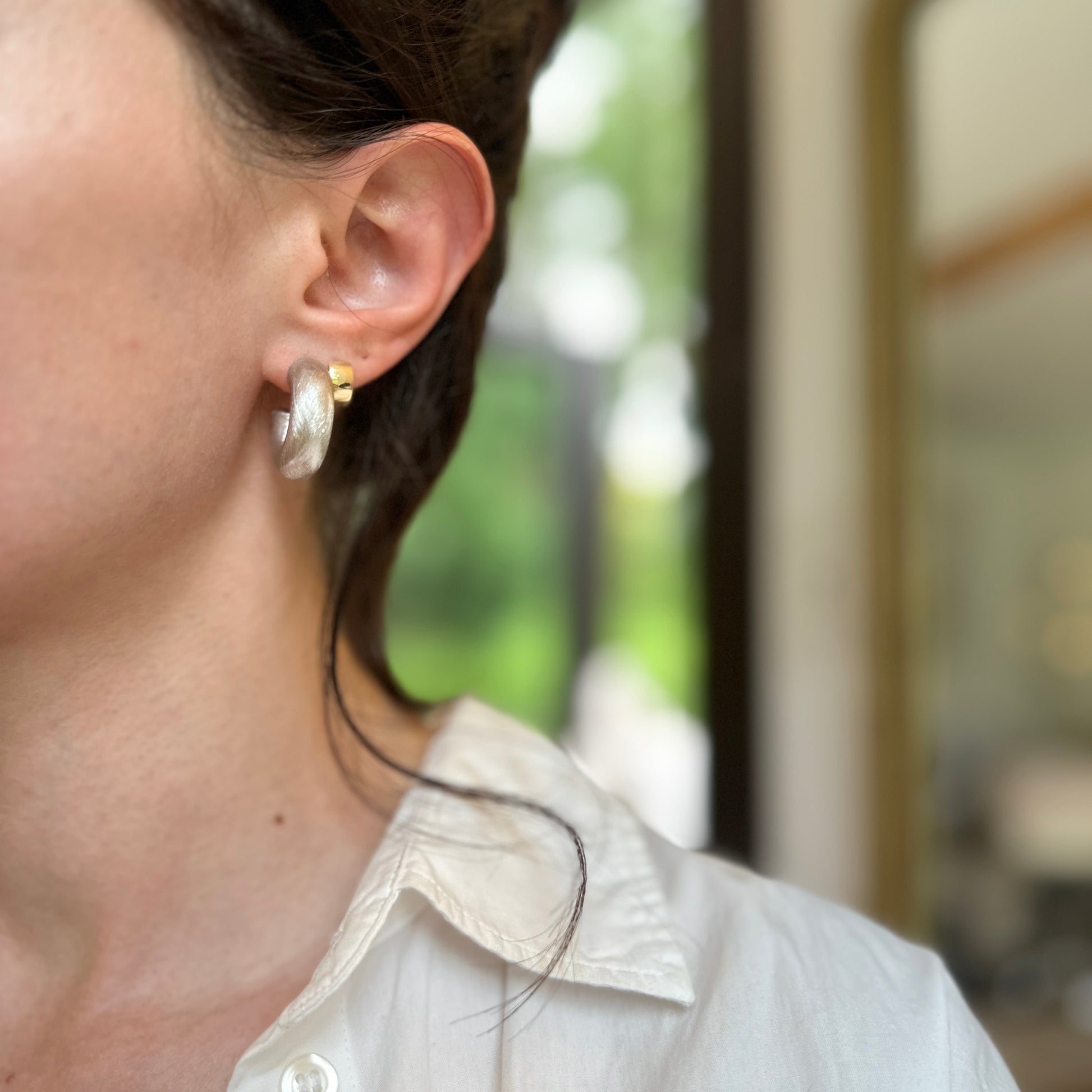 Sterling Silver Brushed Finish C-Hoop Earrings 25mm