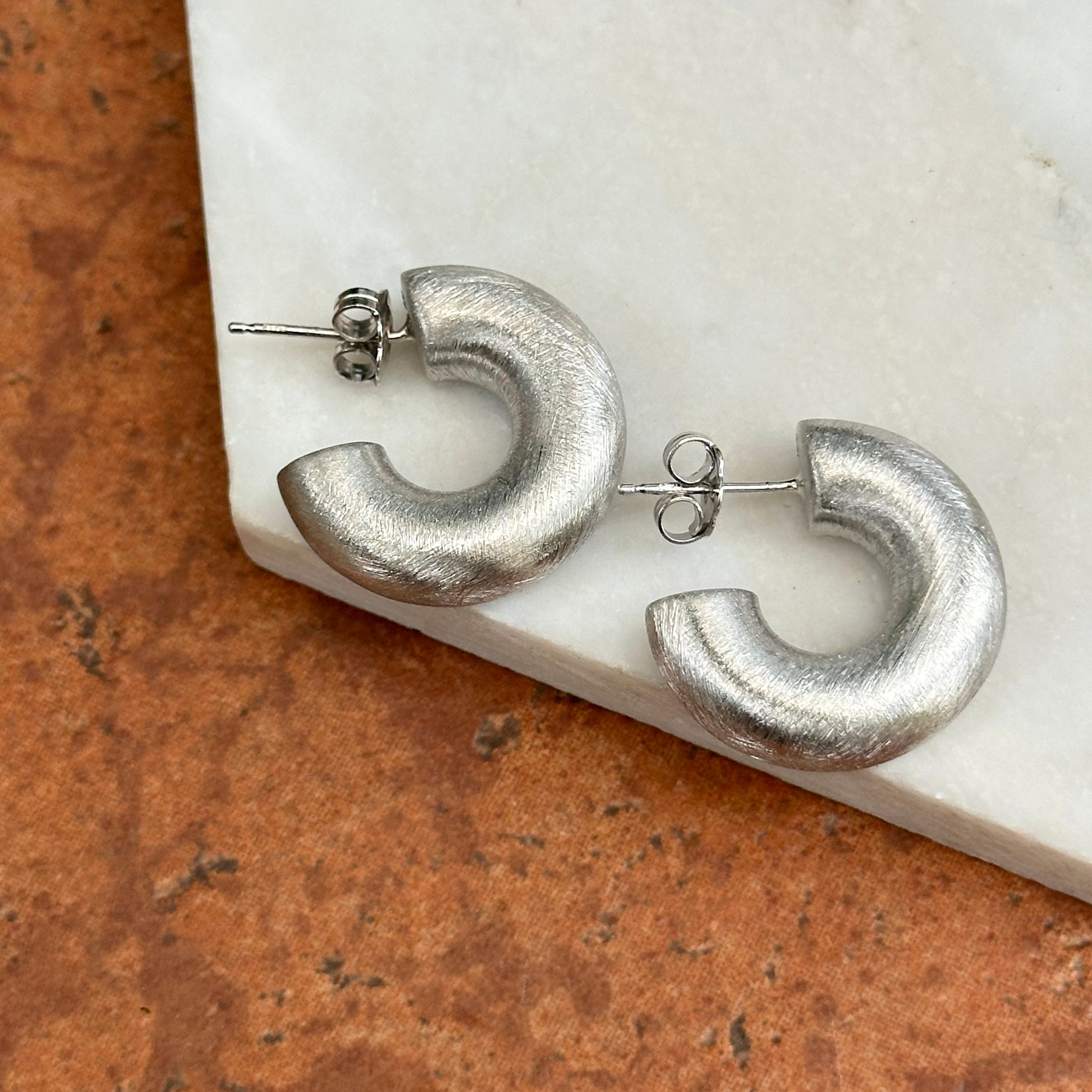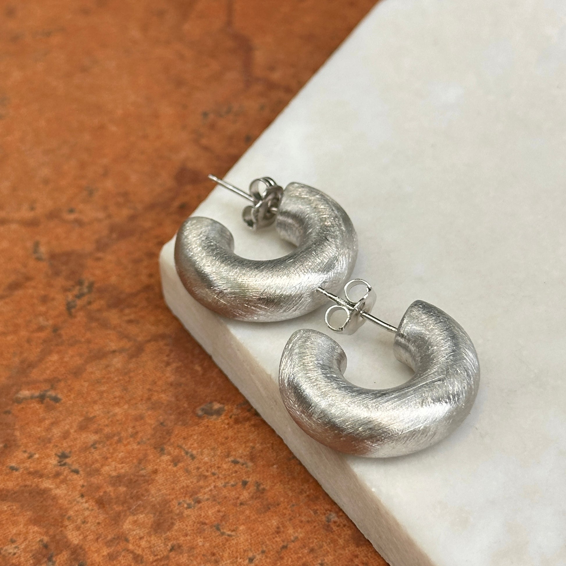 Sterling Silver Brushed, Satin-Finish, Post, Huggie Hoop Earrings