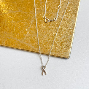 Sterling Silver Cancer Awareness Ribbon Pendant Chain Necklace