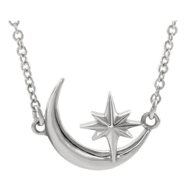 Sterling Silver Crescent Moon + Star Pendant Chain Necklace