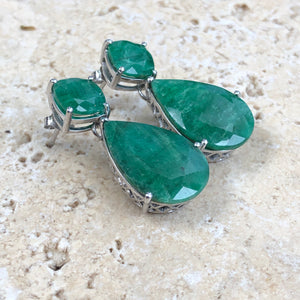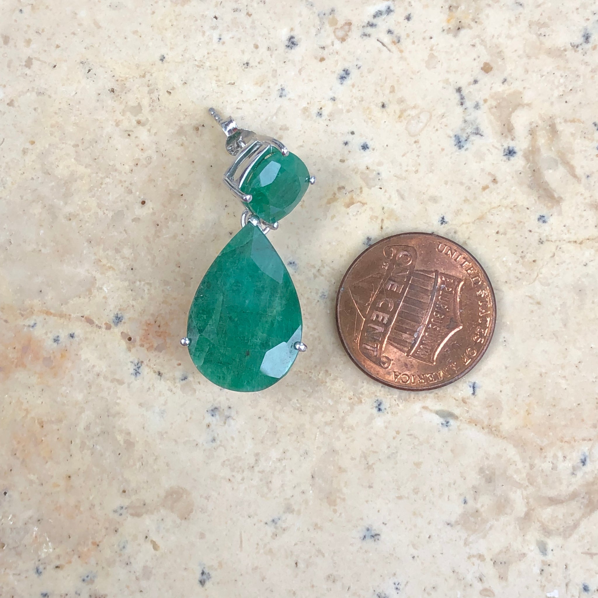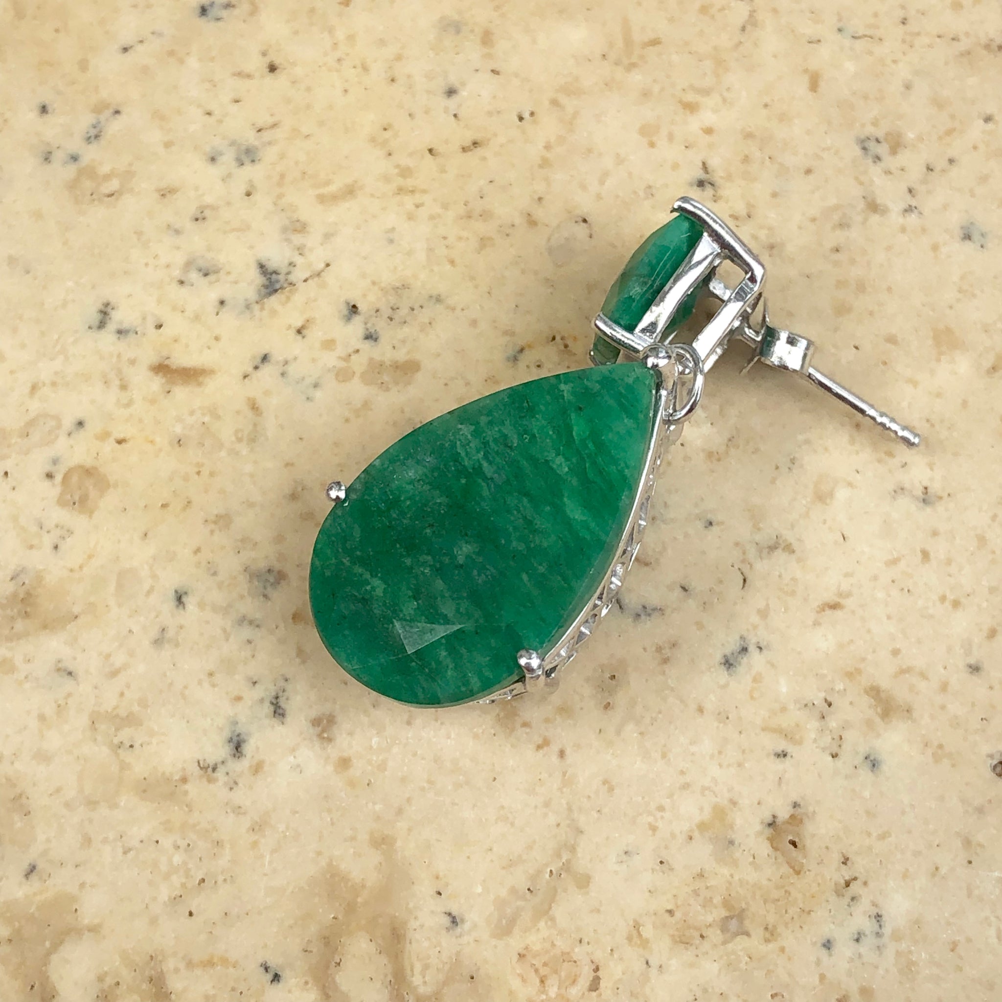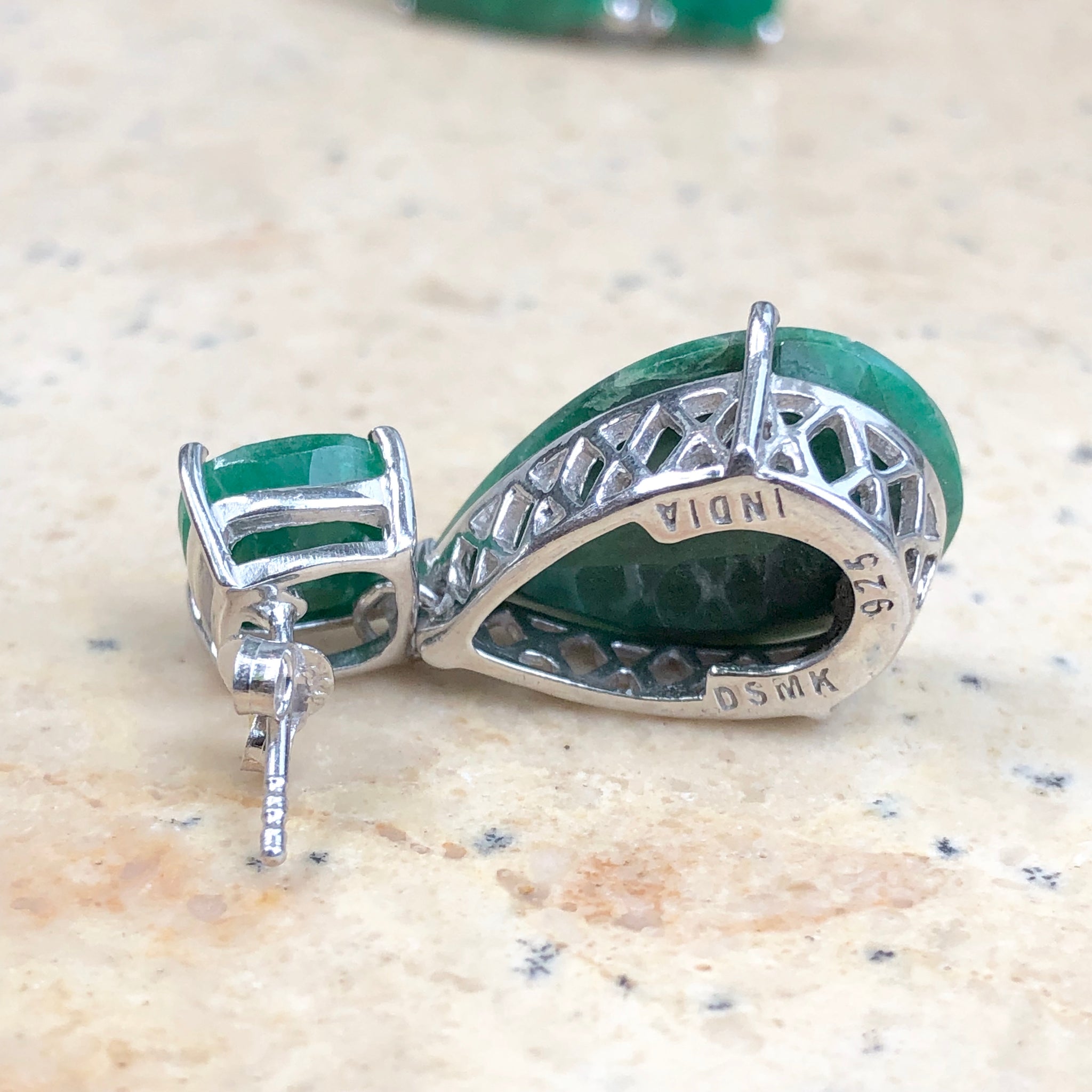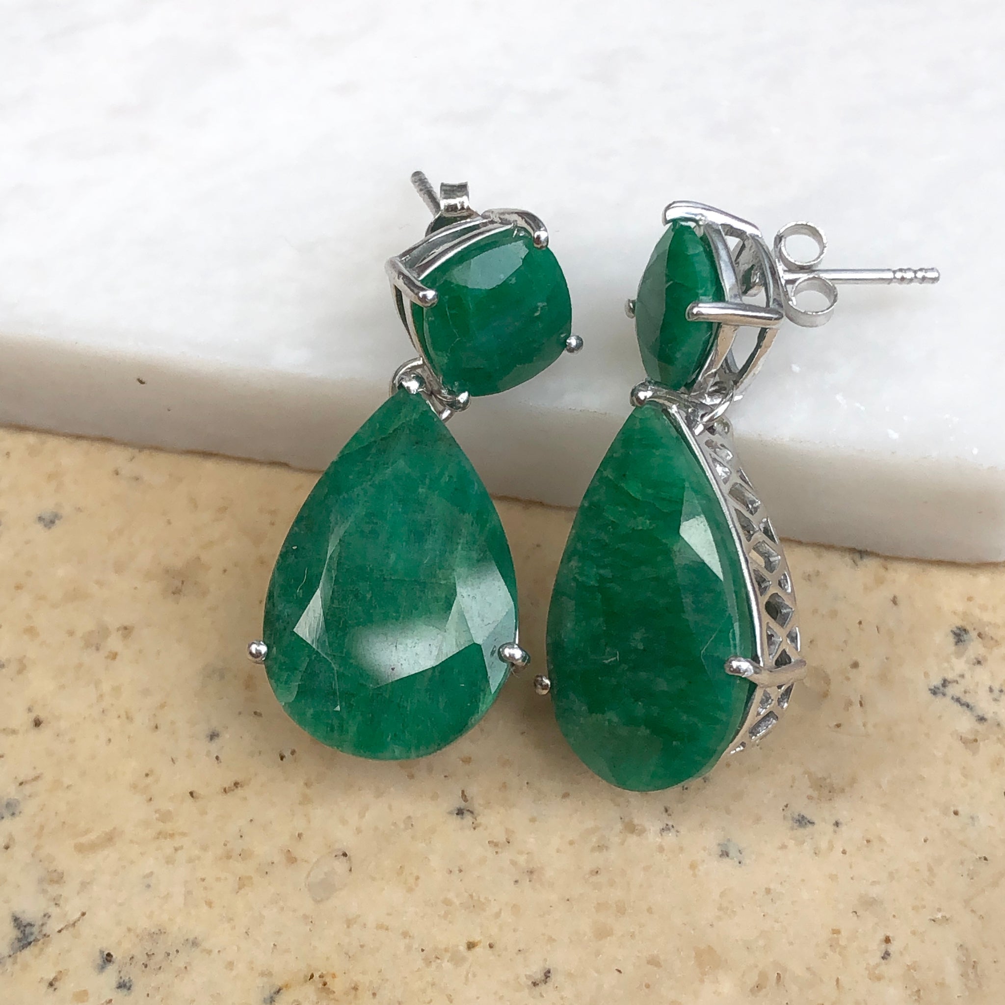 Sterling Silver Cushion Cut Teardrop Emerald Dangle Earrings