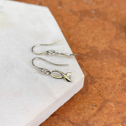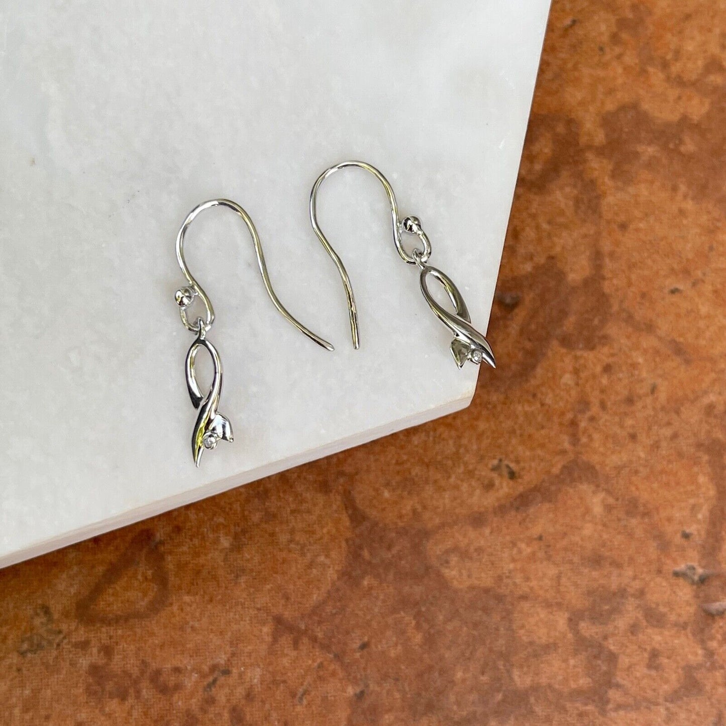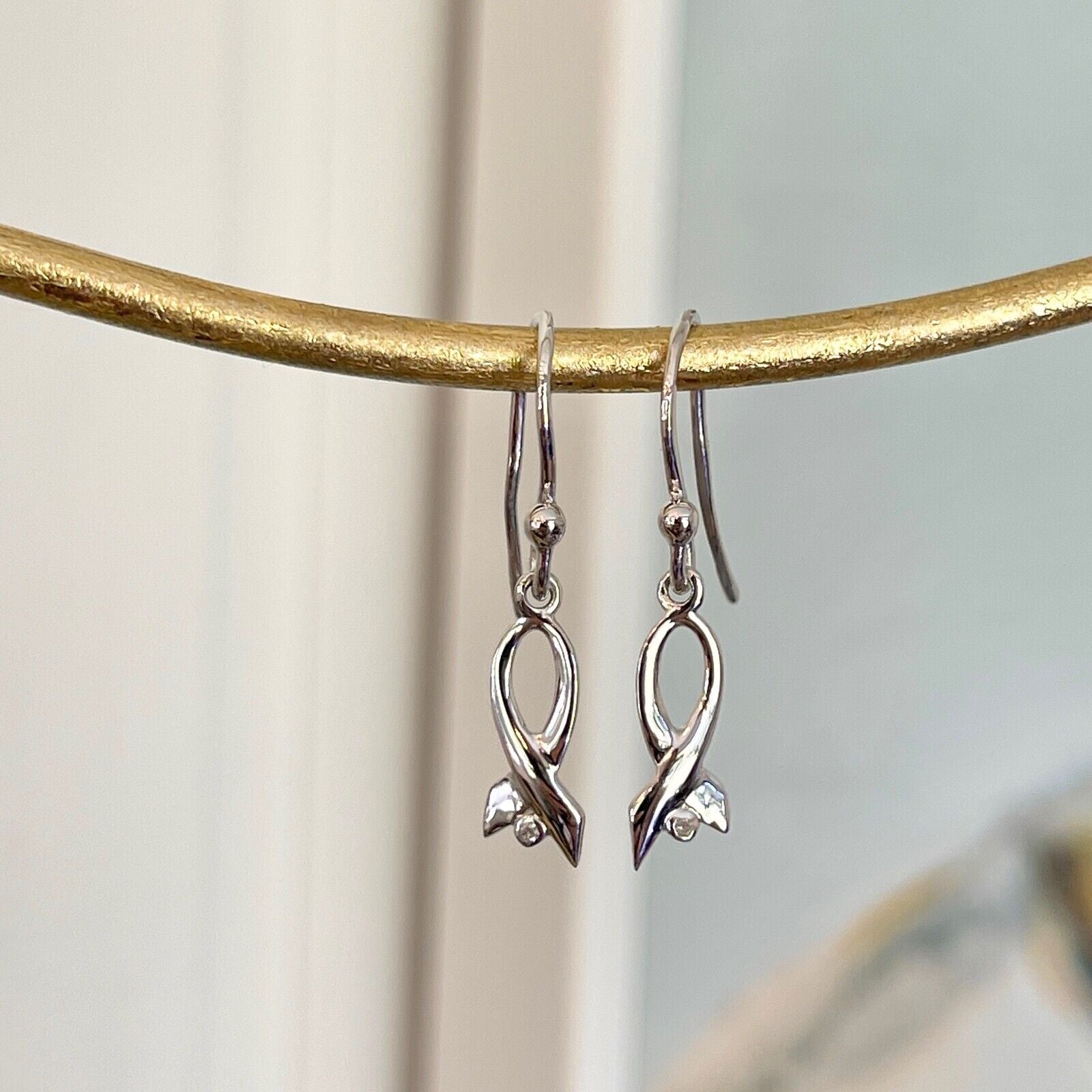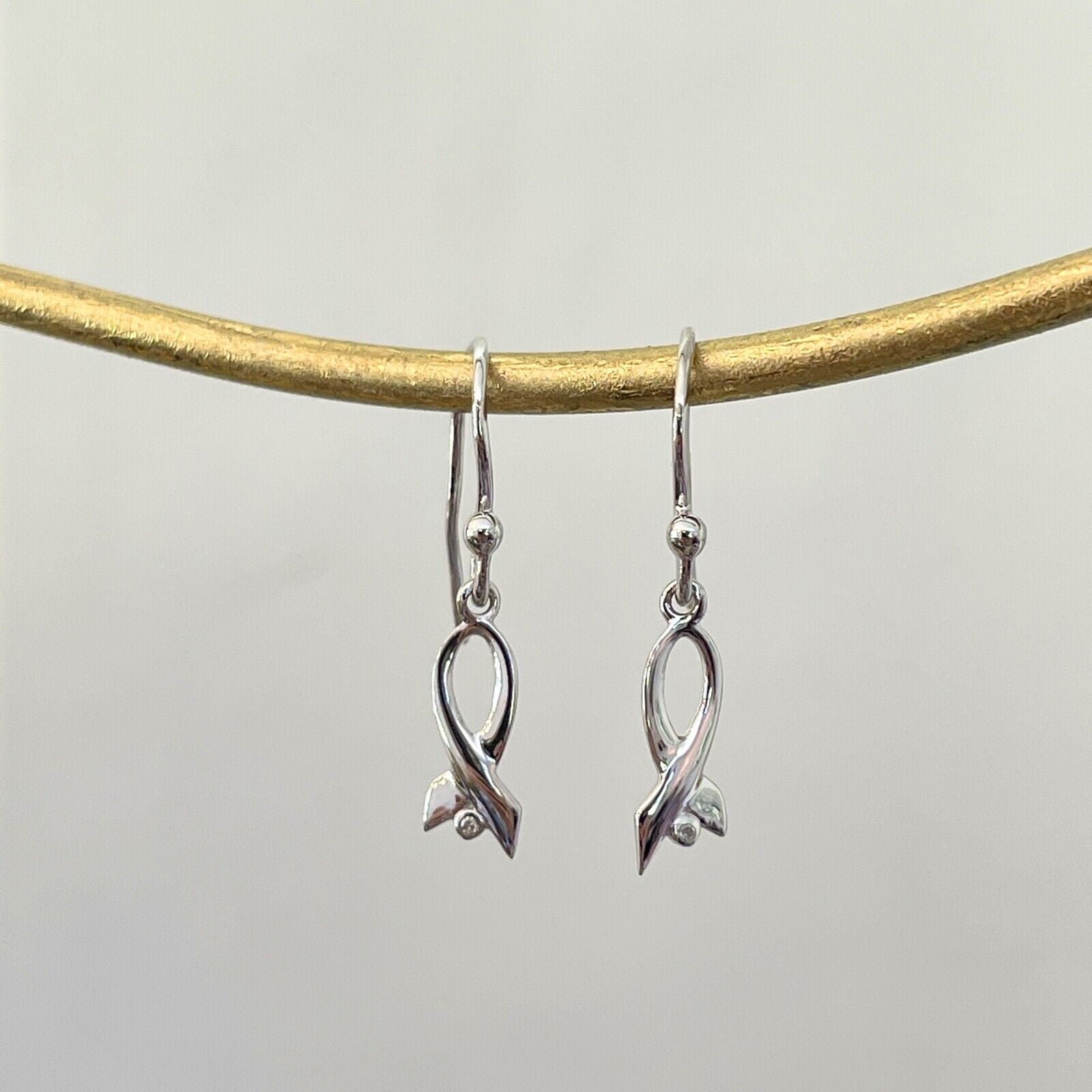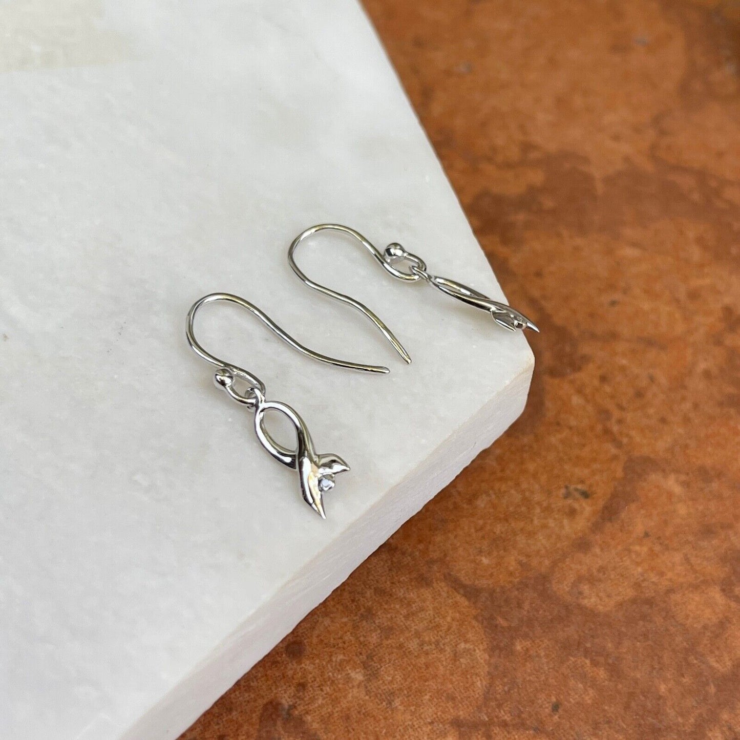 Sterling Silver Diamond Cancer Awareness Ribbon Dangle Earrings