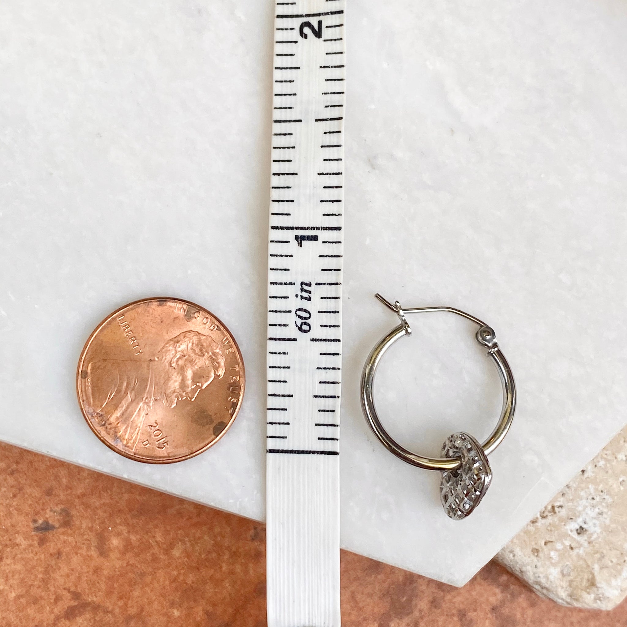 Sterling Silver Diamond-Cut Weave Heart Charm Hoop Earrings
