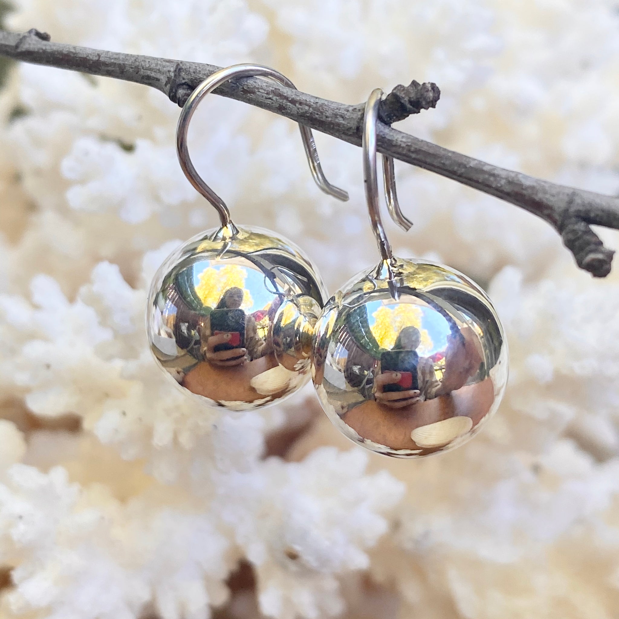 Polished sterling silver shiny ball ear wire drop earrings. Good size polished, hollow balls you can wear with just about anything!