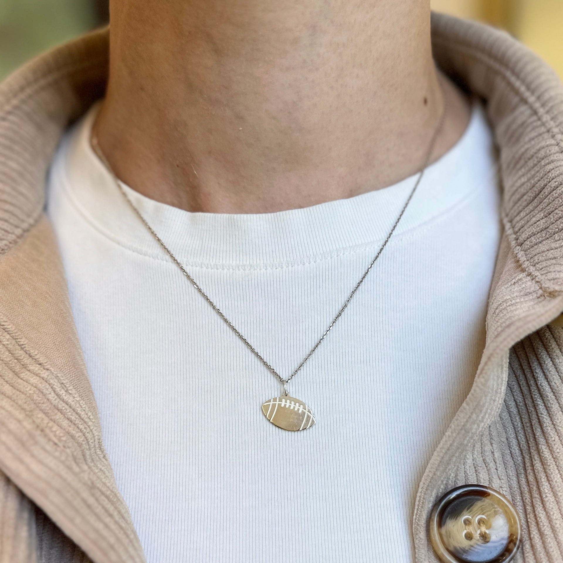 Sterling Silver Engravable Flat Football Medal Pendant Charm
