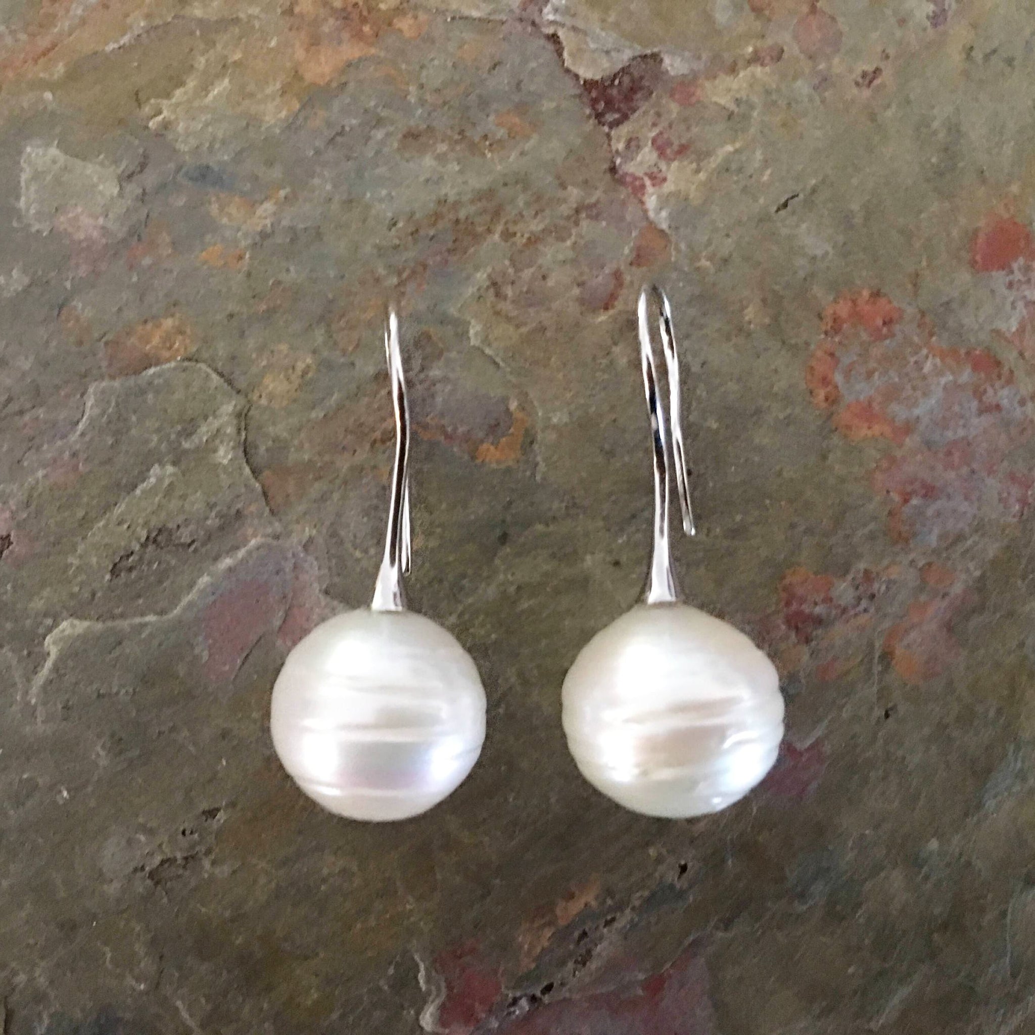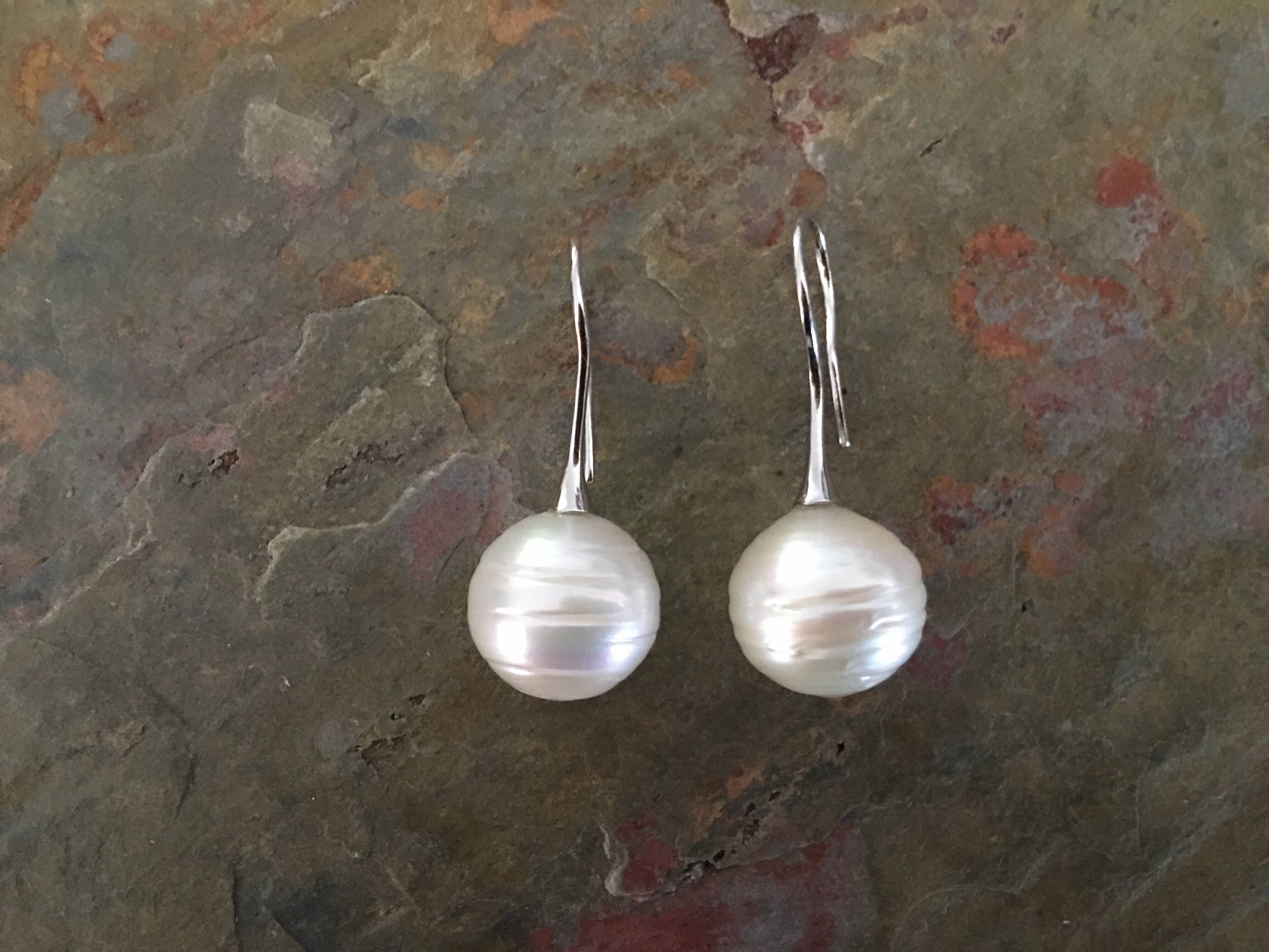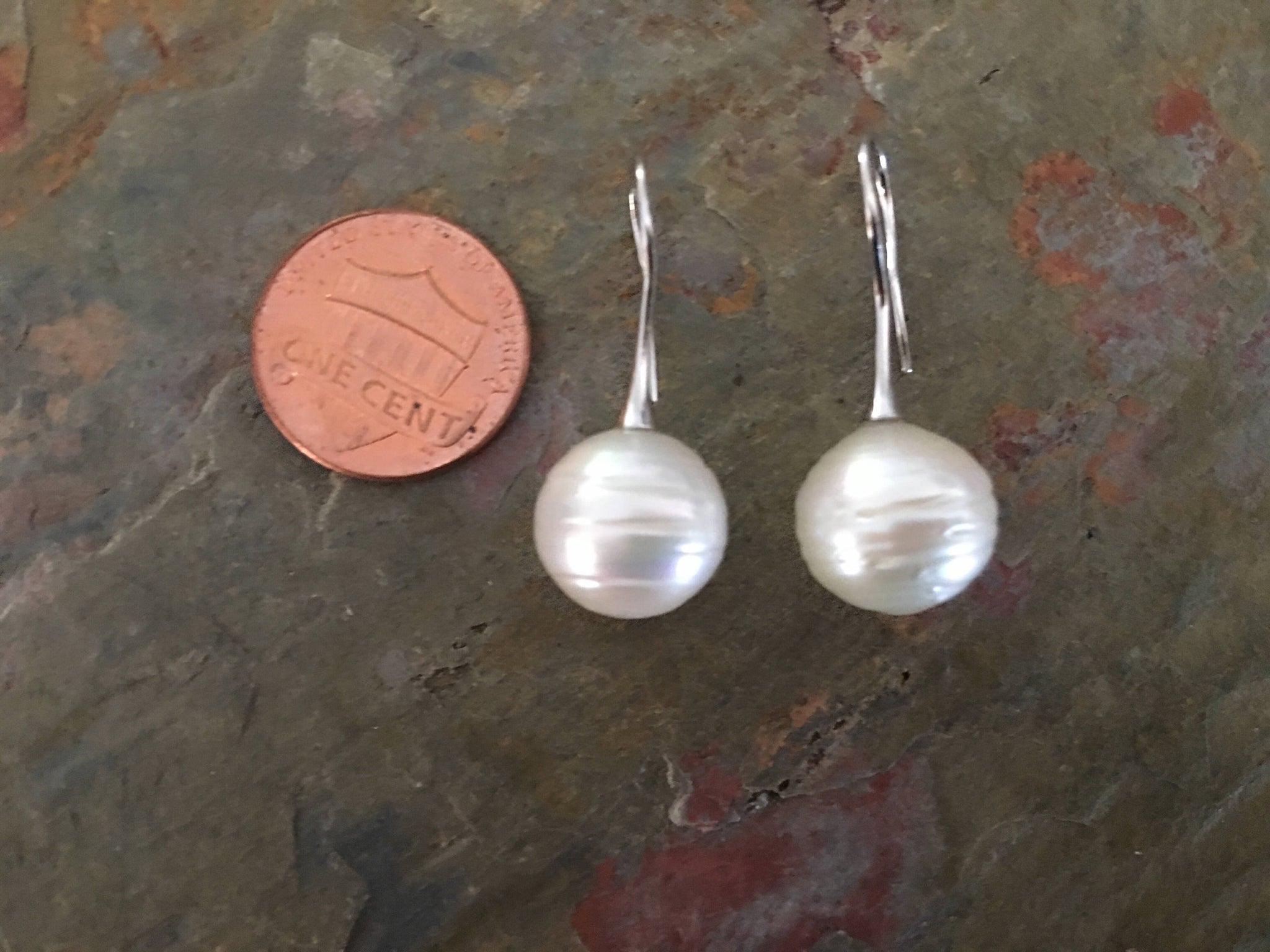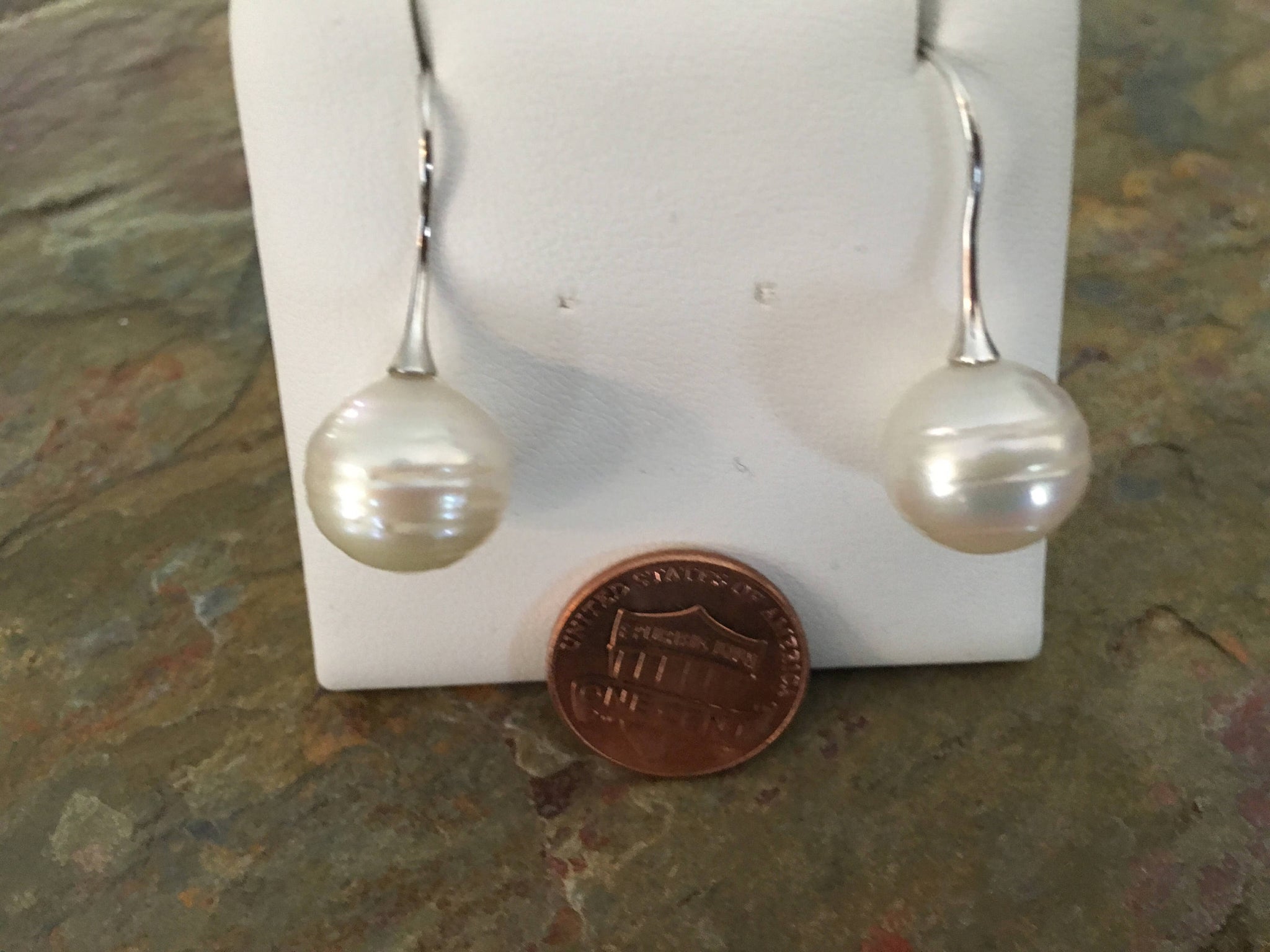 Sterling silver & genuine Paspaley cultured South Sea Pearl drop euro-wire earrings. Paspaley's "Fashion" quality + "Circle" shape.