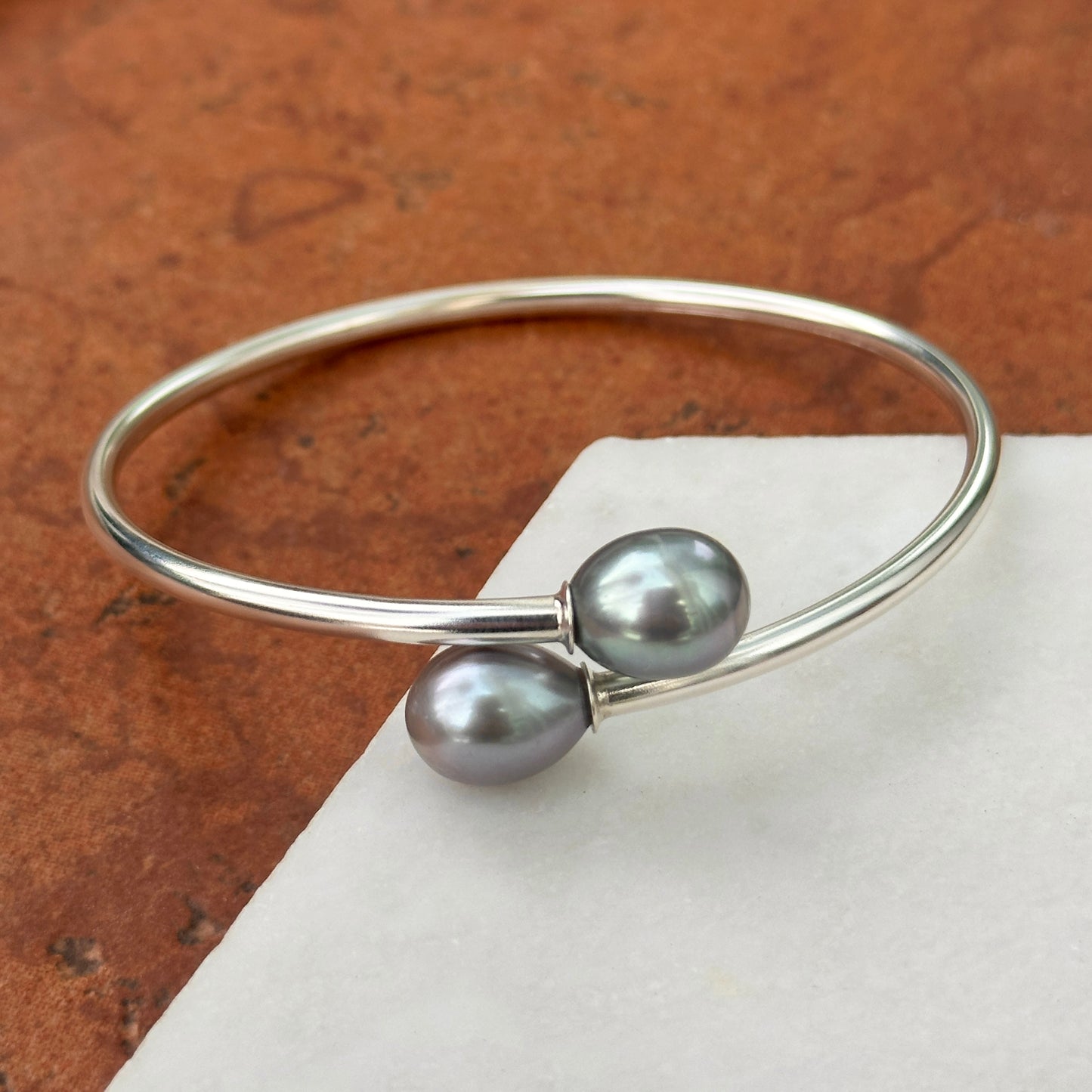 Sterling Silver Gray Freshwater Pearl Bypass Bangle Bracelet