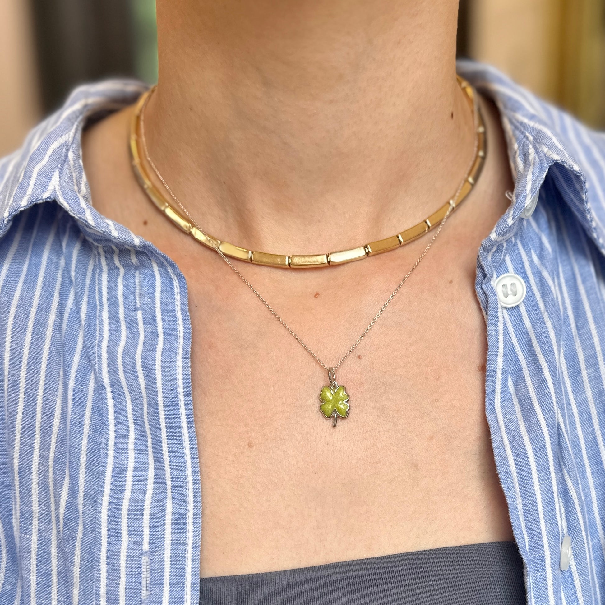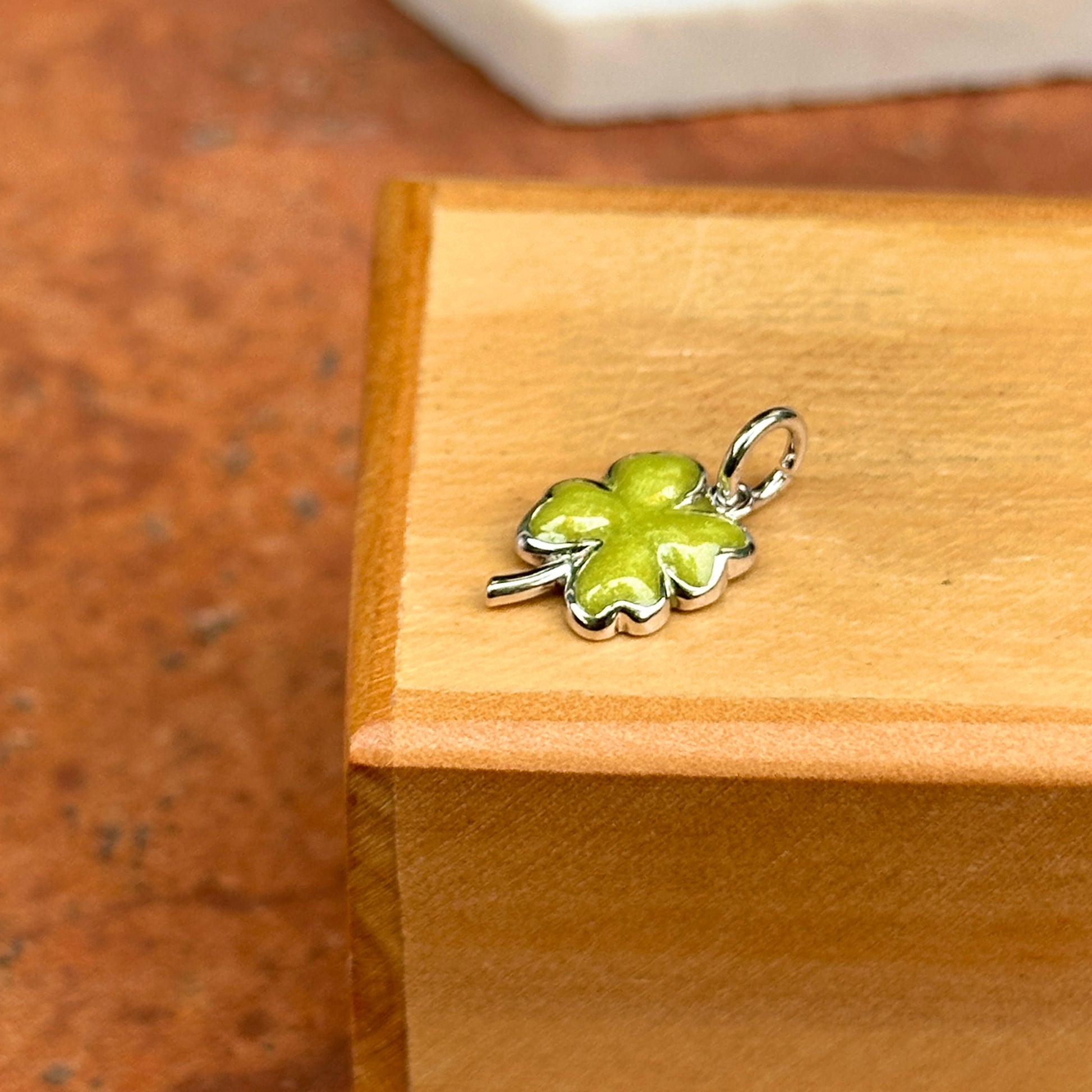Sterling Silver Green Enamel Irish 4-Leaf Clover Pendant Charm