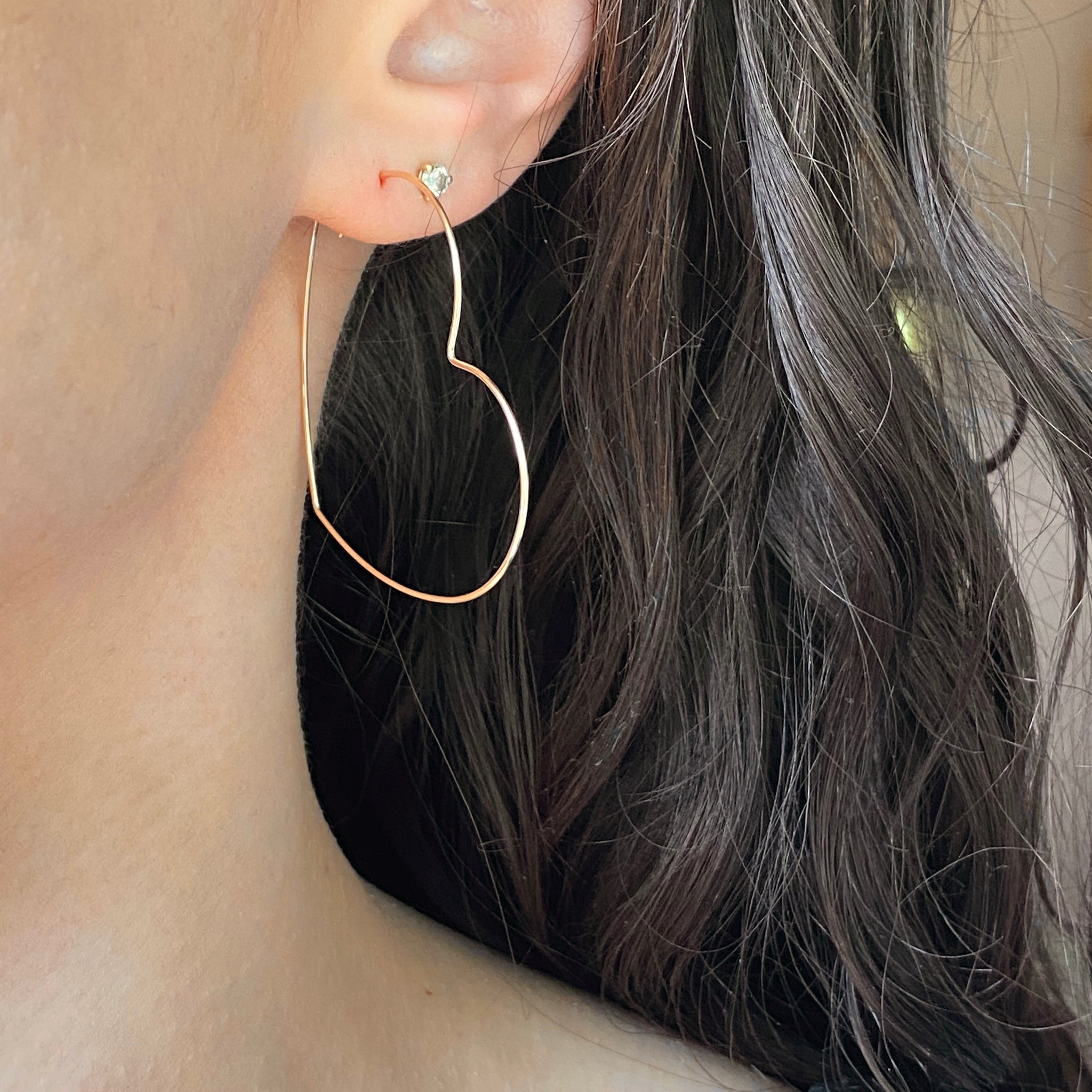 This heart-shaped 14/20 yellow gold-filled hoop earring features an eye-catching profile! Also available in a smaller hoop size- sold separately.