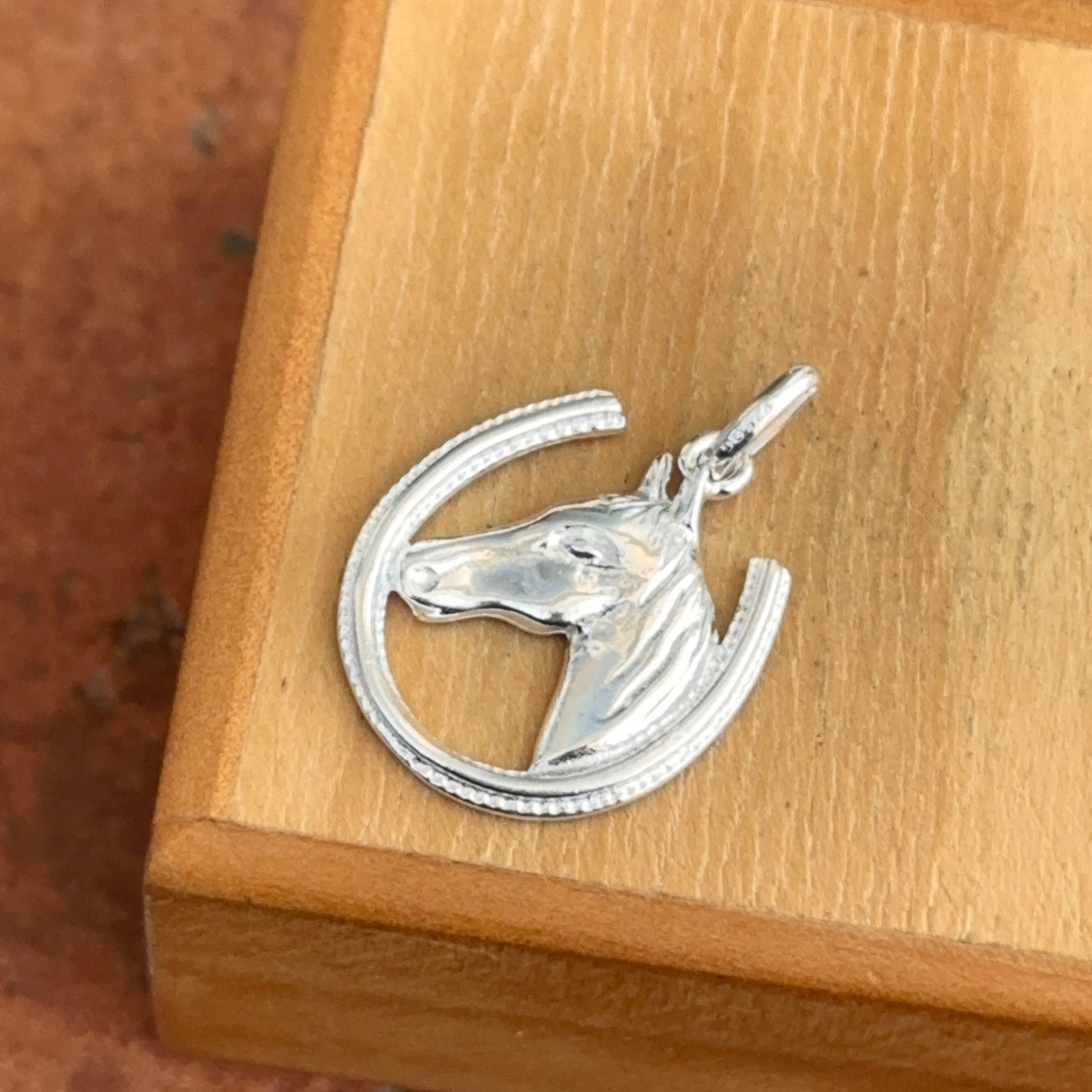 Sterling silver horseshoe and horse head pendant charm