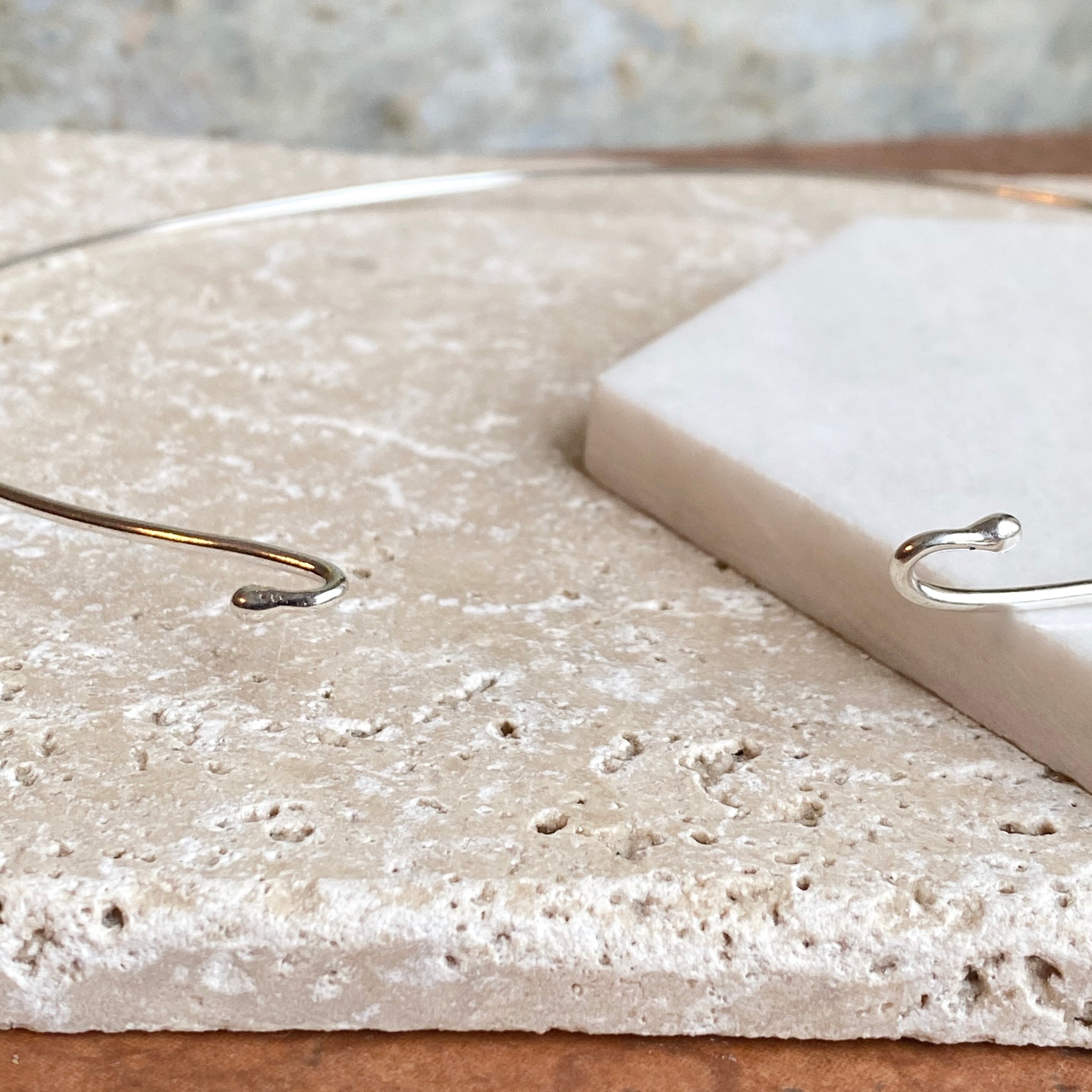 High polished sterling silver round neck wire necklace. The perfect staple, stiff wire collar necklace you can wear by itself or add on pendant to!