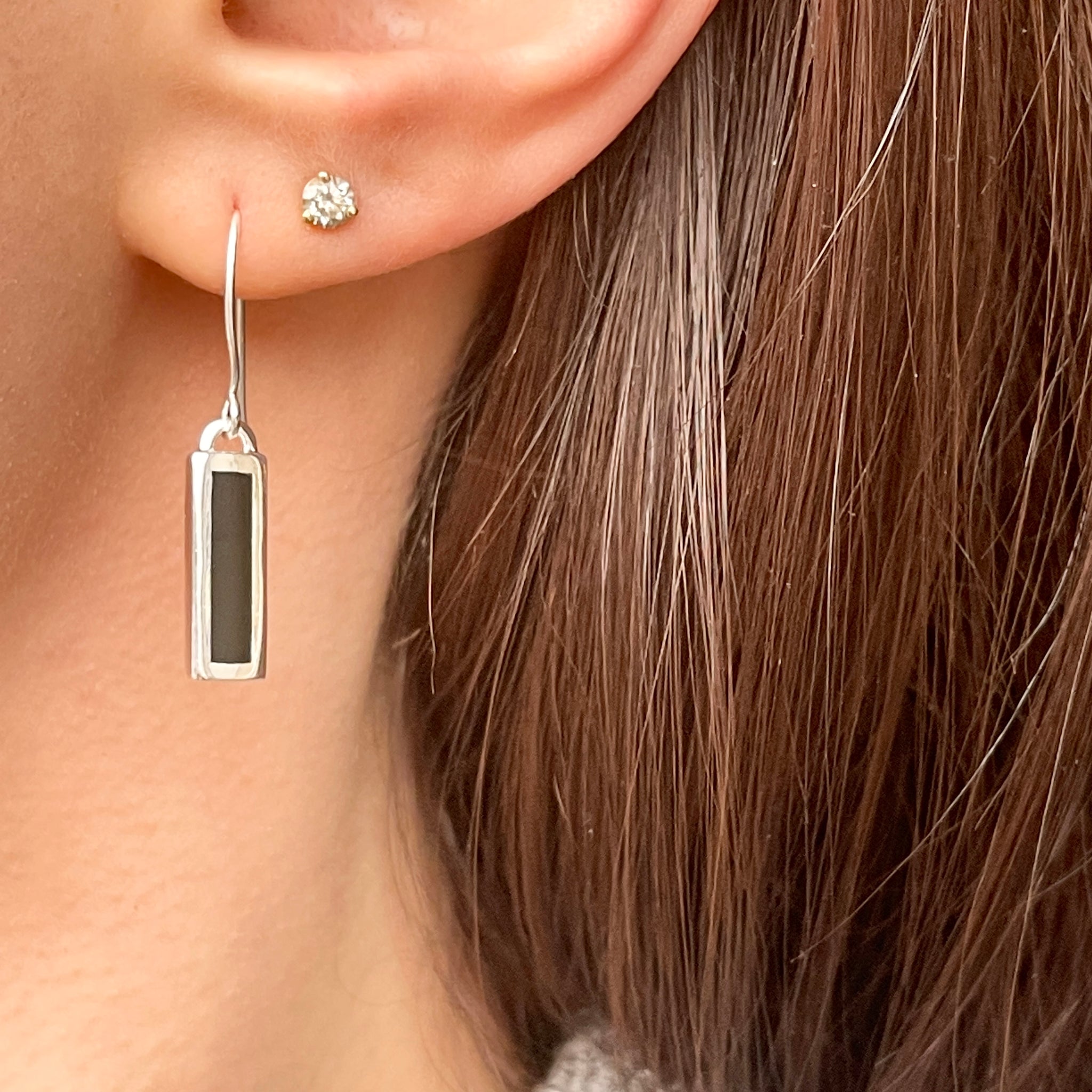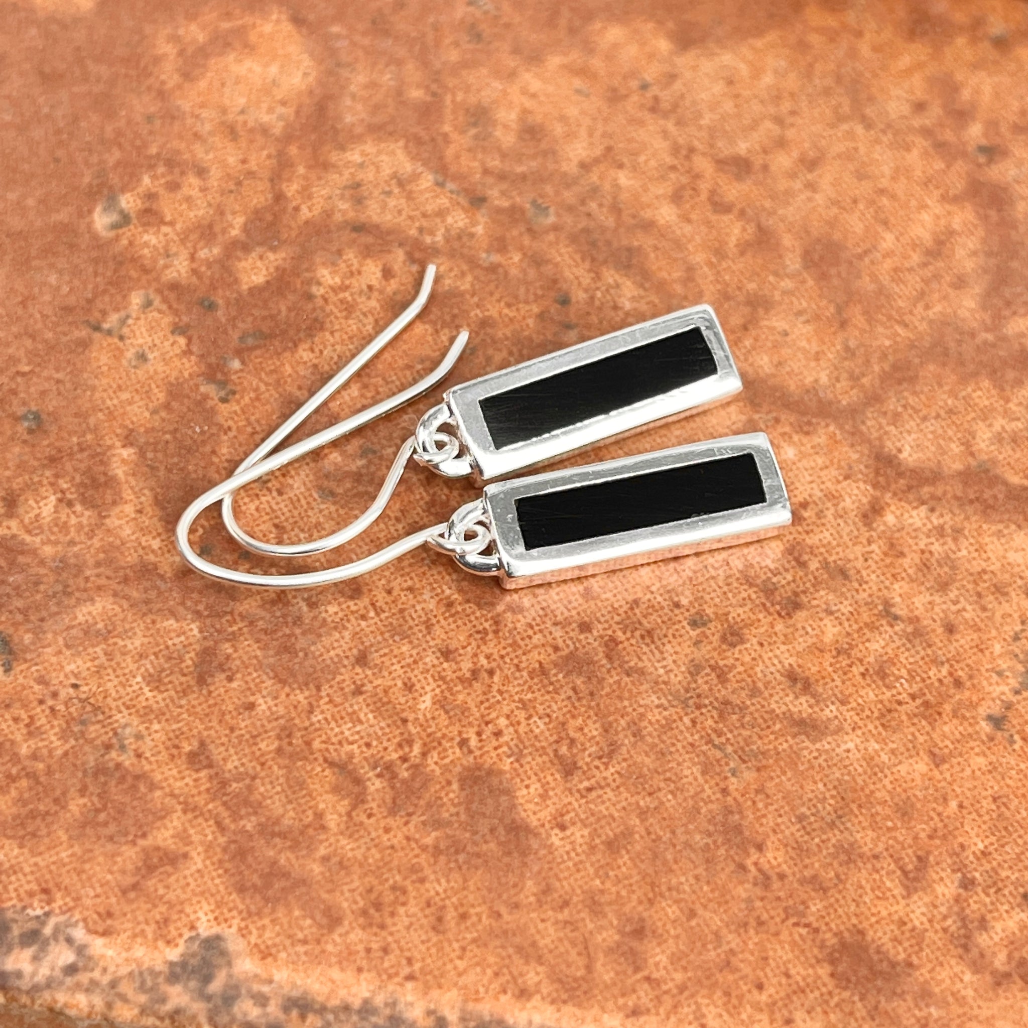 Sterling Silver Black Onyx Bar Dangle Earrings