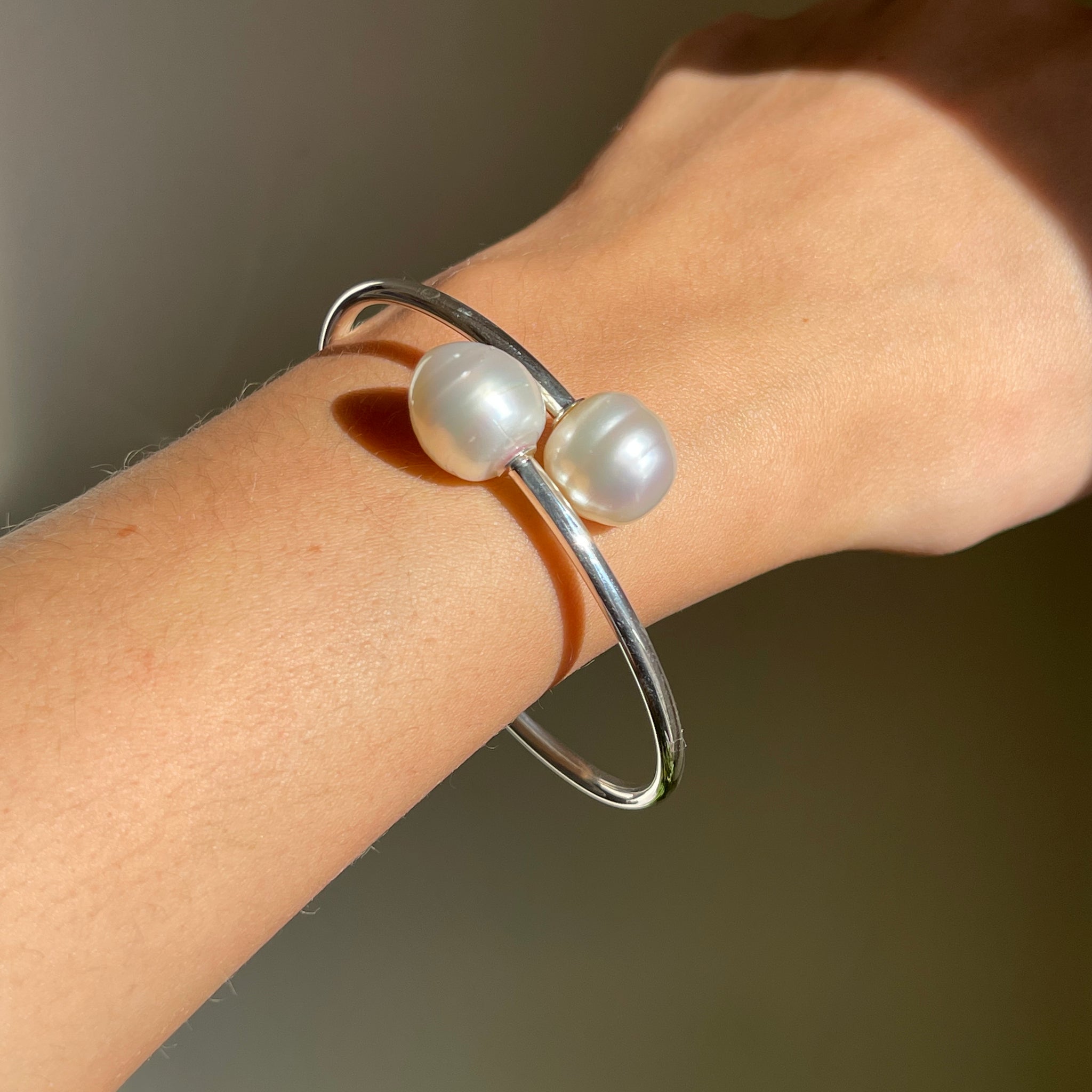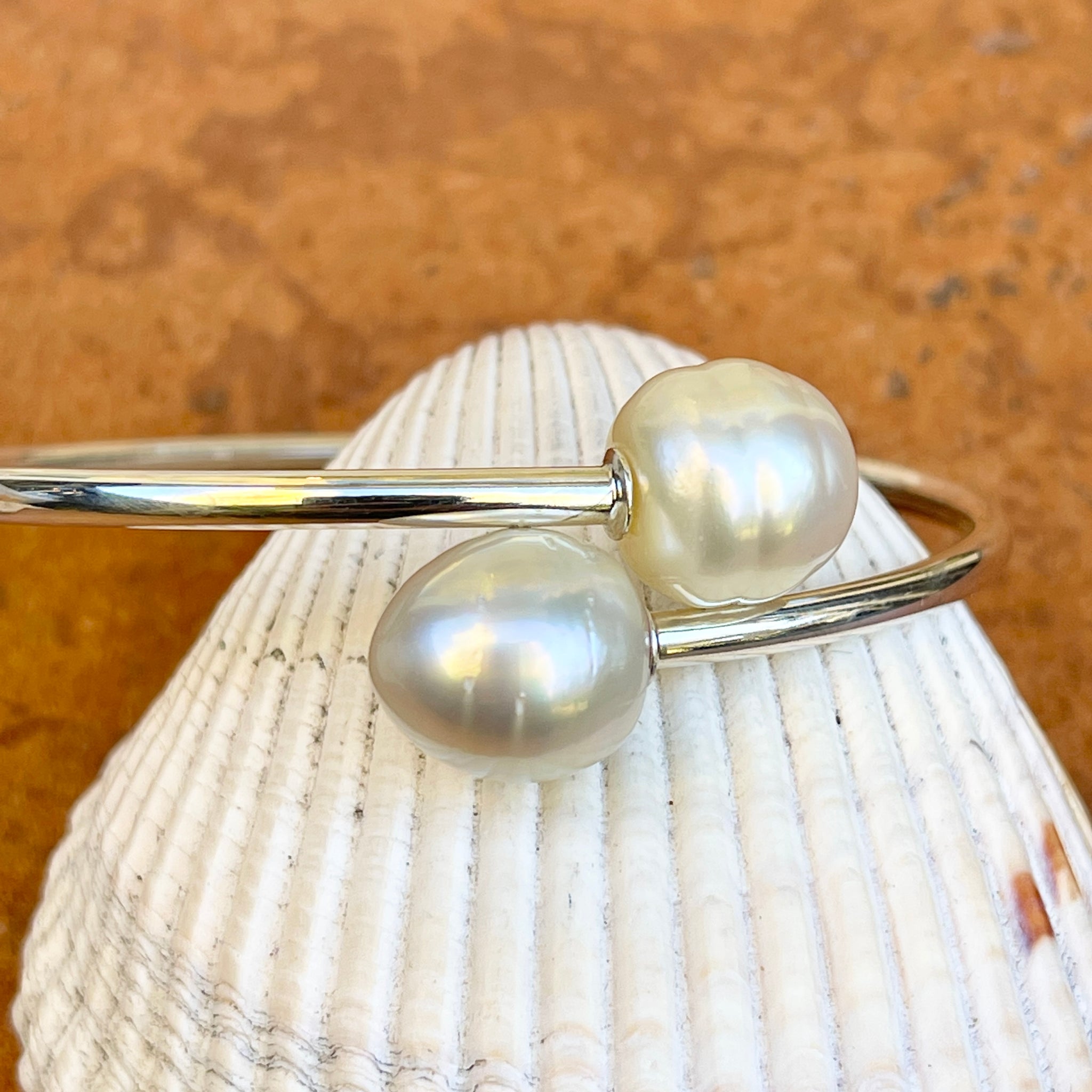 Sterling Silver + Paspaley South Sea Pearl Bypass Bangle Bracelet