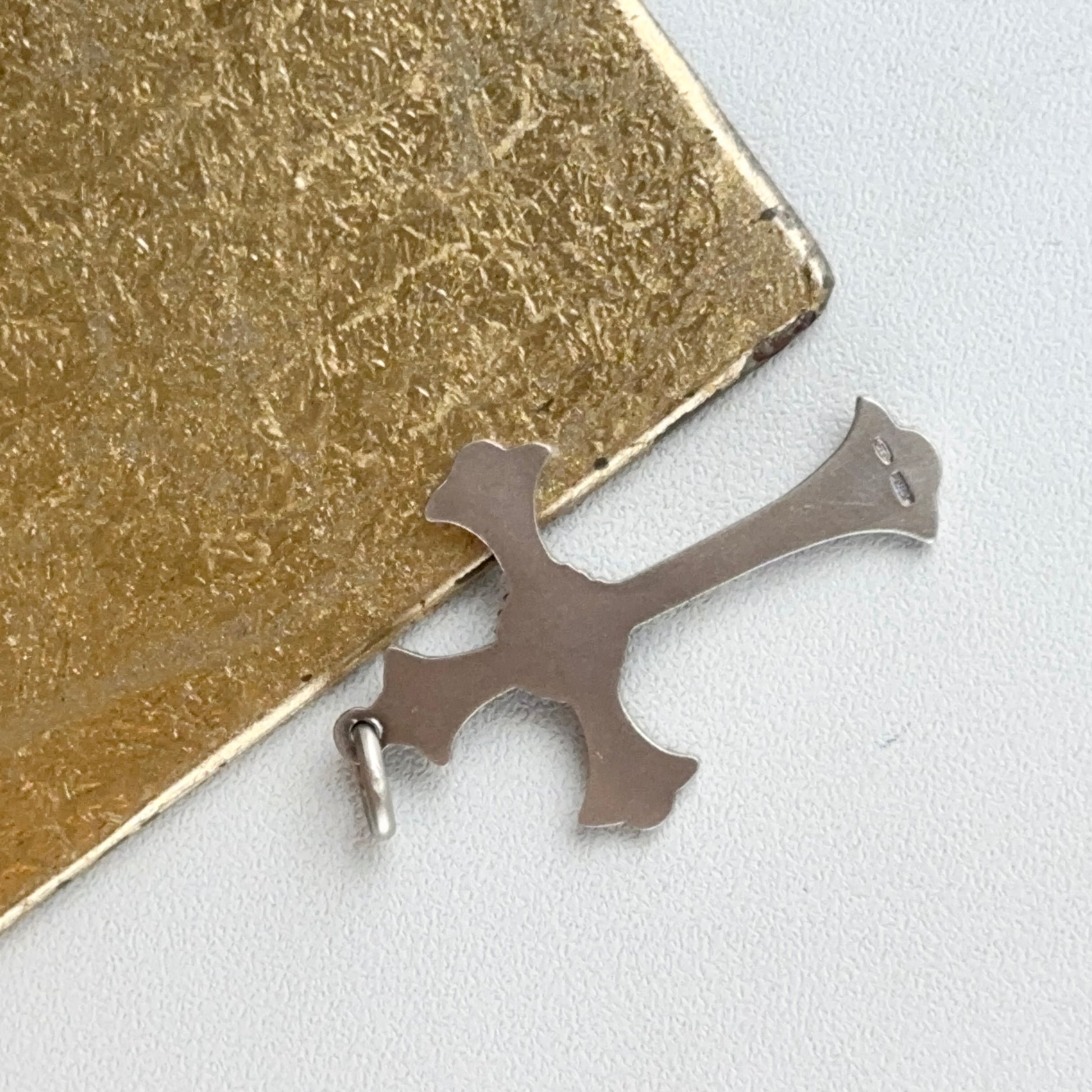 Sterling silver ornate detailed crucifix cross pendant in an antiqued finish.