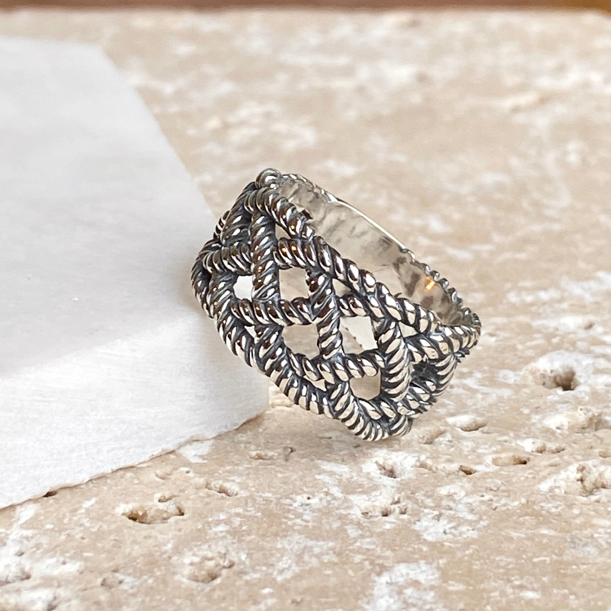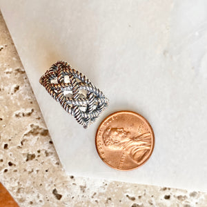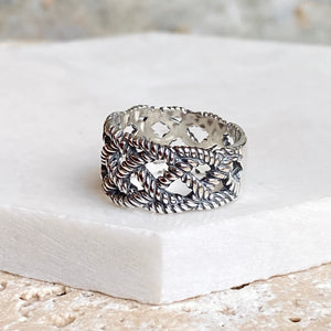 Sterling Silver Oxidized Woven Rope Cigar Band Ring