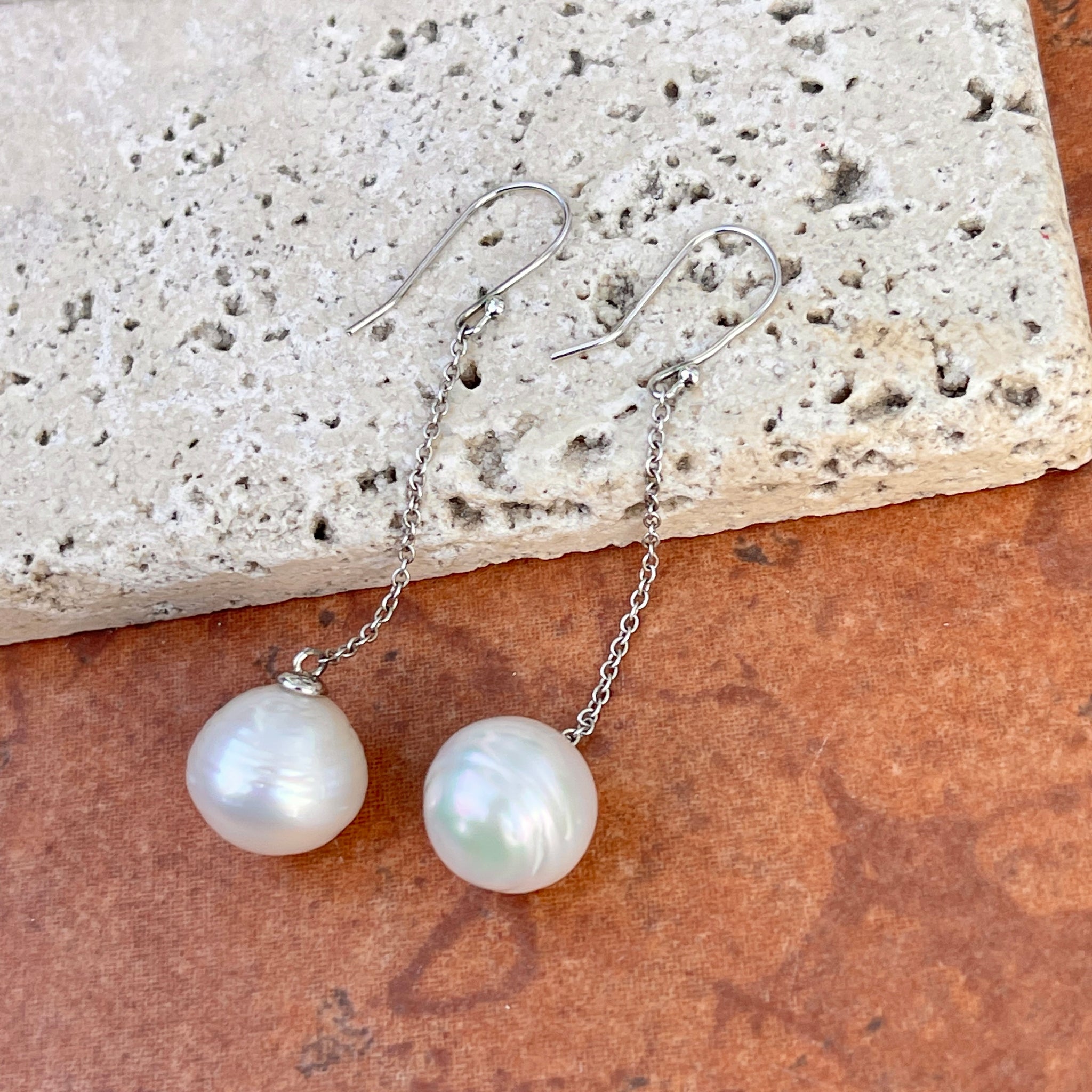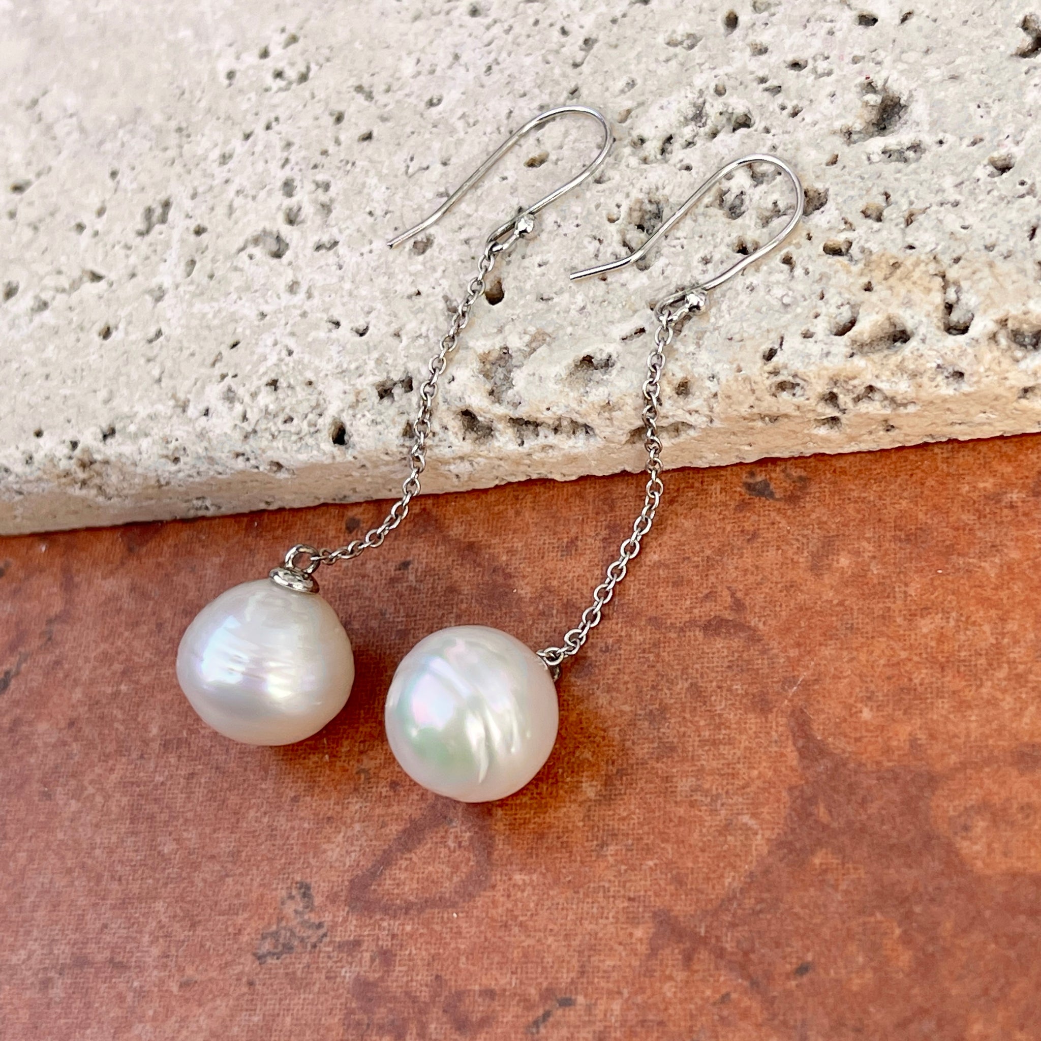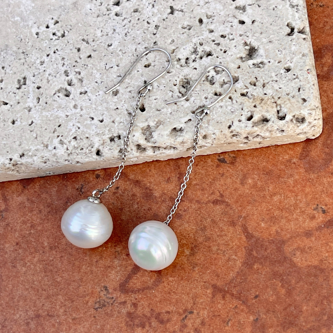 Sterling Silver 12mm Paspaley South Sea Pearl Chain Hook Earrings