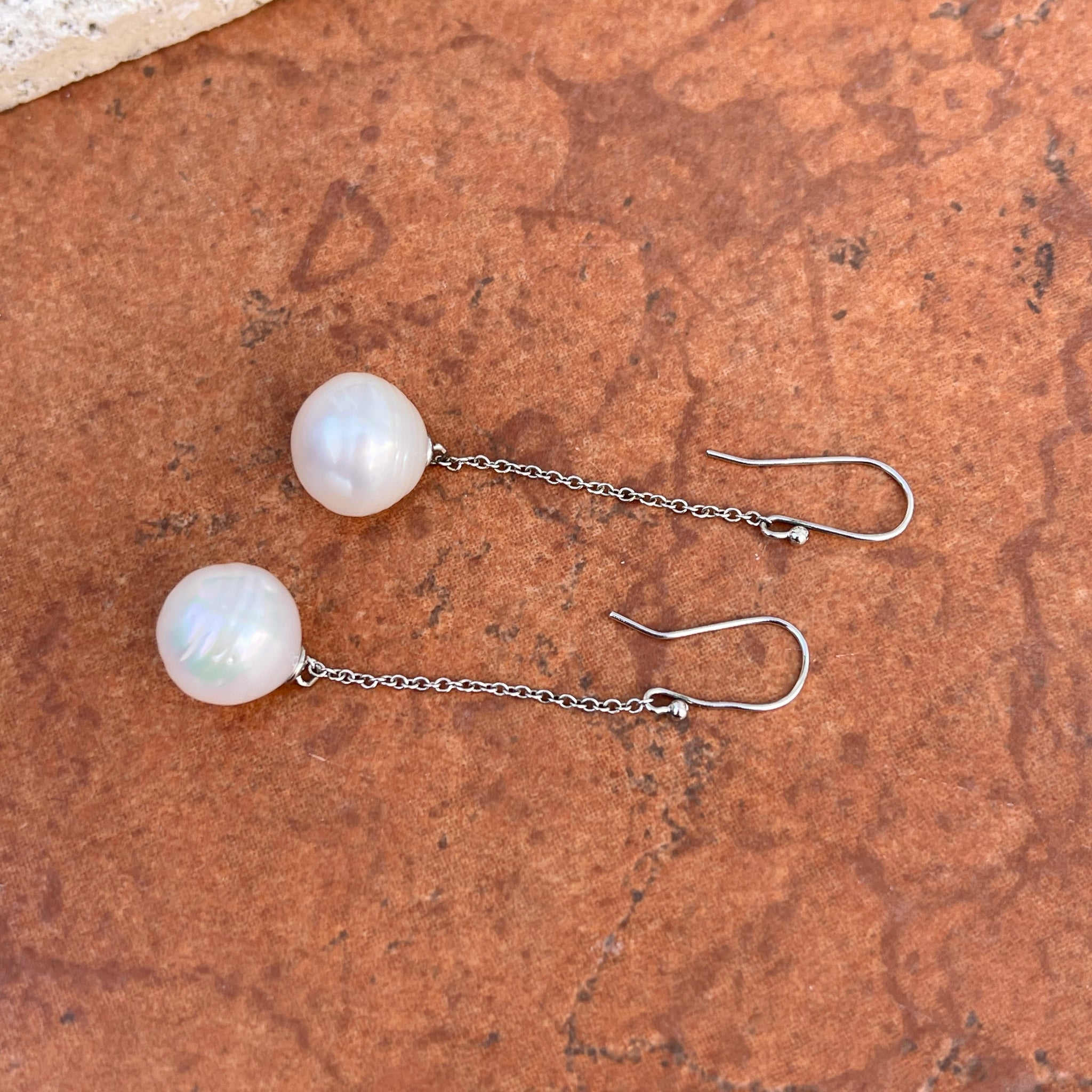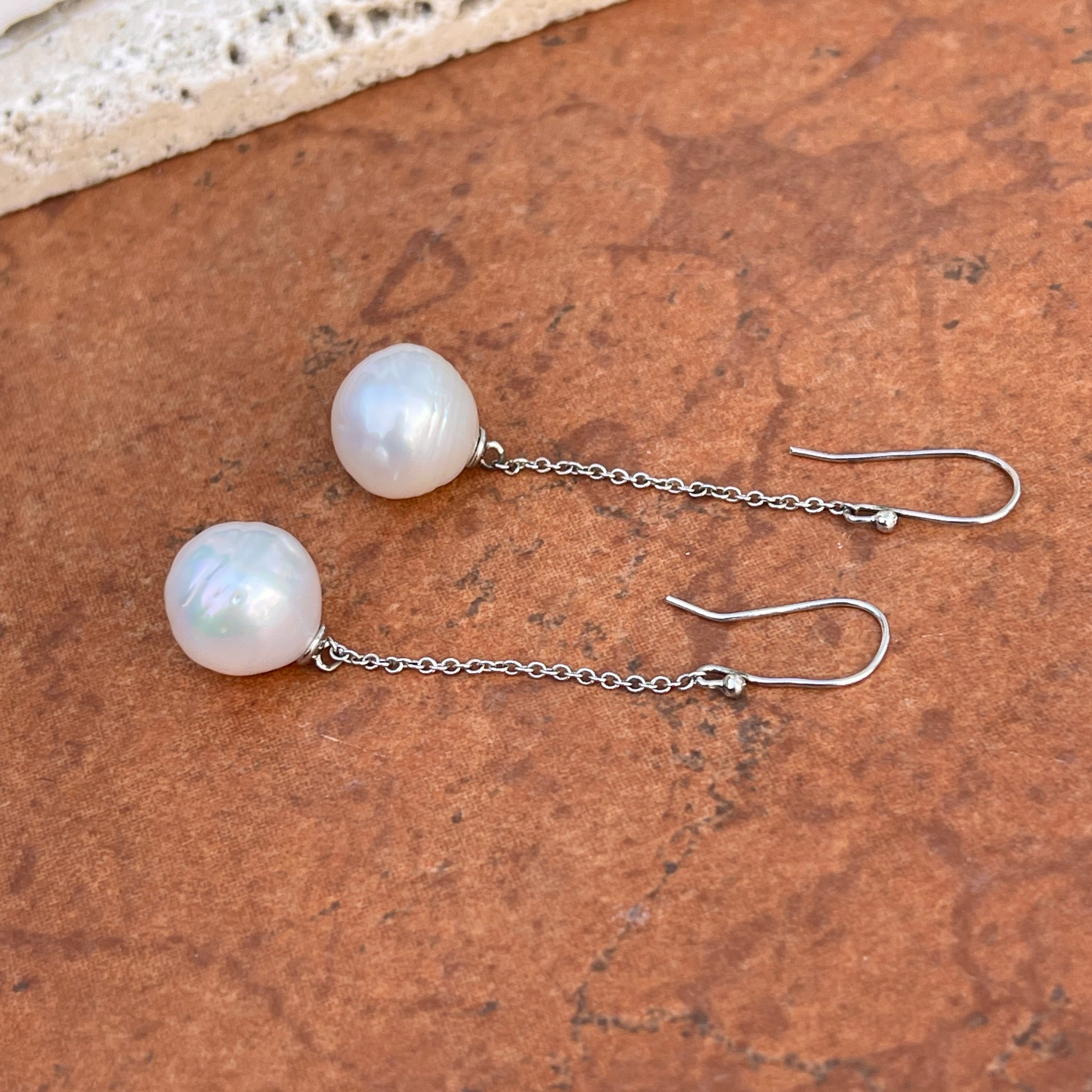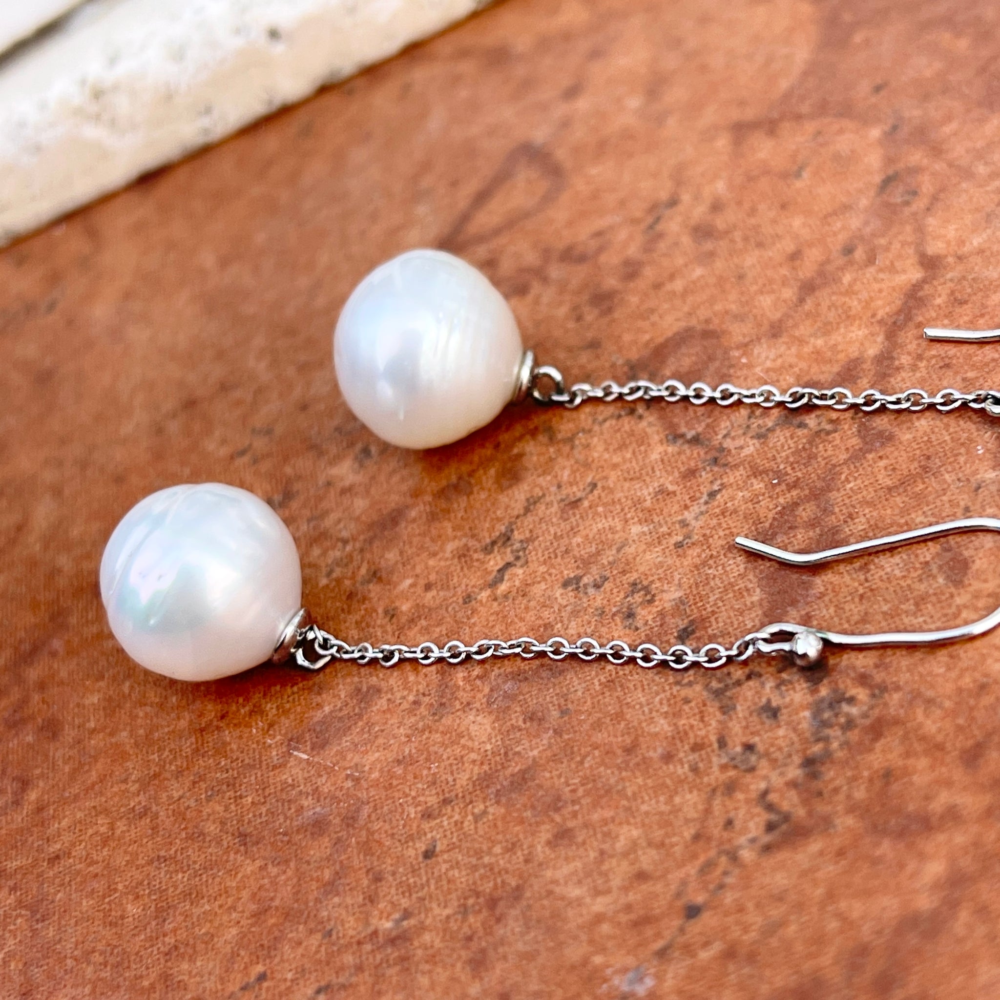 Sterling Silver 12mm Paspaley South Sea Pearl Chain Hook Earrings