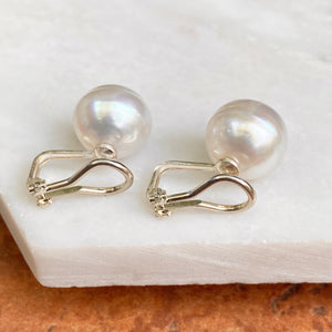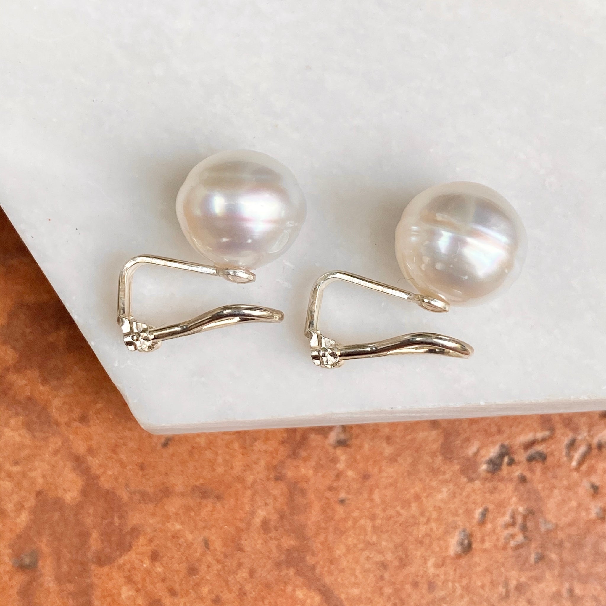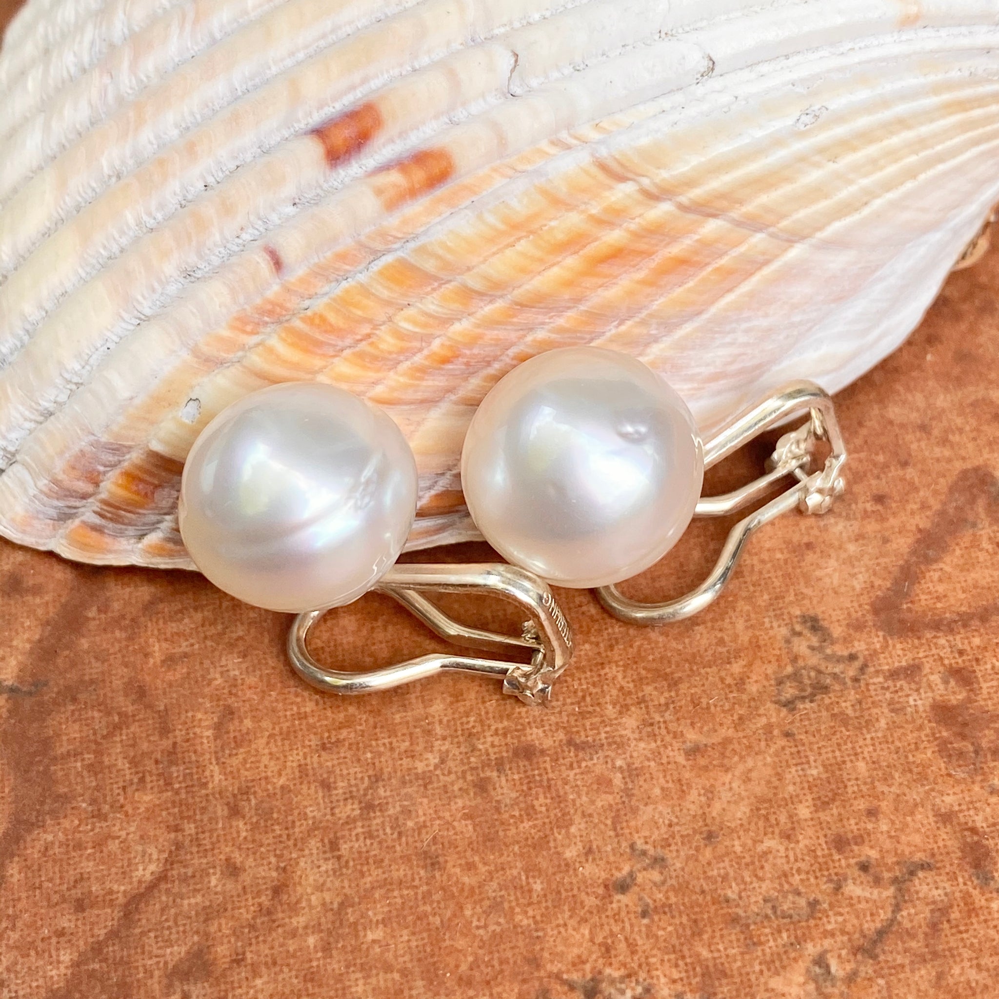 Sterling Silver + genuine Paspaley Cultured South Sea Pearl clip-on stud earrings. Paspaley "Circle" shape is not perfectly round and has lines and ridges.