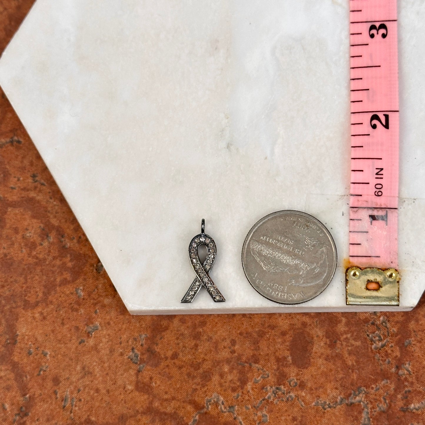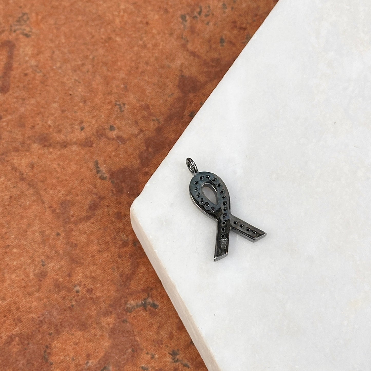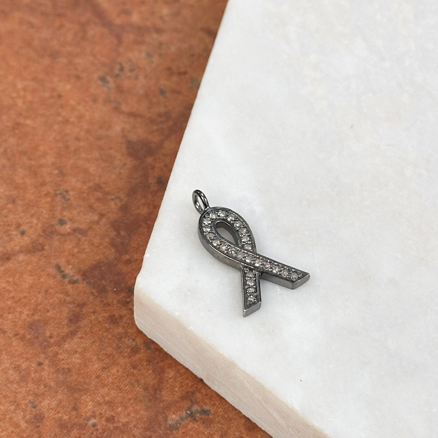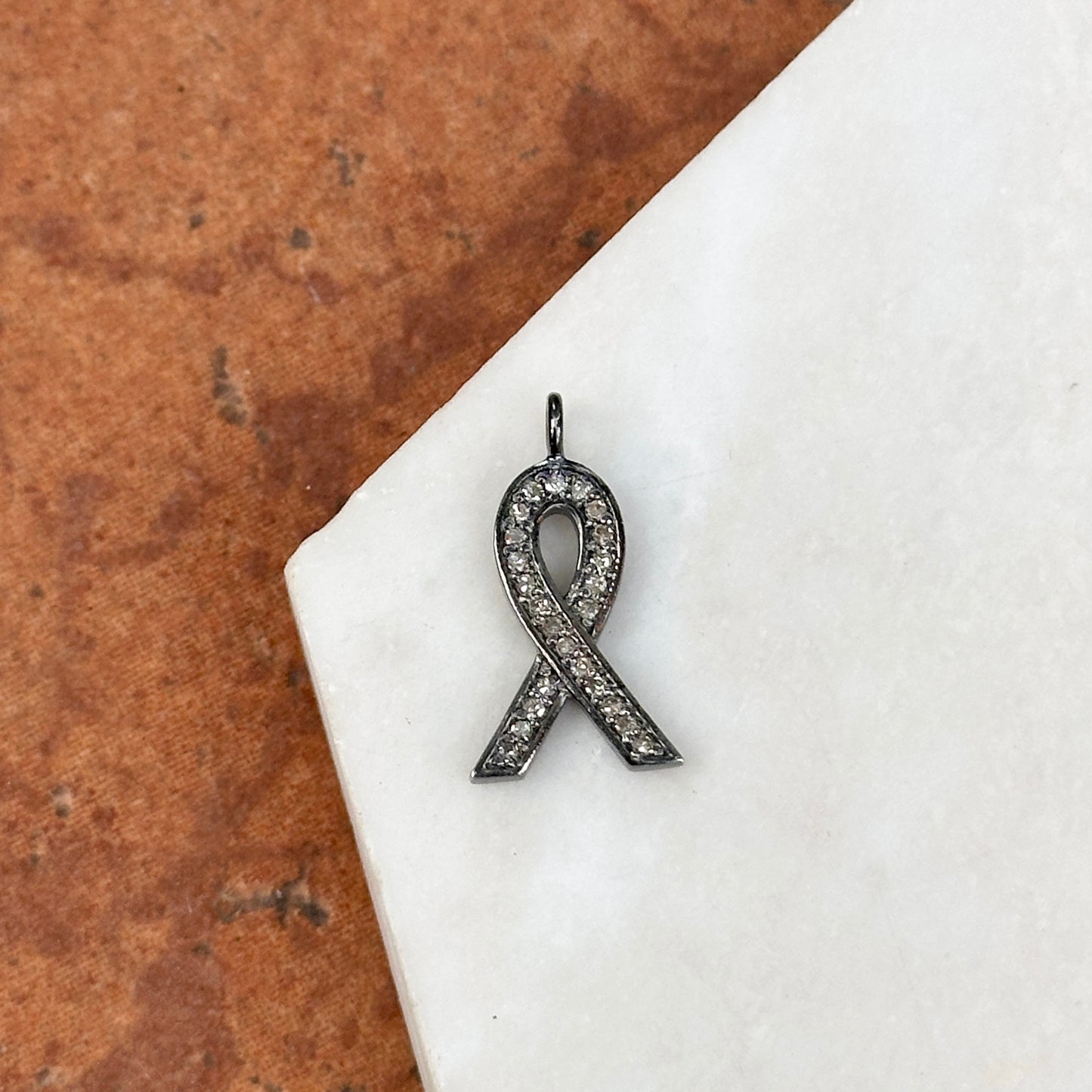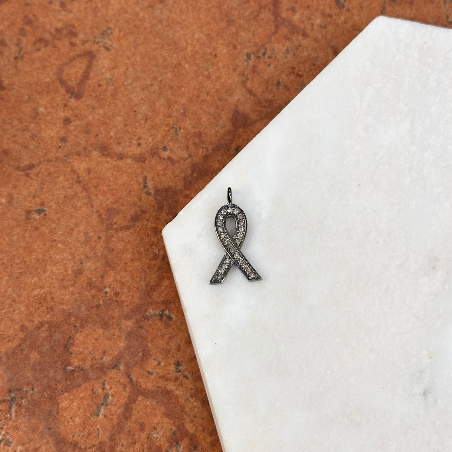 Blackened Sterling Silver Pave Diamond Cancer Awareness Ribbon Pendant Charm