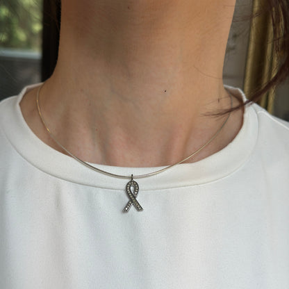 Sterling Silver Pave Diamond Cancer Awareness Ribbon Pendant Charm