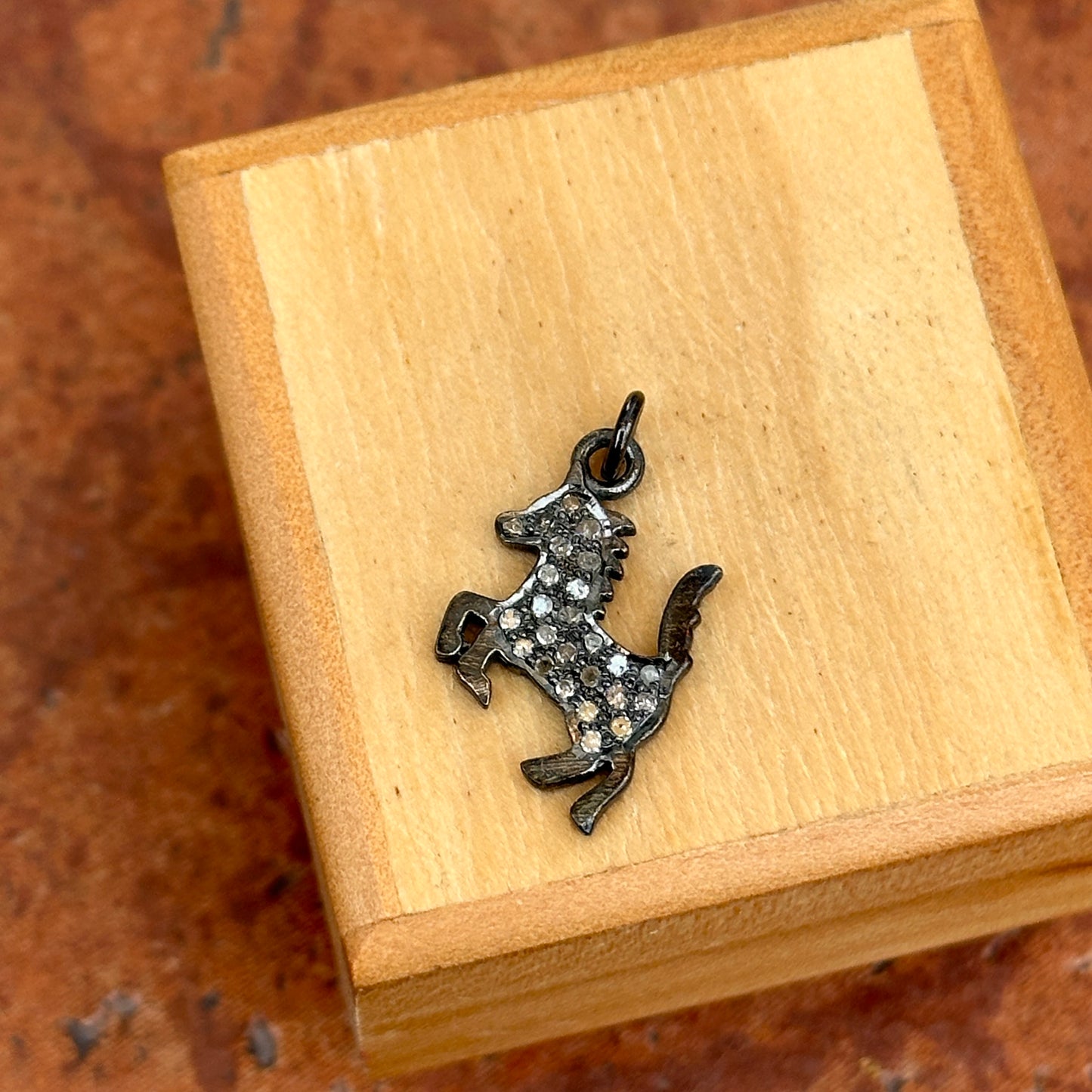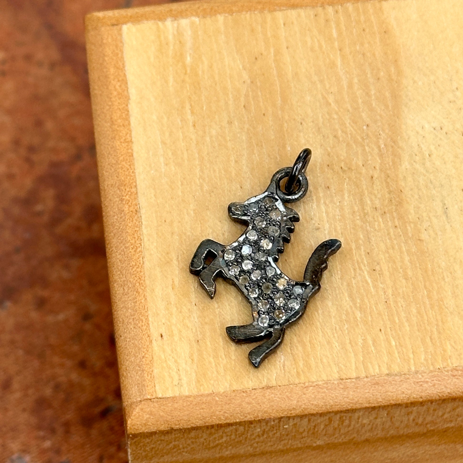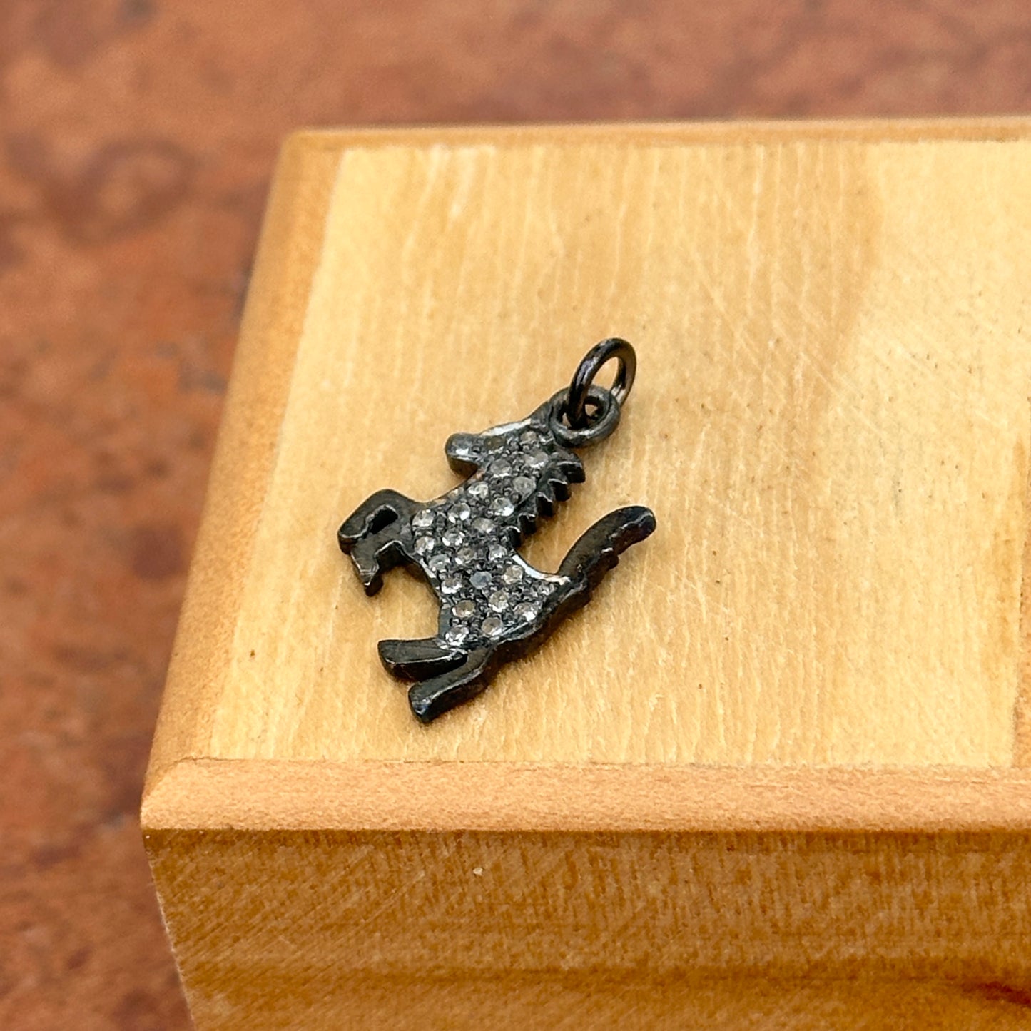 Blackened Sterling Silver Pave Diamond Horse Pendant Charm
