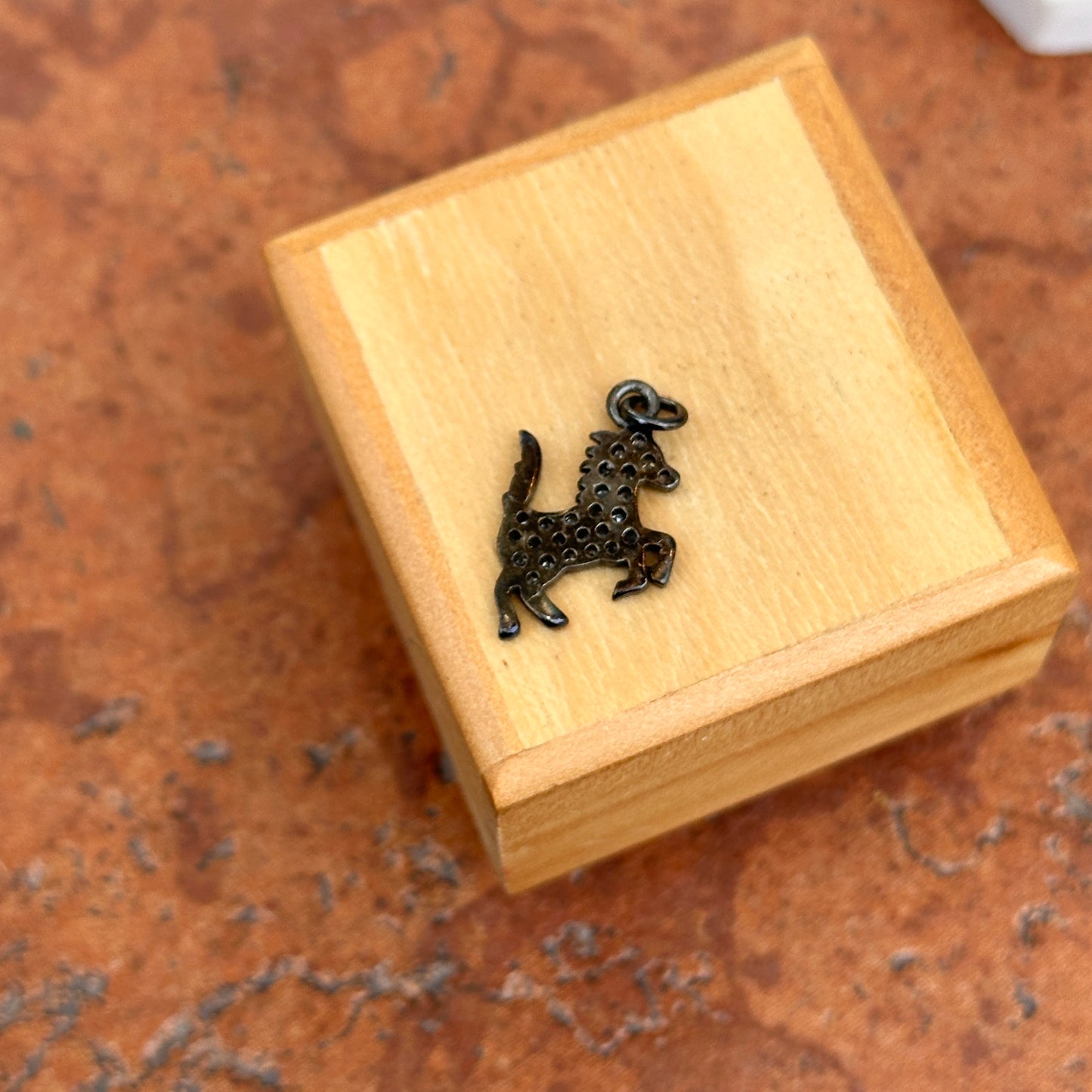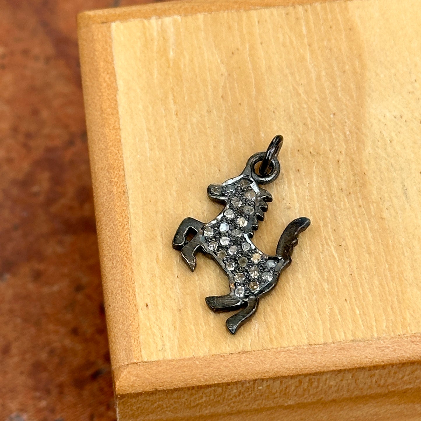 Sterling Silver Pave Diamond Horse Pendant Charm Small Blackened