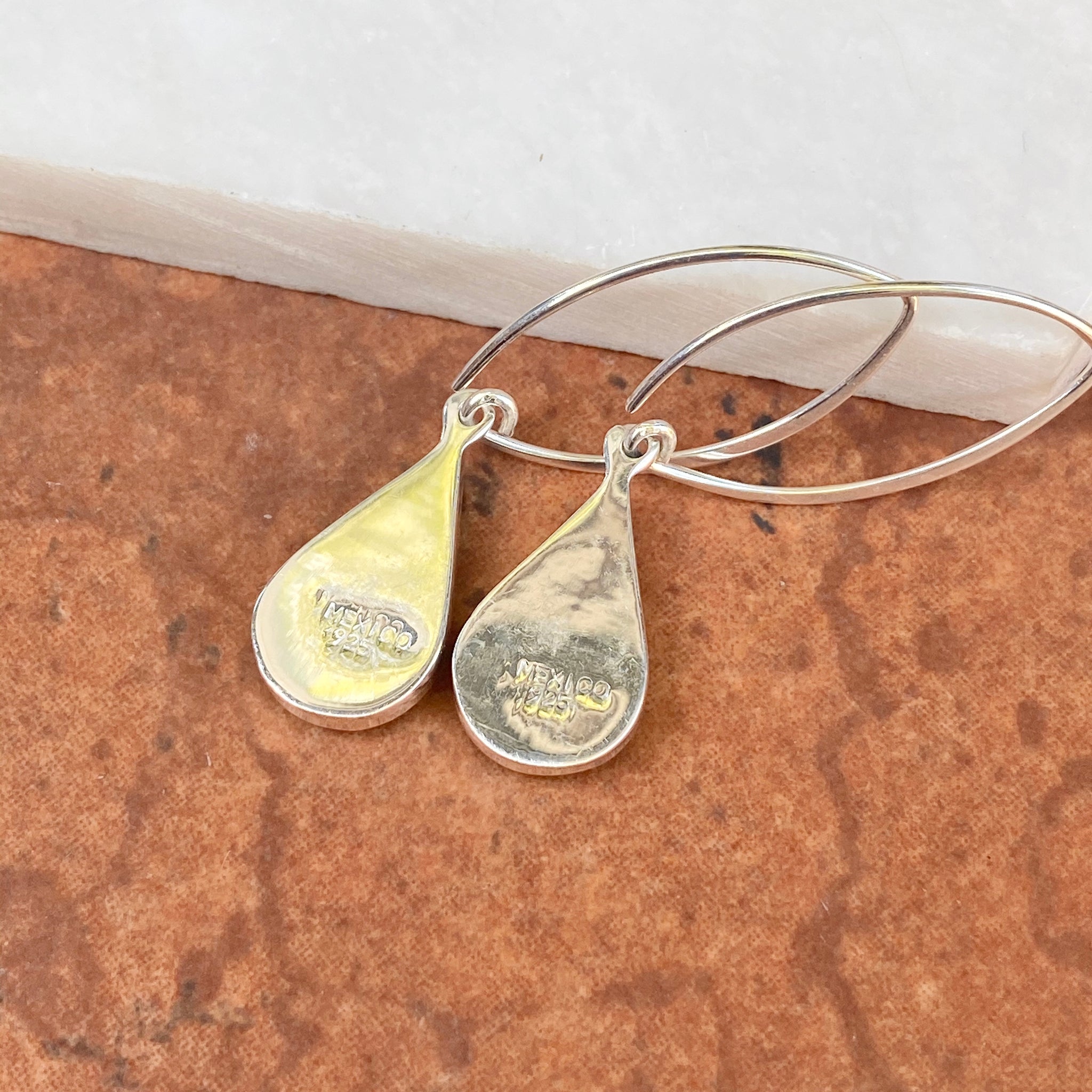Sterling Silver Pear-Shaped Turquoise Marquise-Shaped Ear Wire Earrings