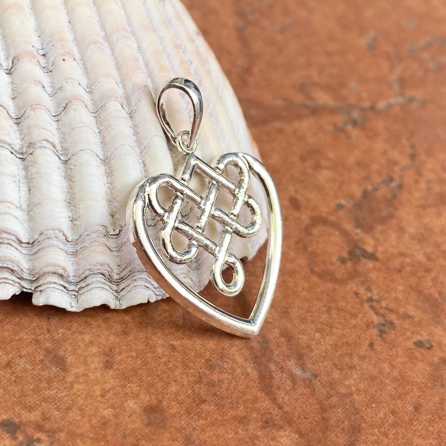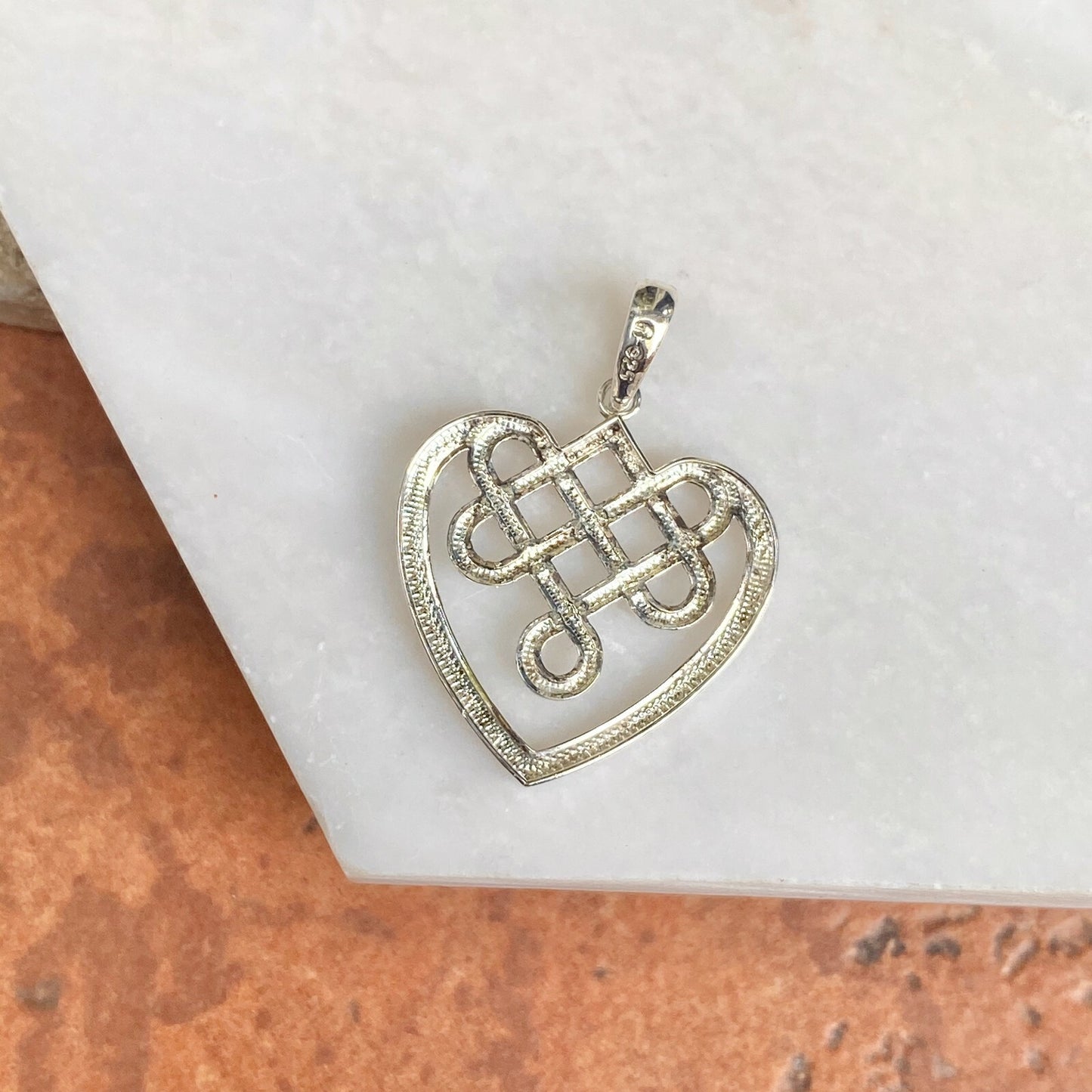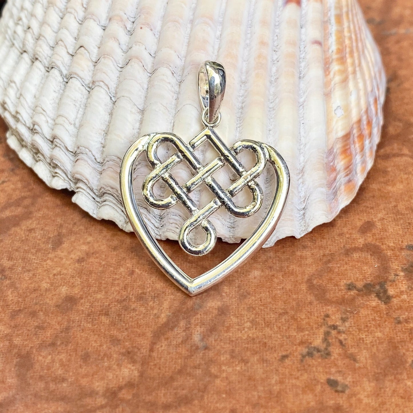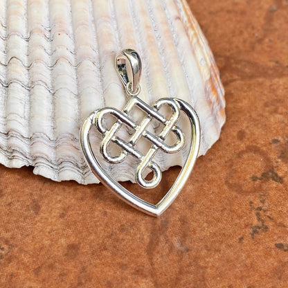 Sterling Silver & Polished Celtic Knot Weave Heart Pendant Charm