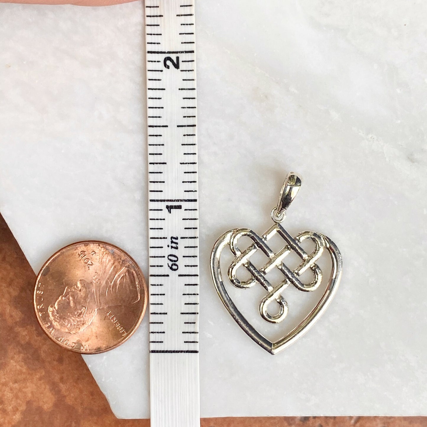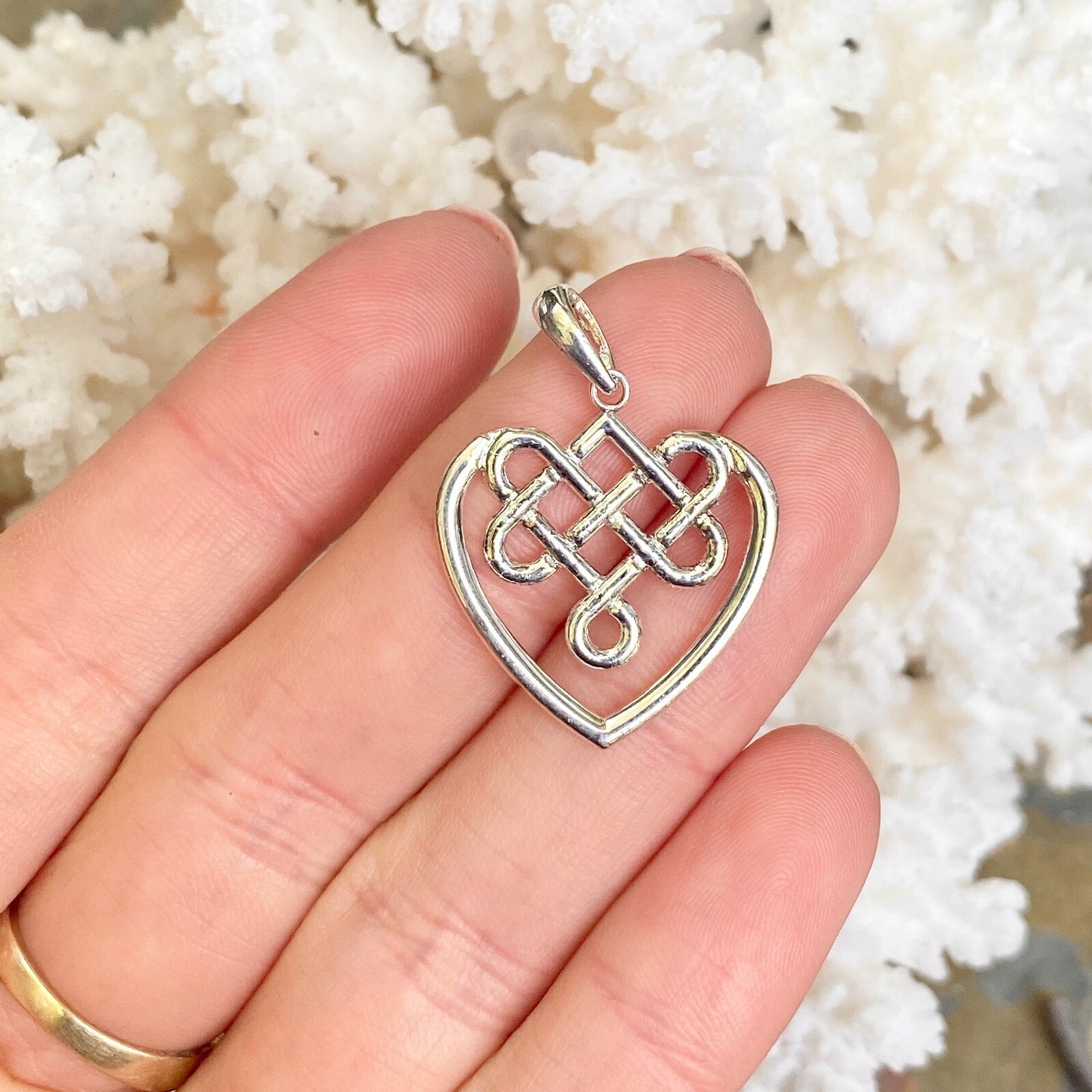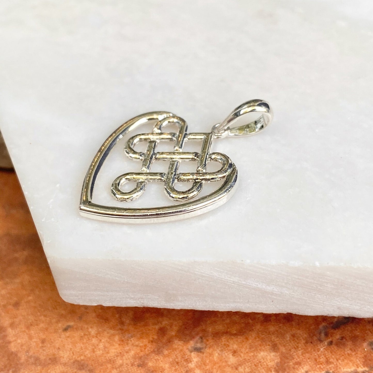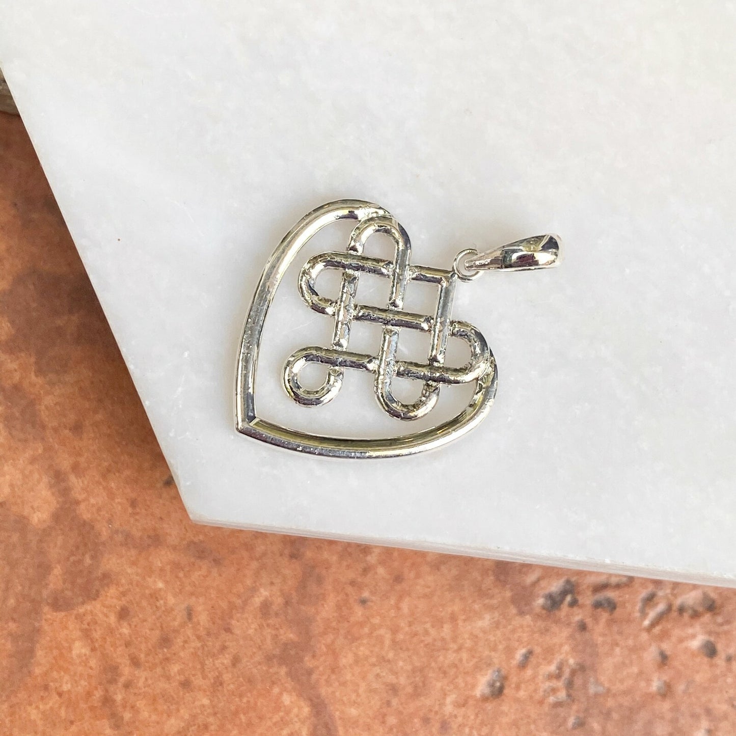 Sterling Silver & Polished Celtic Knot Weave Heart Pendant Charm