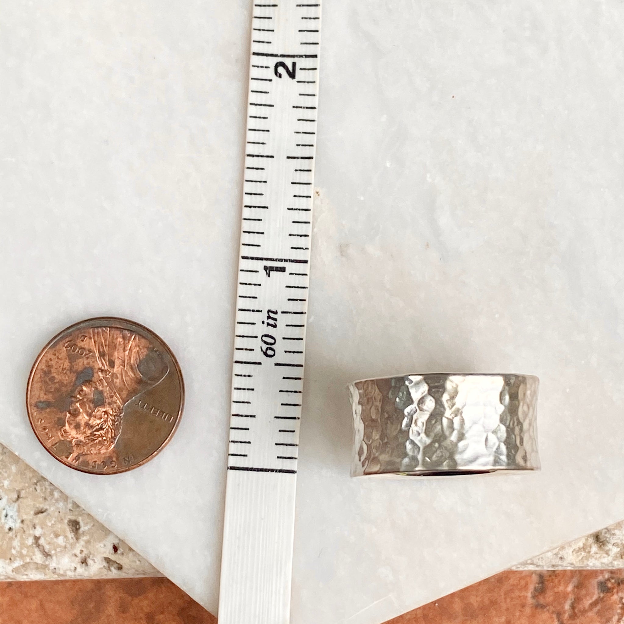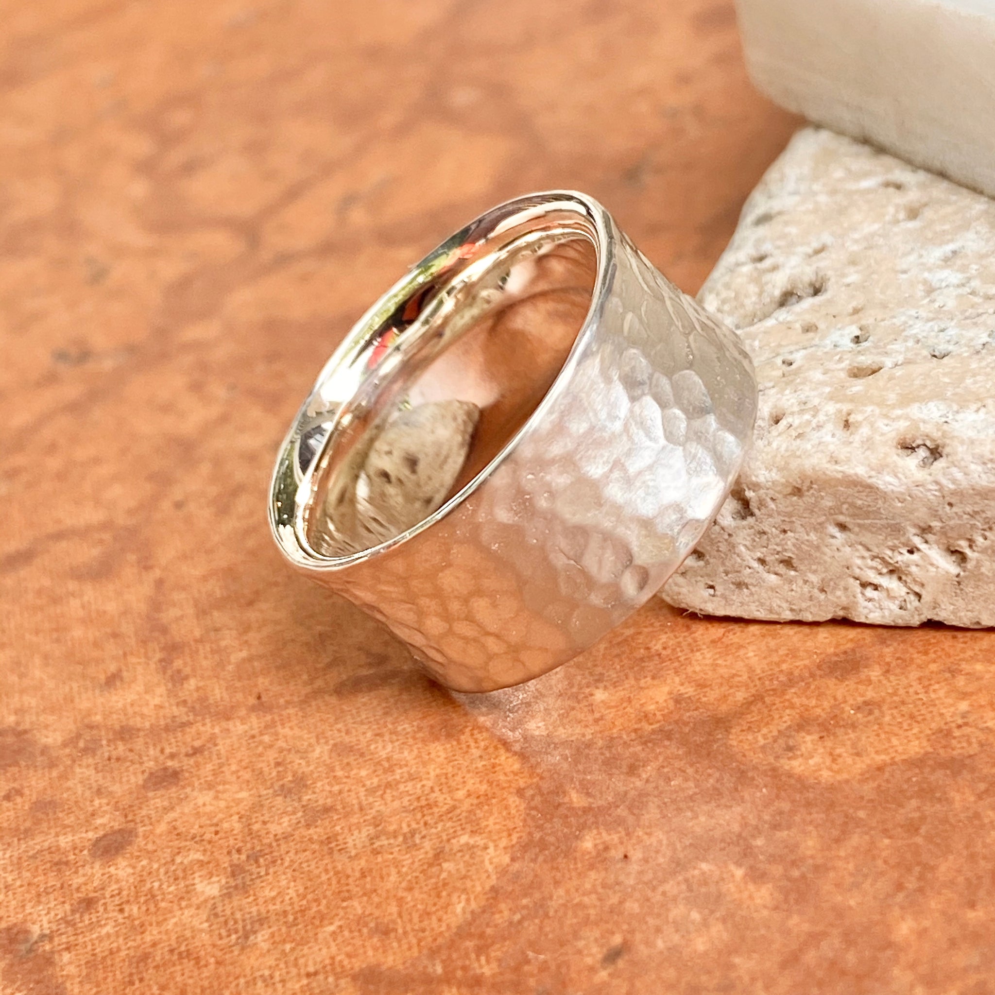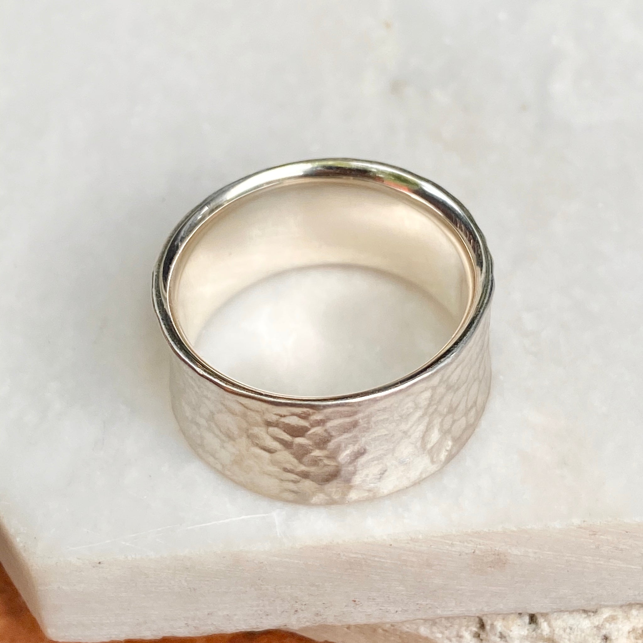Sterling Silver Polished Hammered Concave Cigar Band Ring