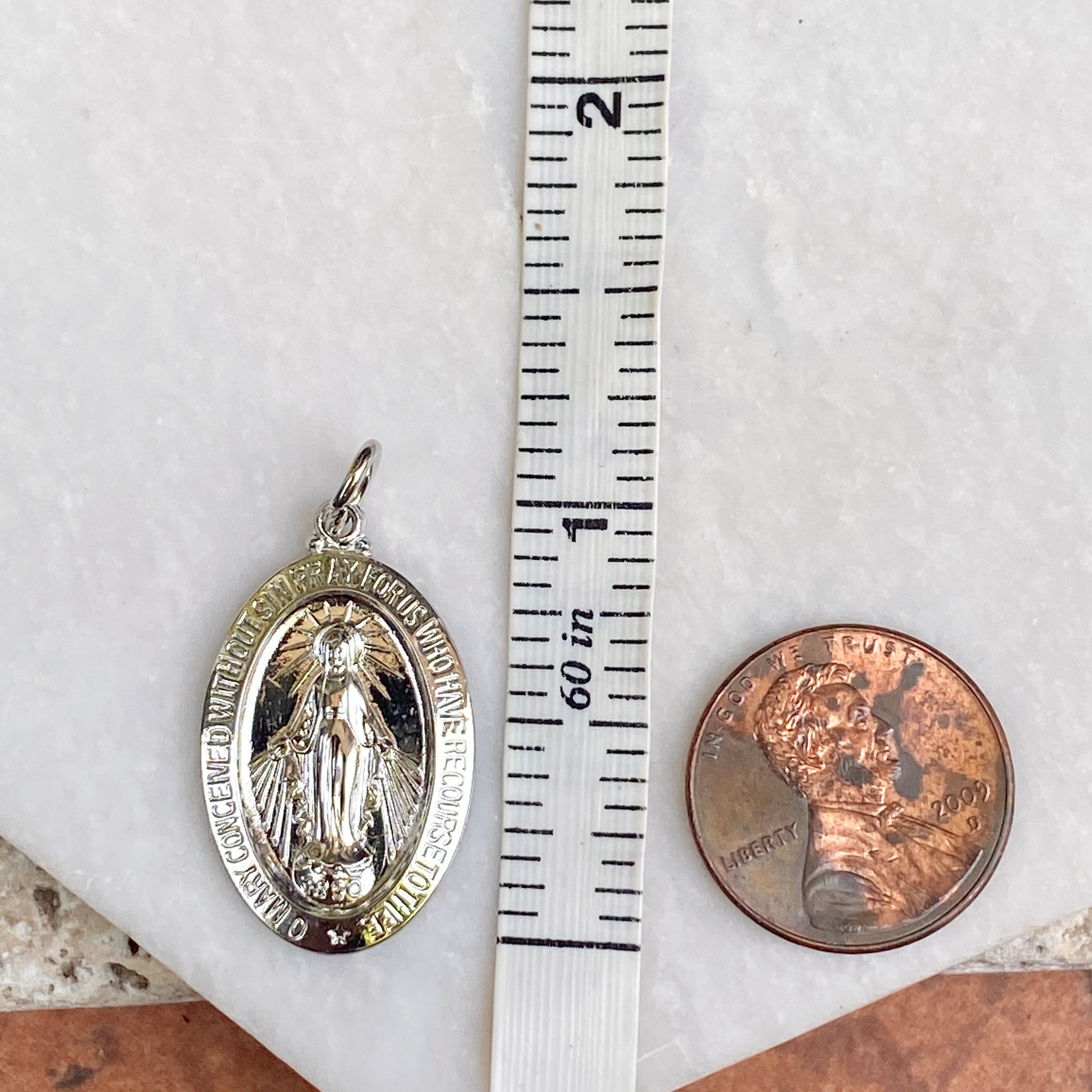 Sterling Silver Polished Oval Miraculous Medal Pendant 30mm