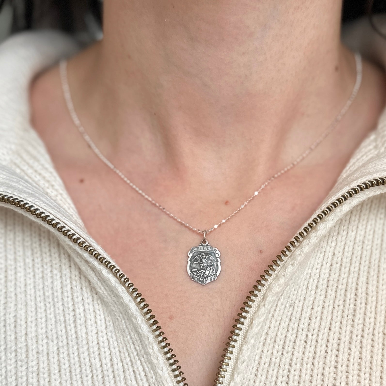 - Wear this medal on a silver chain necklace or cord necklace.