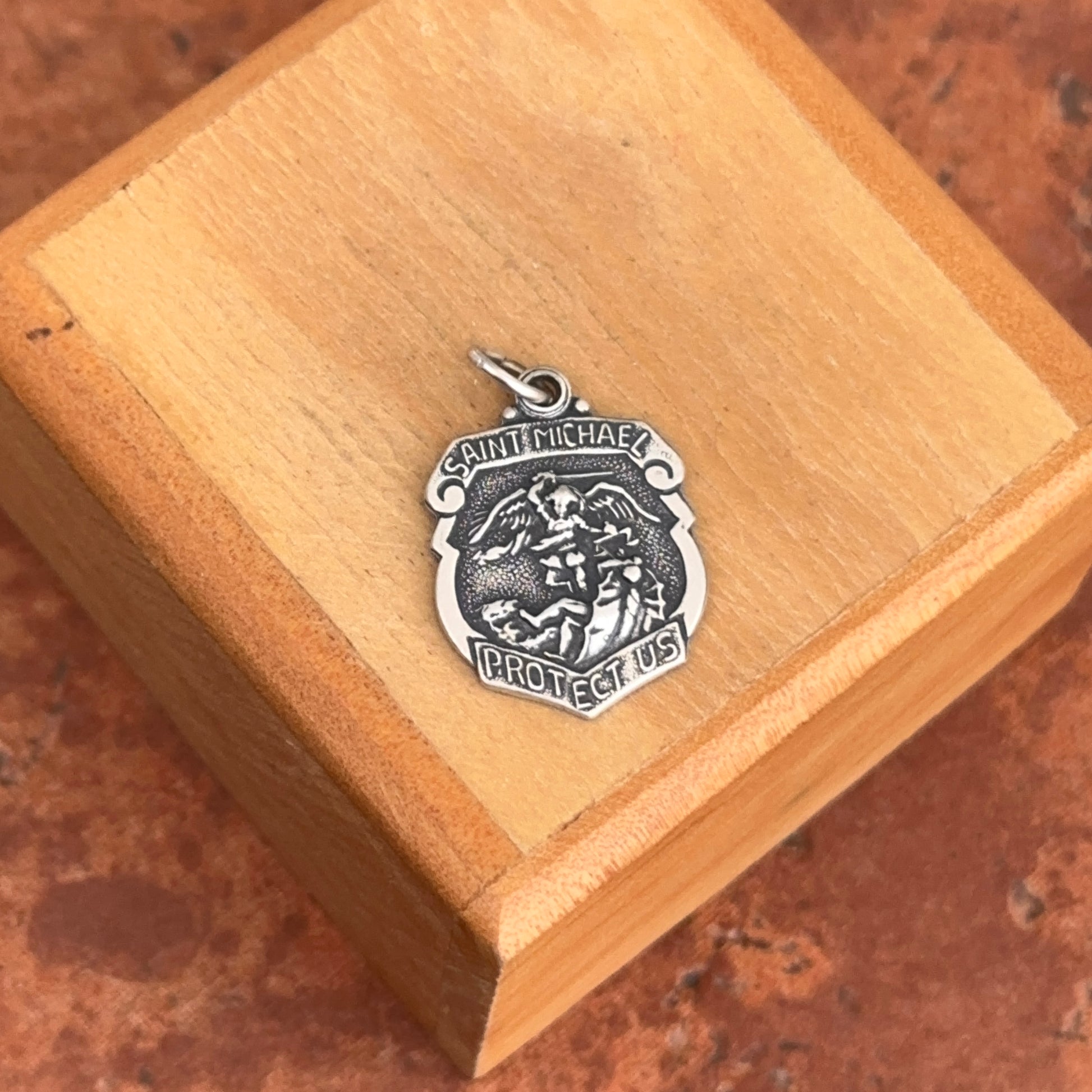 Sterling Silver Polished Saint Michael Badge Medal Pendant 16.5mm x 14mm