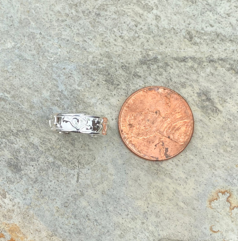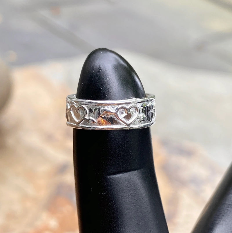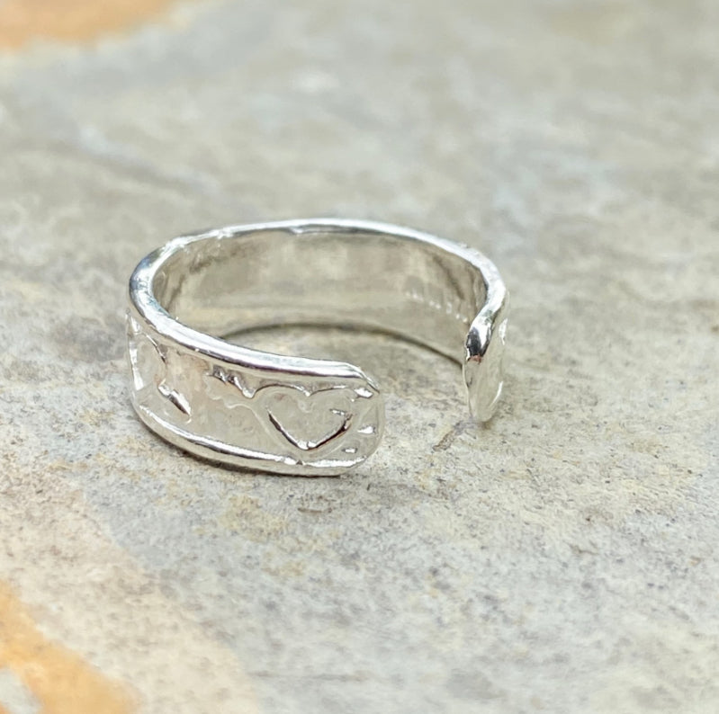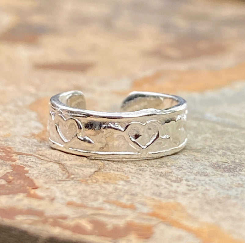 Sterling Silver Solid Polished Band Toe Ring with Heart + Arrow Design