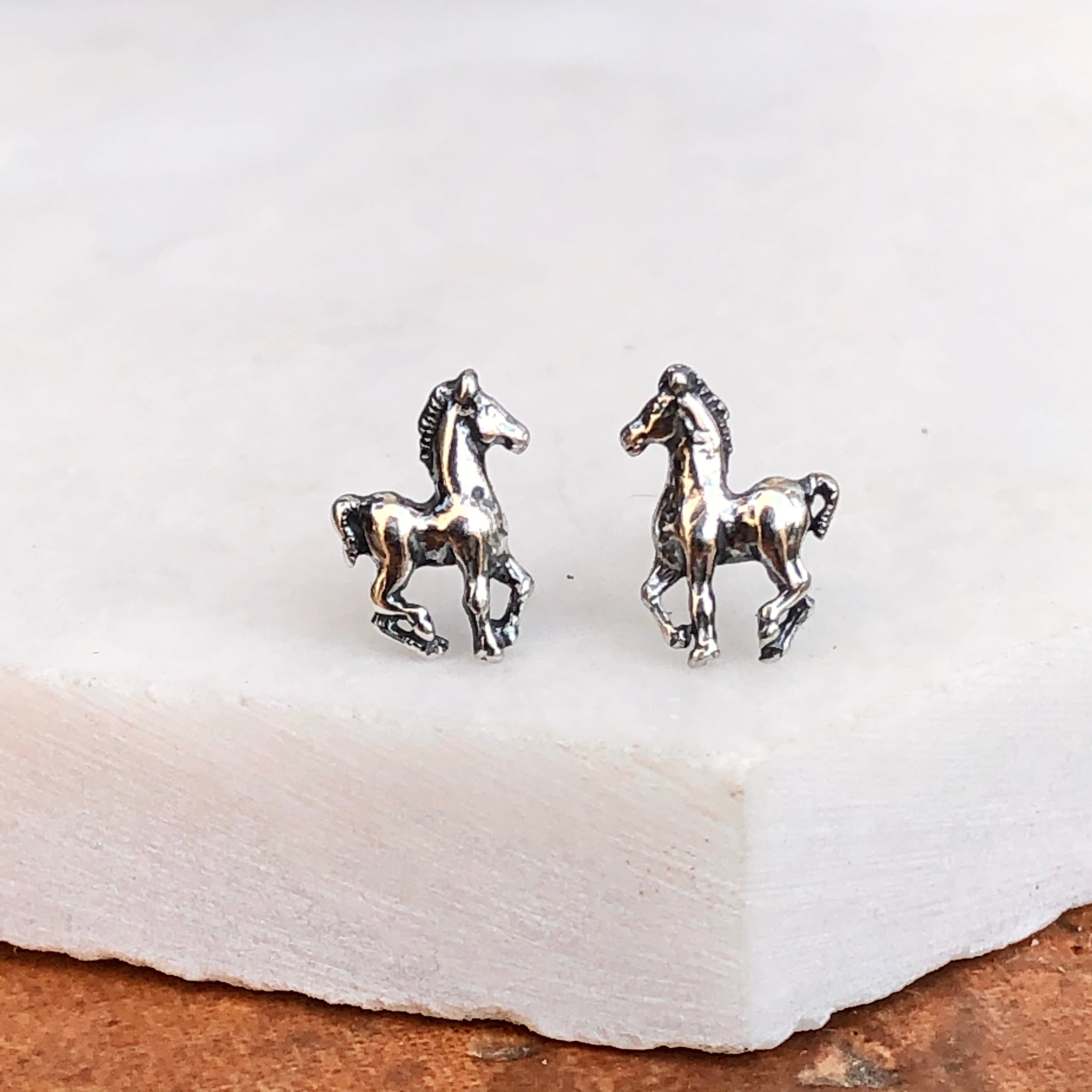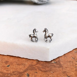 Sterling Silver Pony Horse Antiqued Stud Earrings