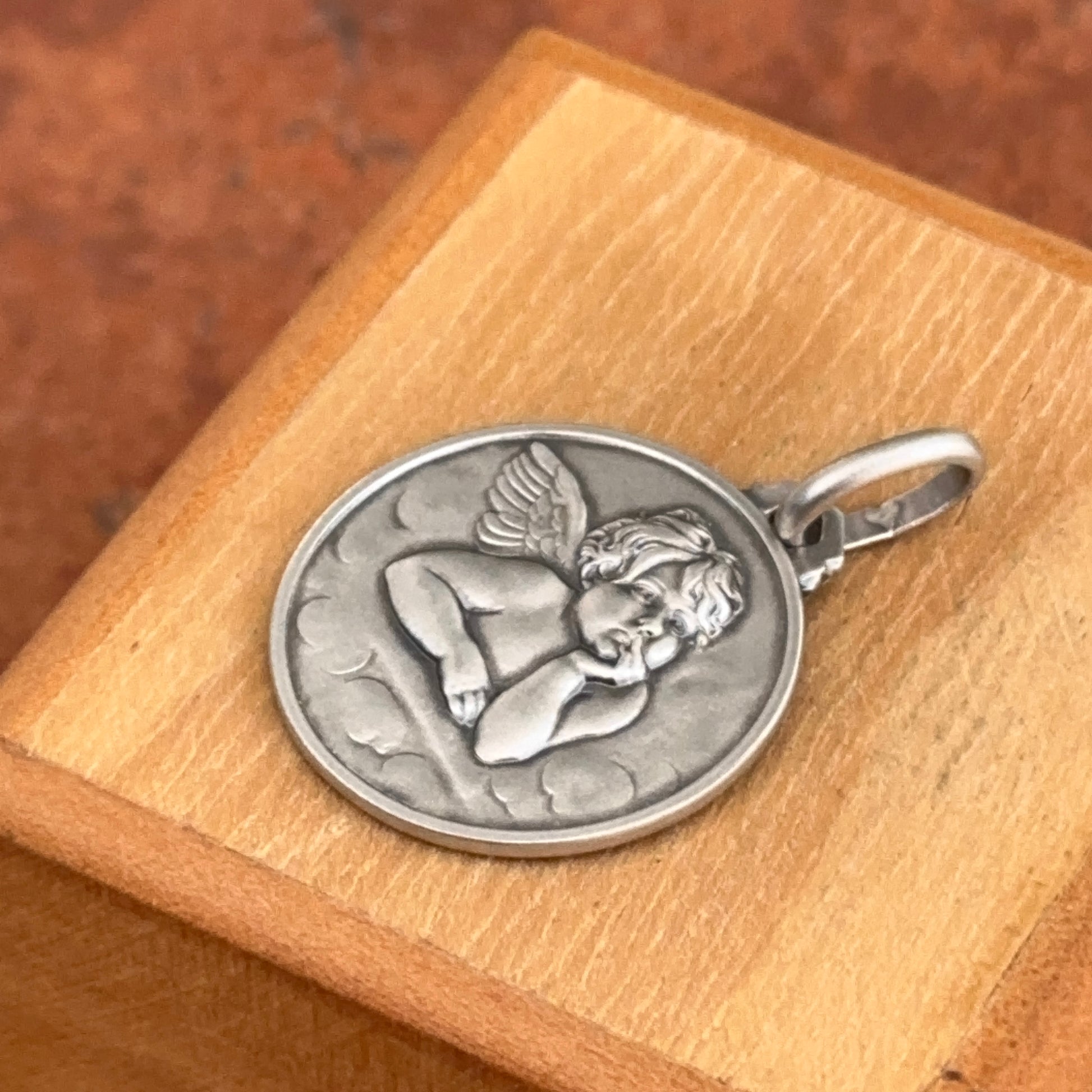 Sterling Silver Raphael Baby Angel Medal Pendant 21mm