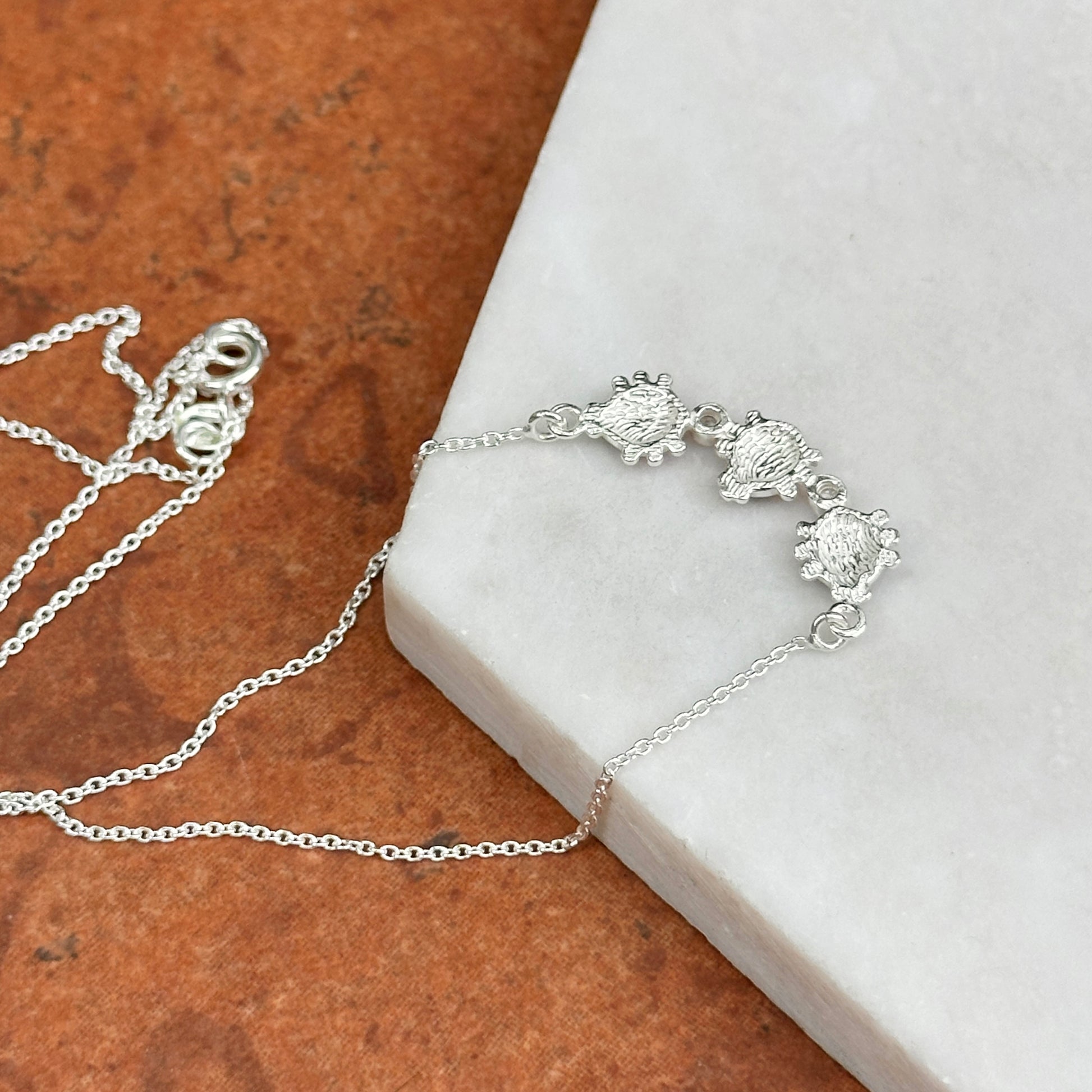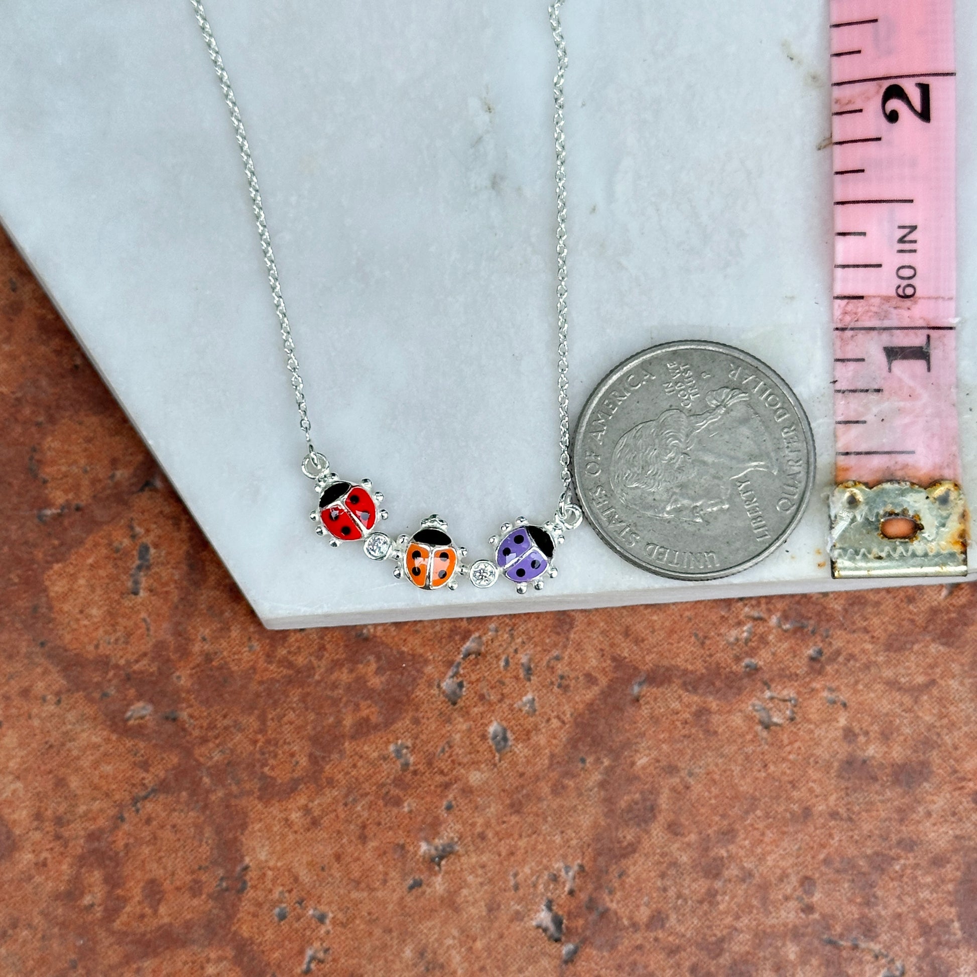 Sterling Silver Red, Orange, Purple Mini Enamel Ladybugs + CZ Necklace 14''