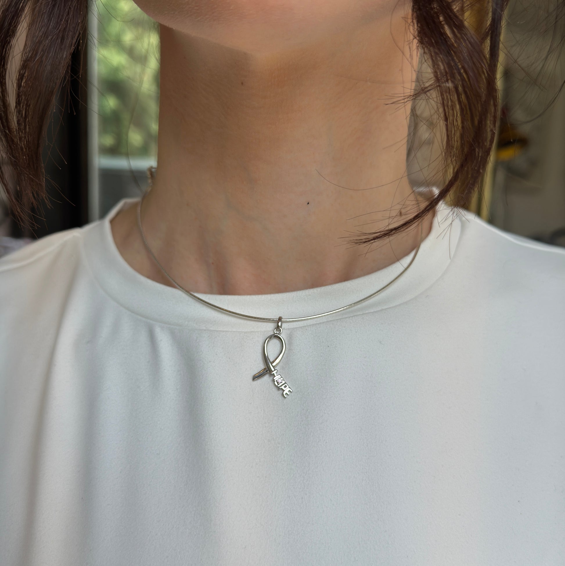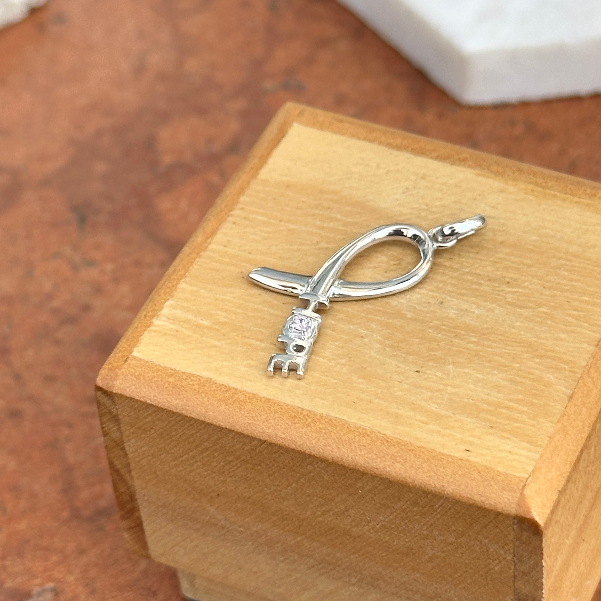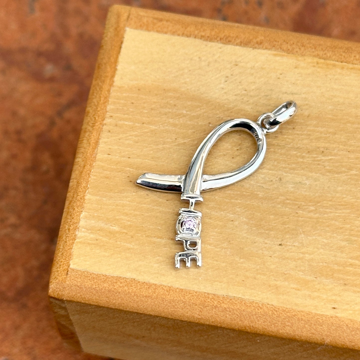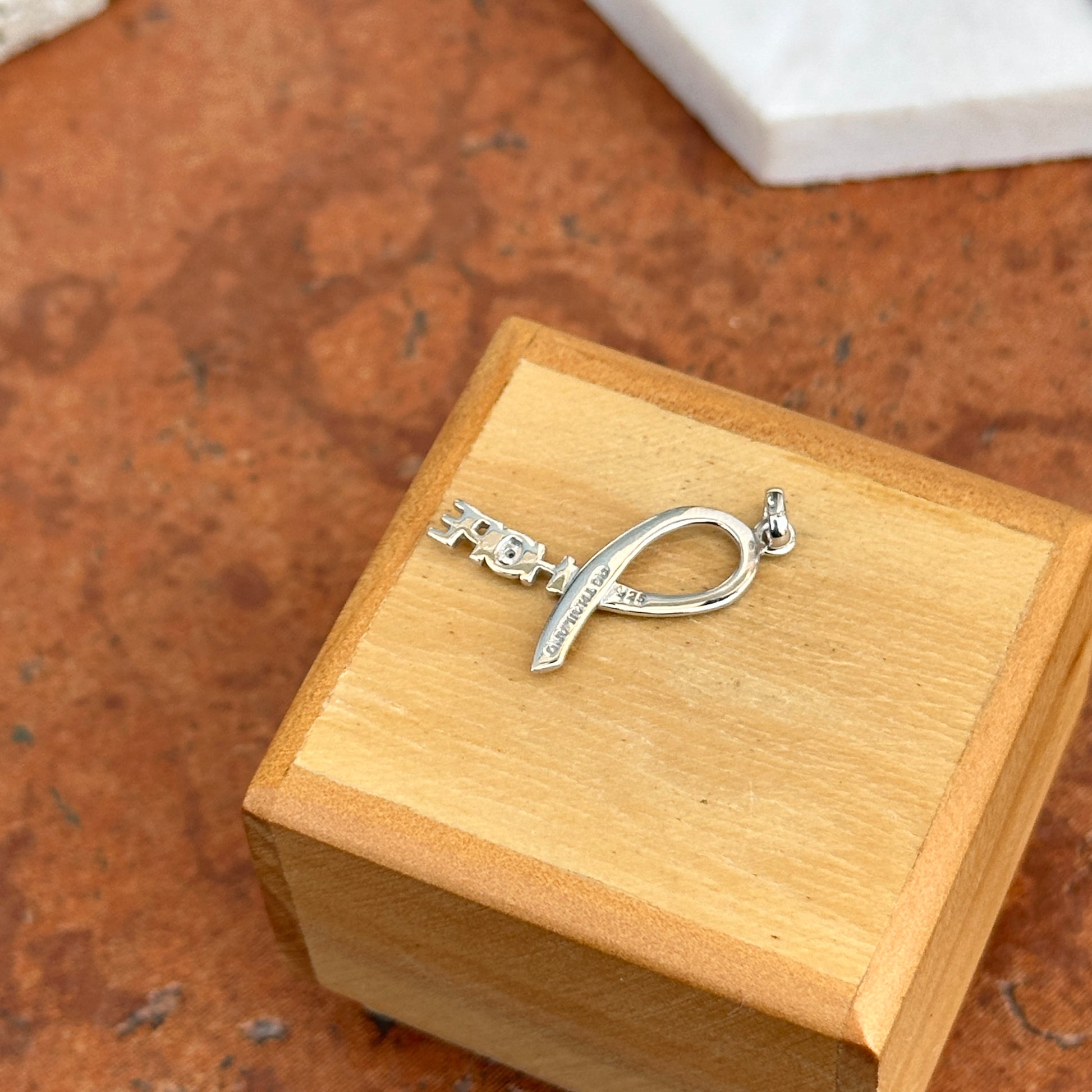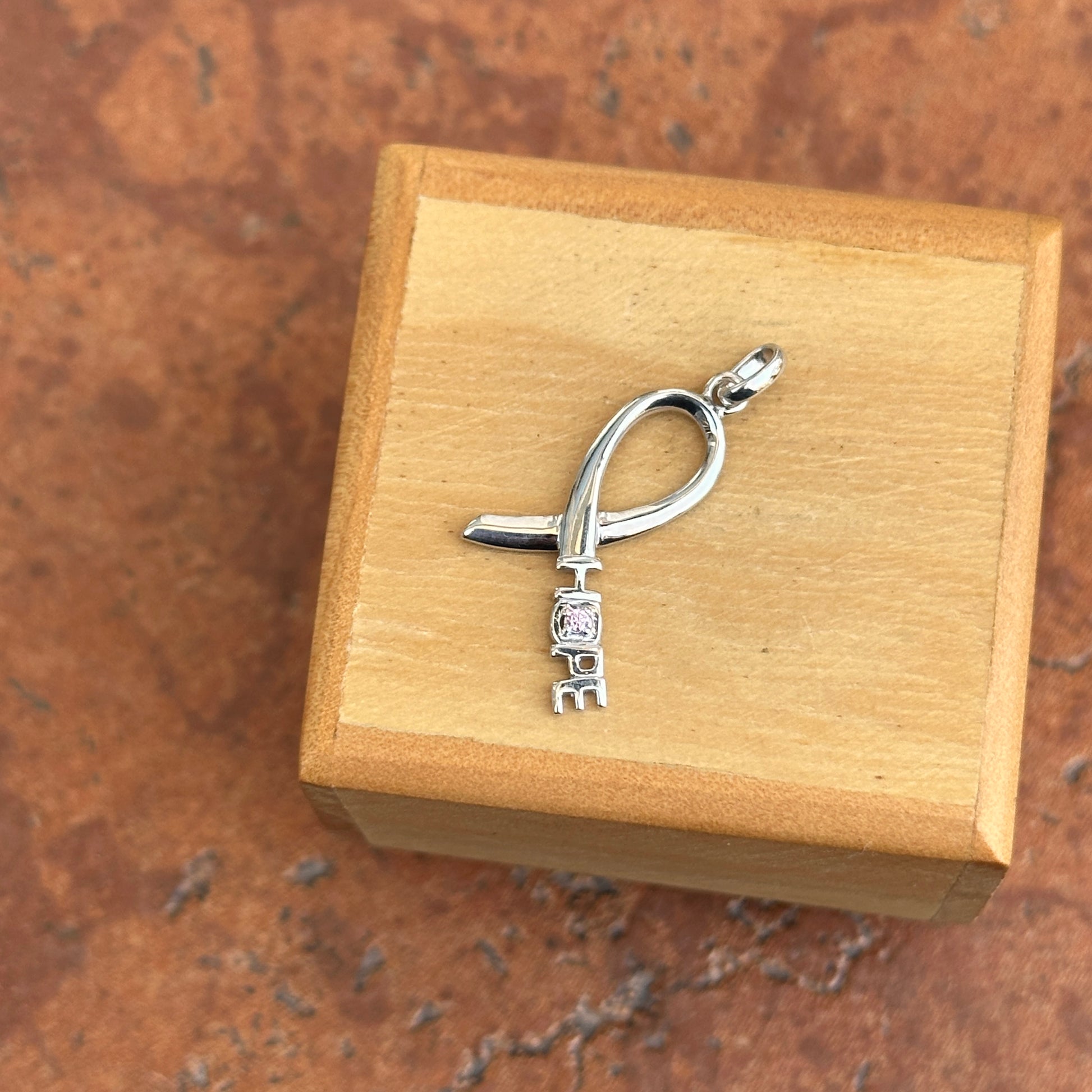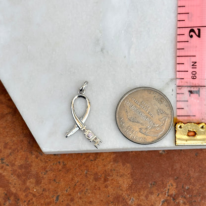 Sterling Silver Rhodium-plated Pink CZ Hope Awareness Ribbon Pendant Charm