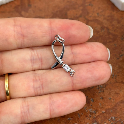 Sterling Silver Rhodium-plated Pink CZ Hope Awareness Ribbon Pendant Charm,