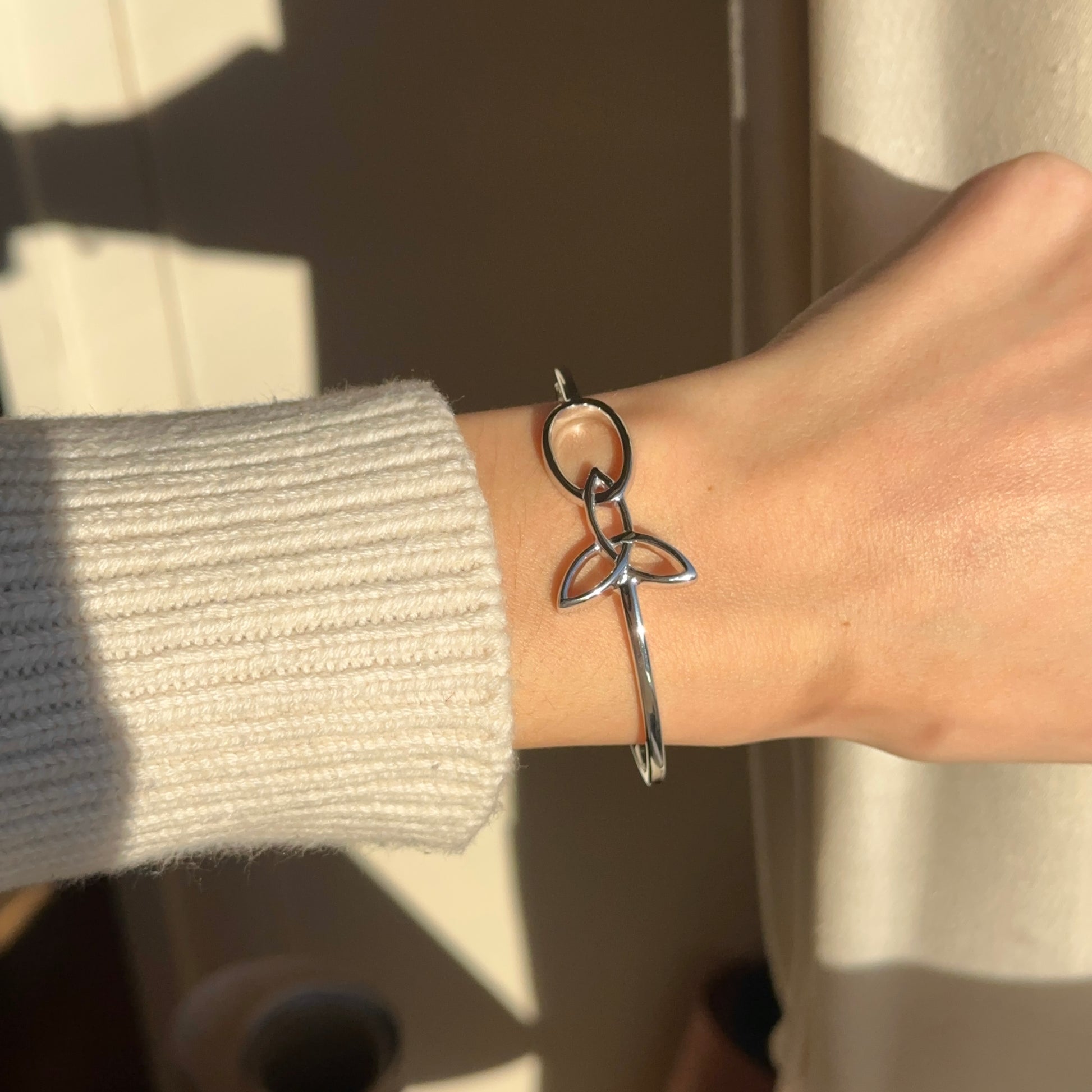 Sterling Silver Rhodium Plated Trinity Knot Oval Bangle Bracelet