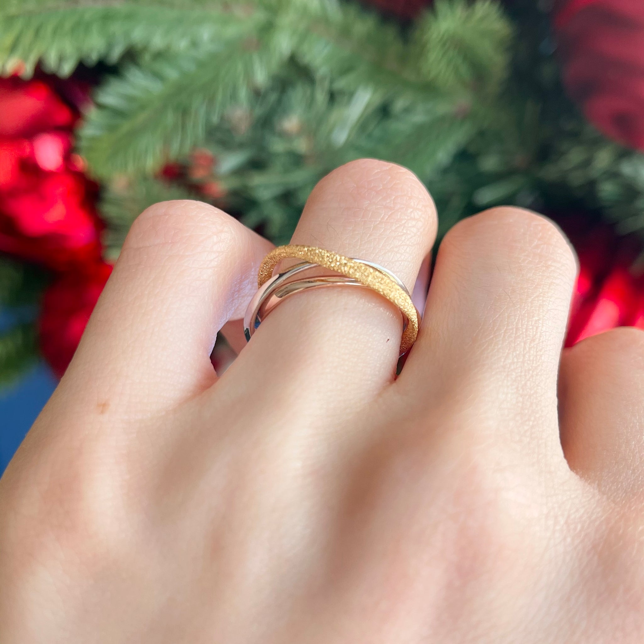 Sterling Silver, Rose + Yellow Gold Plated Intertwined Ring
