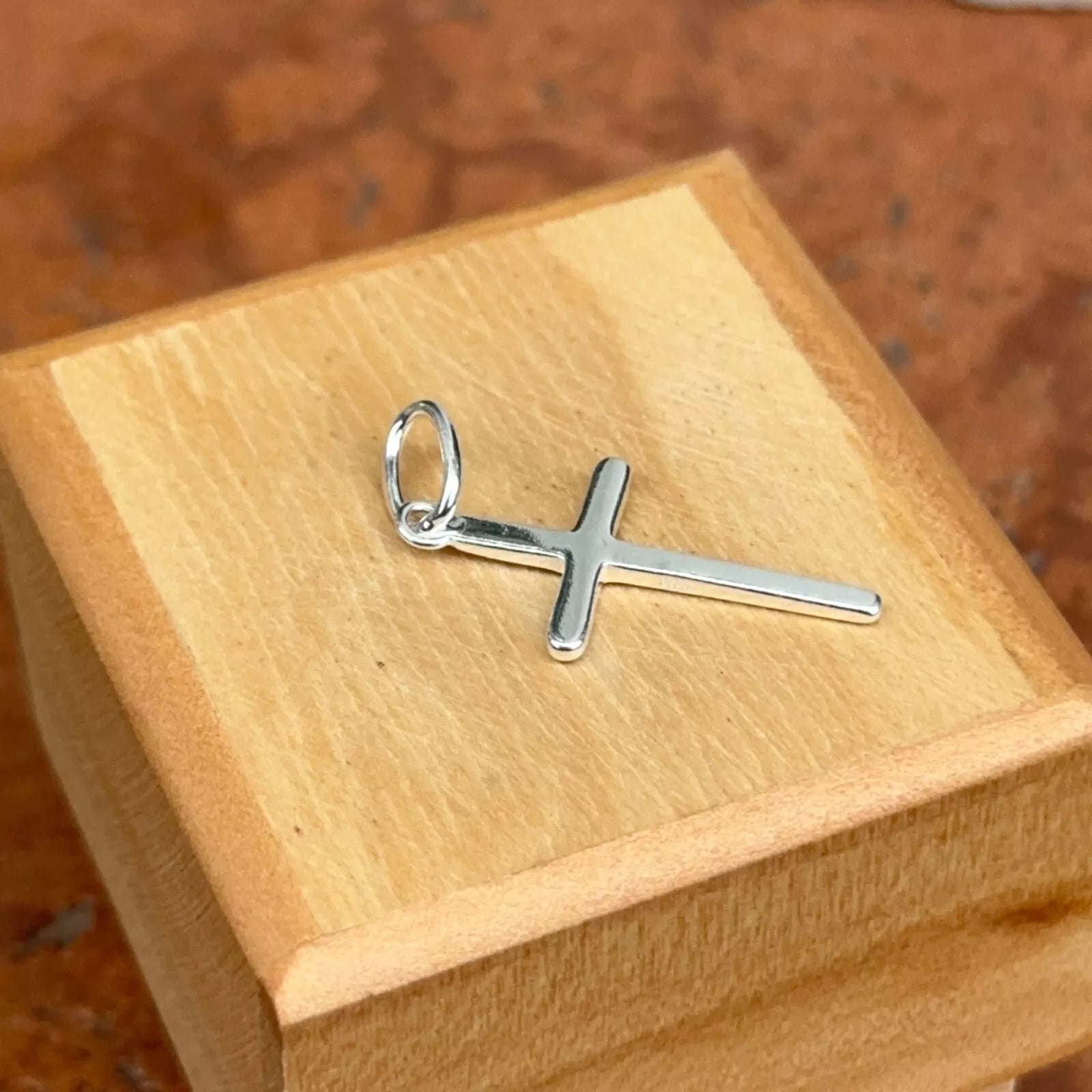 Sterling silver polished plain flat cross pendant charm