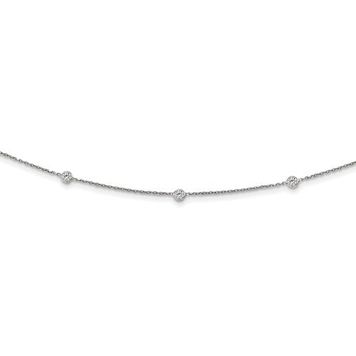 Polished sterling silver choker necklace with three station cubic zirconia stones. A statement-getting choker necklace that looks great worn alone or layered with other longer necklaces!