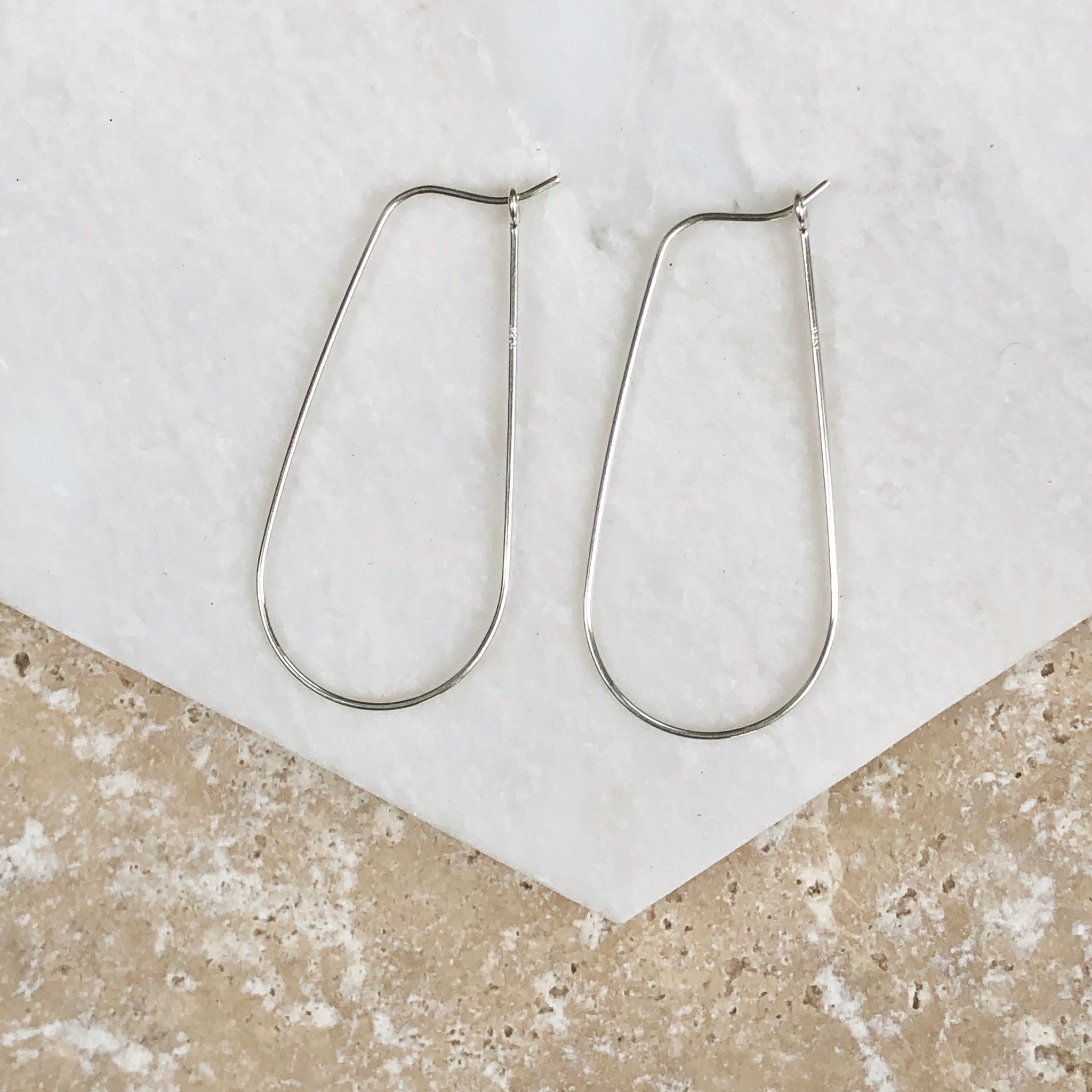 Sterling Silver thin wire teardrop hoop earrings. Wear as-is or add on earring charms to create your own look!
