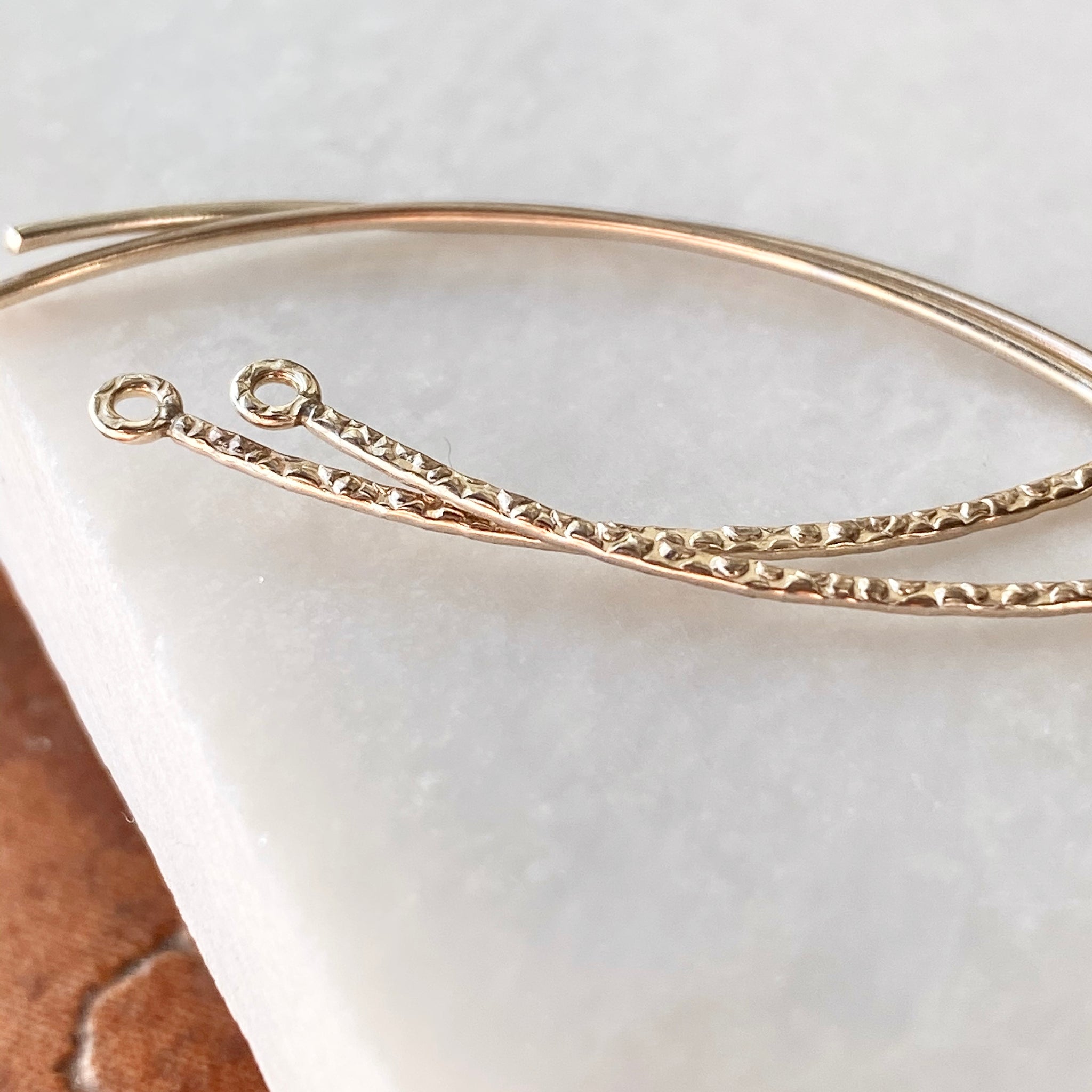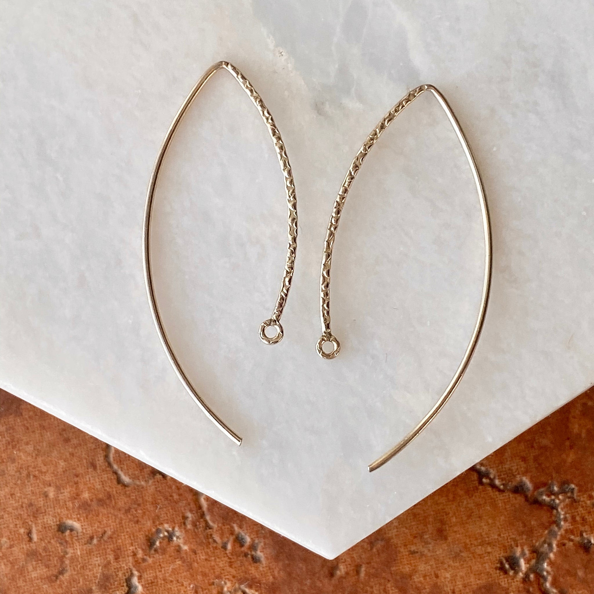 Create your own earrings! These sterling silver marquise-shaped ear wires feature a textured finish on the front half (the back half is smooth); the shape provides a long, dramatic contour, and a fixed ring makes it simple to attach drops and dangles.