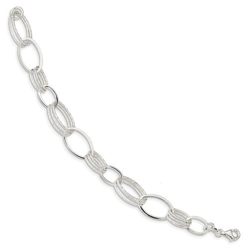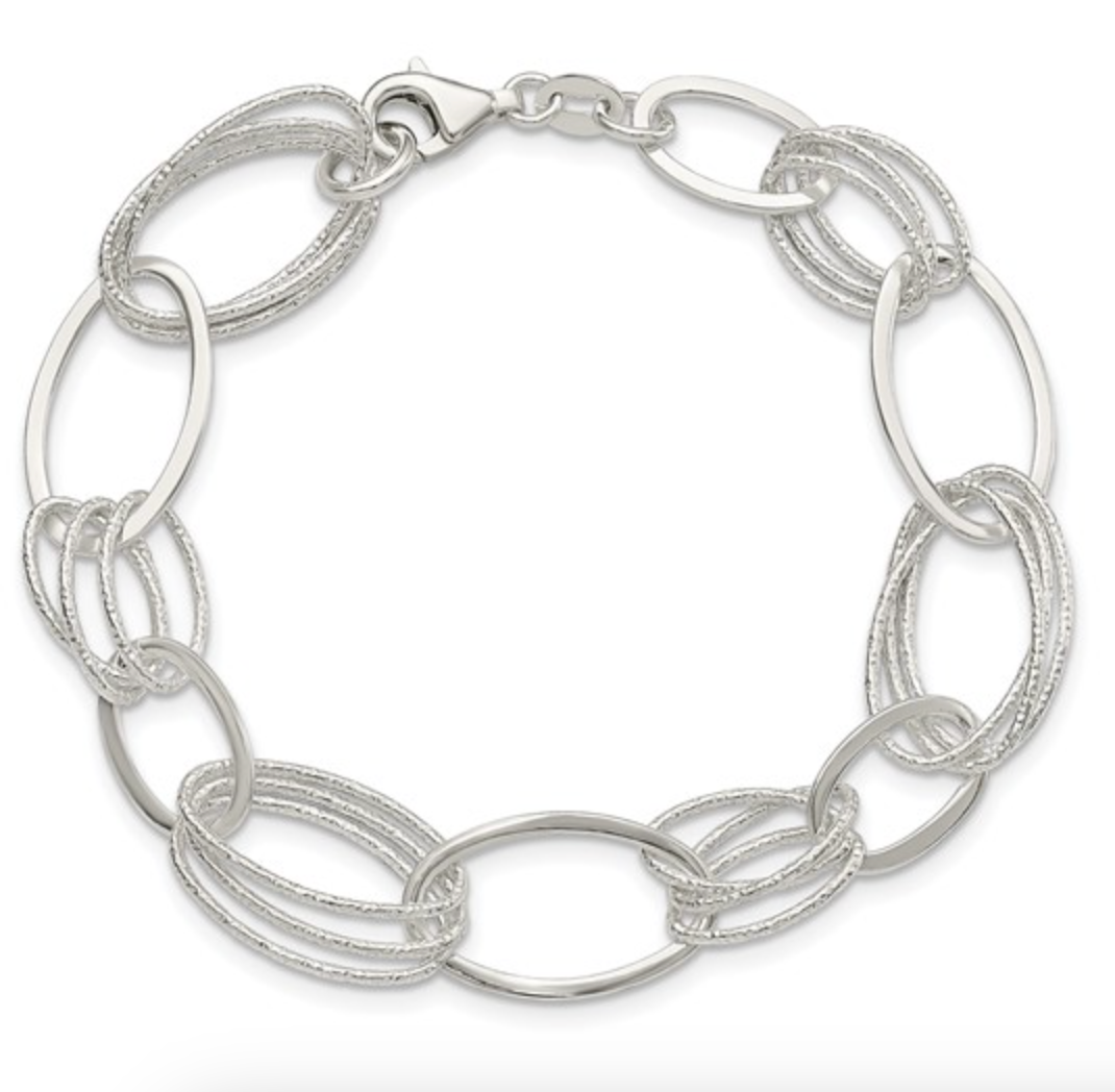 Polished, solid 925 sterling silver textured oval links bracelet. Alternating sized links + textures add so much interest to this piece. Wear alone or stack with other link bracelets!