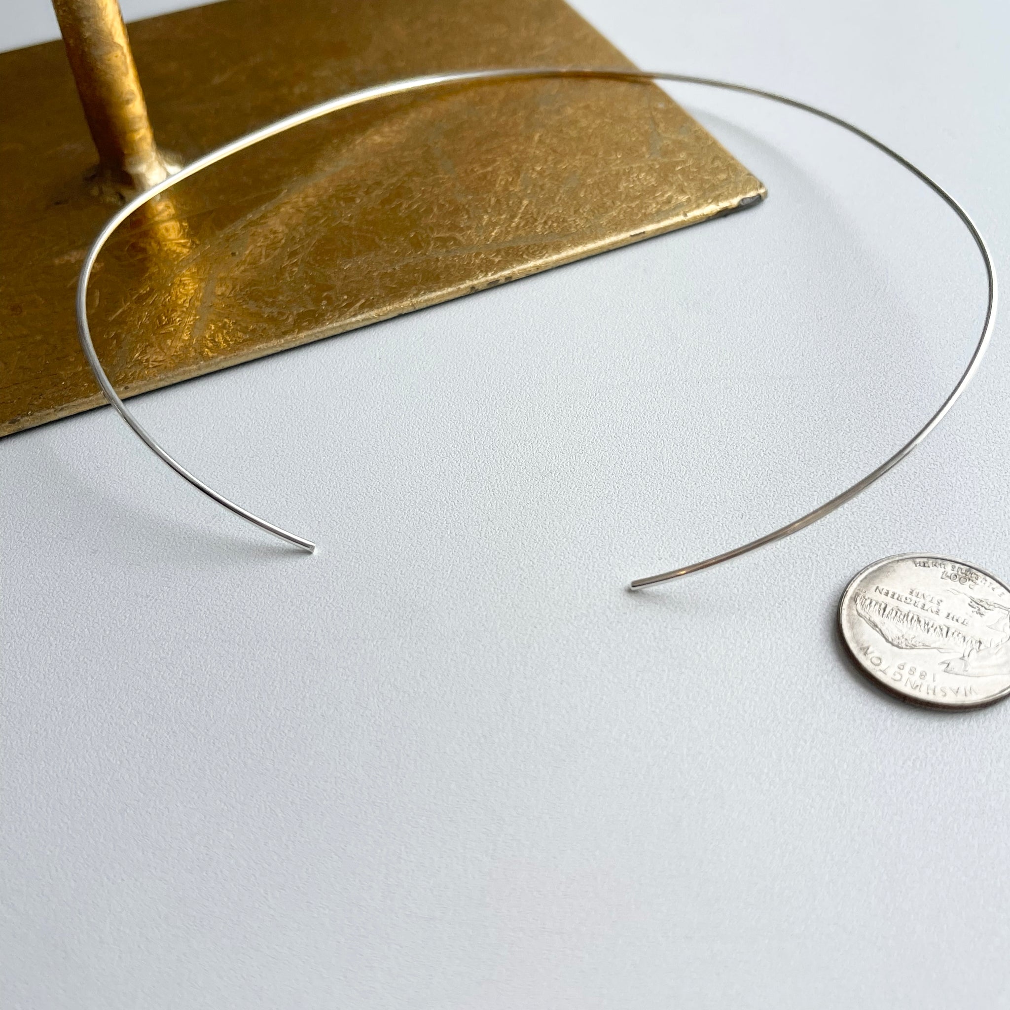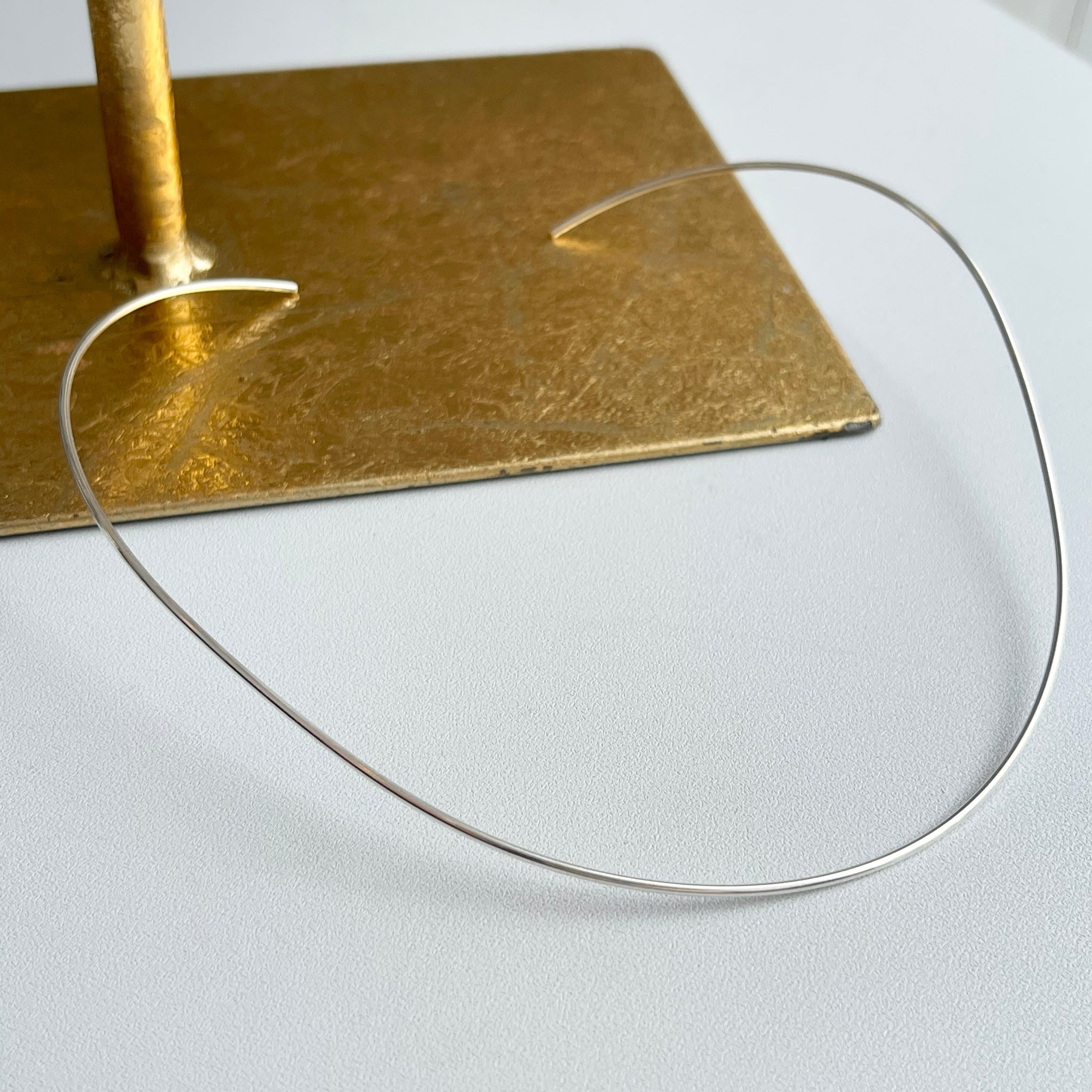 Sterling silver hard/ somewhat flexible, thin, oval, open collar necklace.