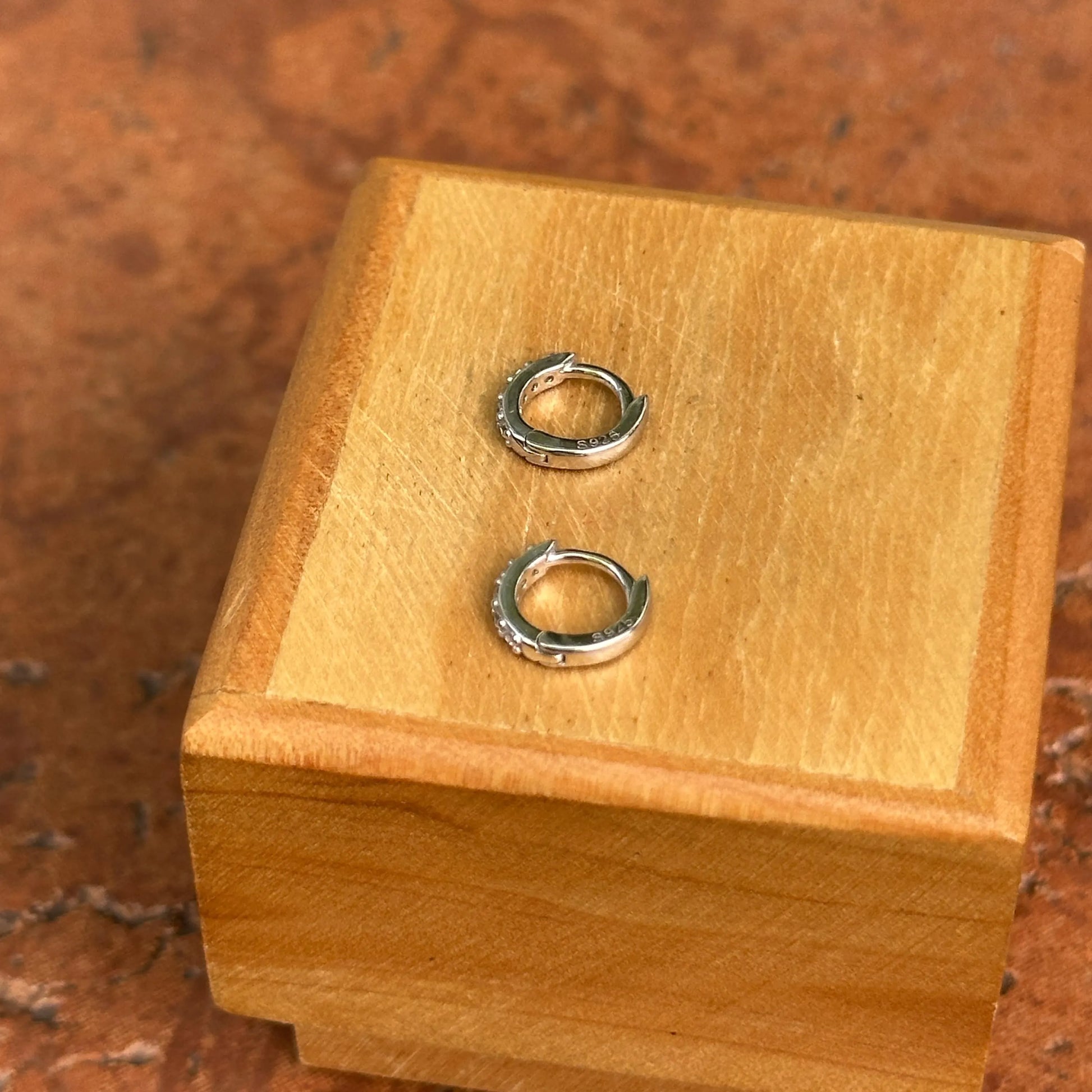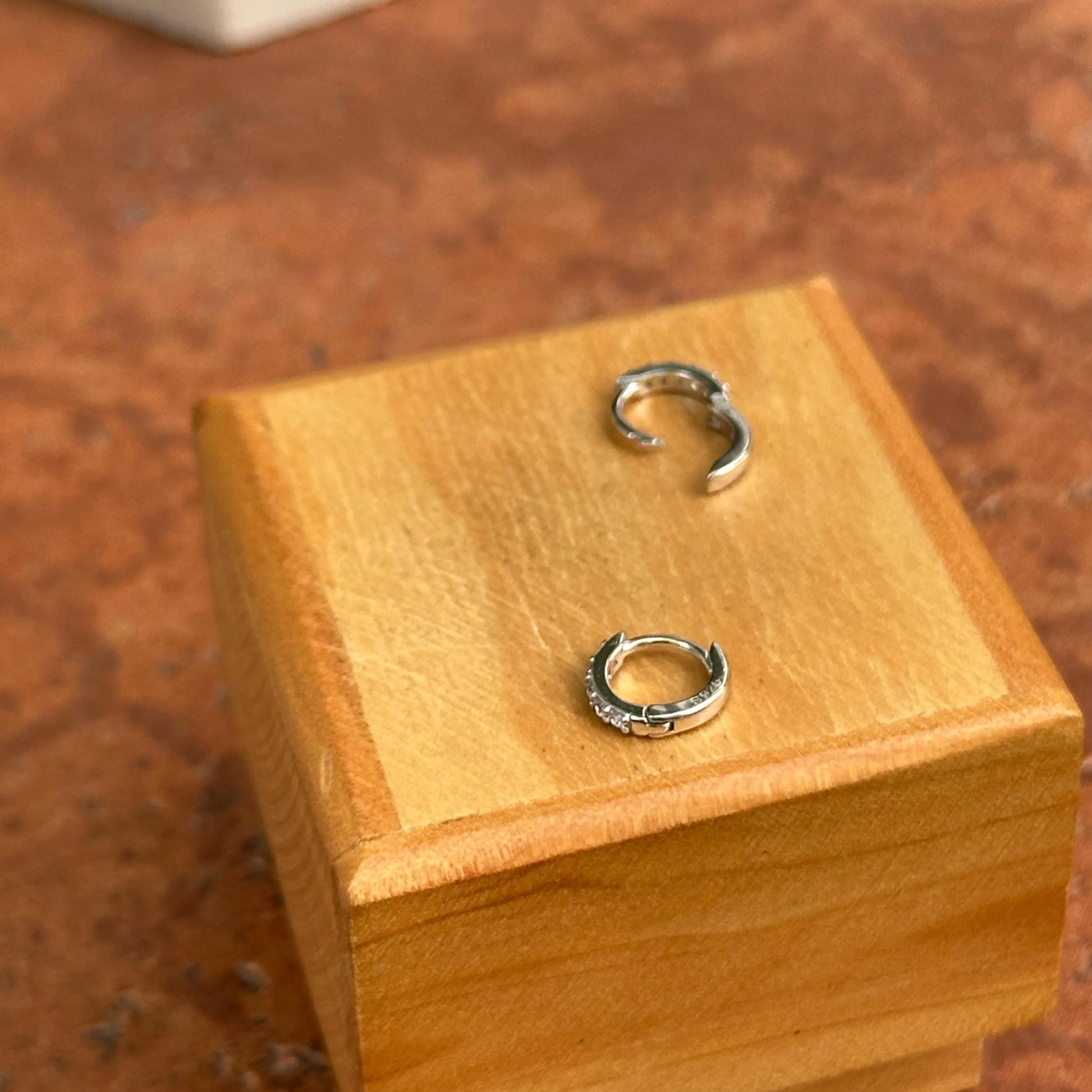 Sterling Silver Tiny Round Cubic Zirconia Huggie Hoop Earrings