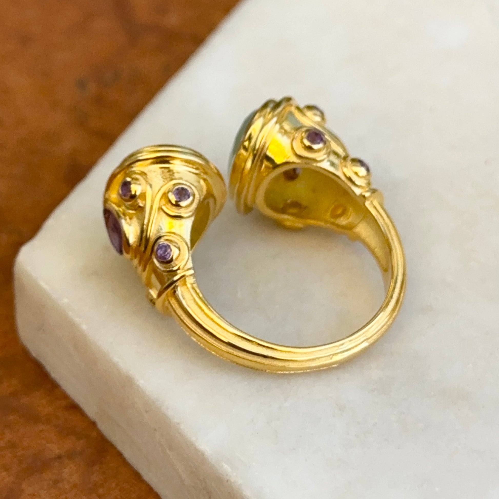 Sterling Silver Yellow Gold-Plated Oval Chalcedony+ Amethyst Open Ring