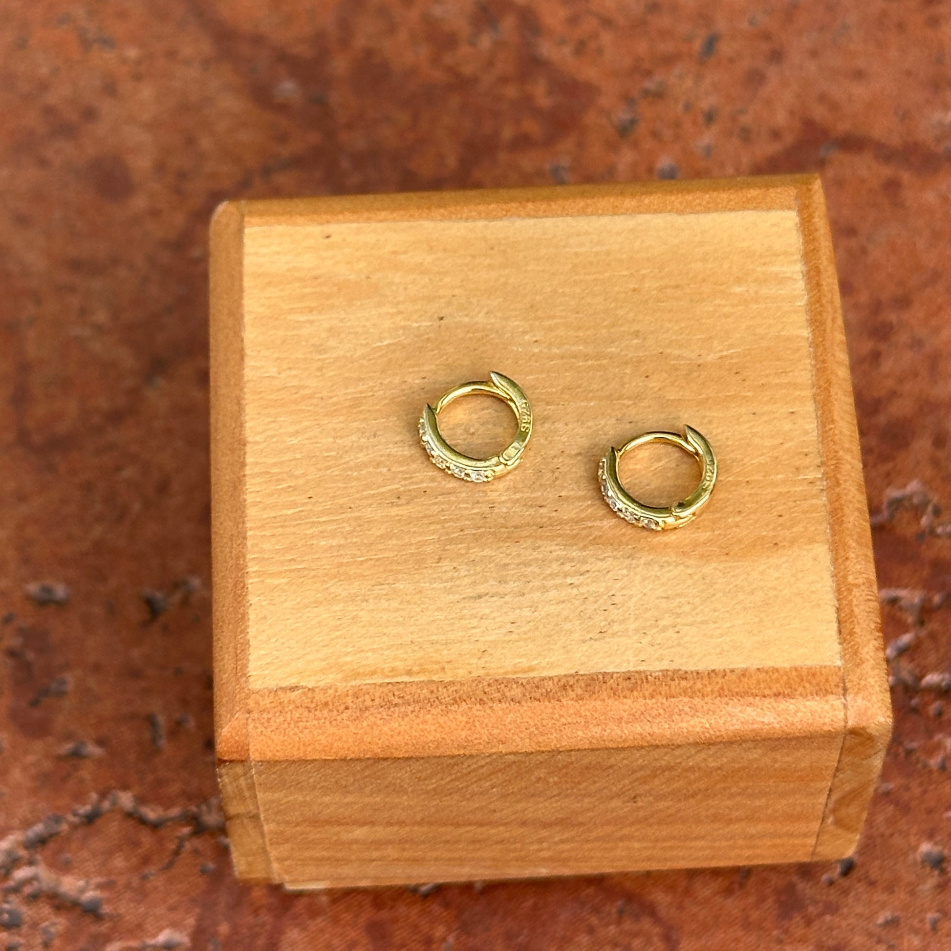 Sterling Silver Yellow Gold-Plated Tiny Round Cubic Zirconia Huggie Hoop Earrings